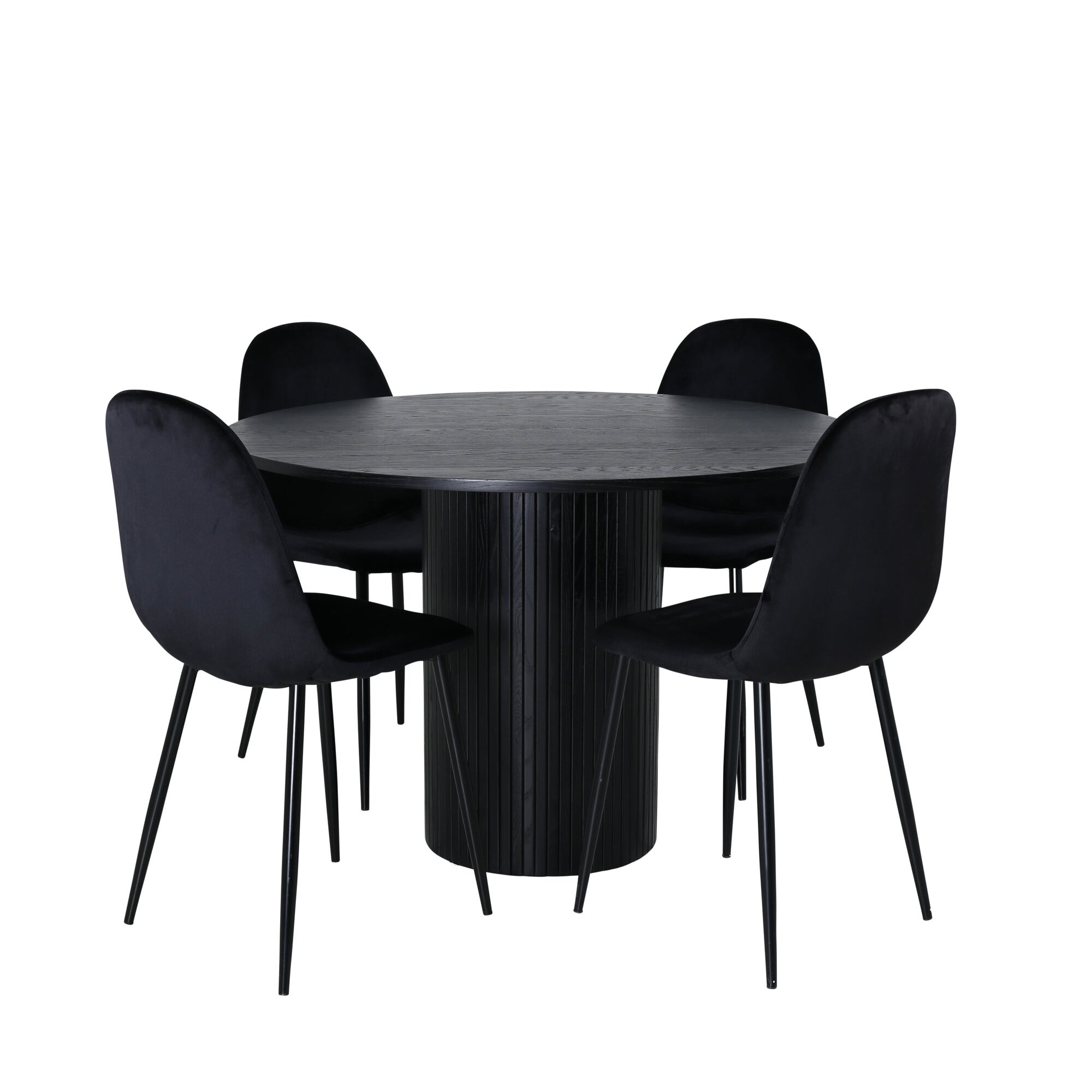 Bianca kulatý jídelní stůl, černá černá dýha+polární jídelní židle, černé nohy Black Velvet (ers√§tter 19902,888)_4