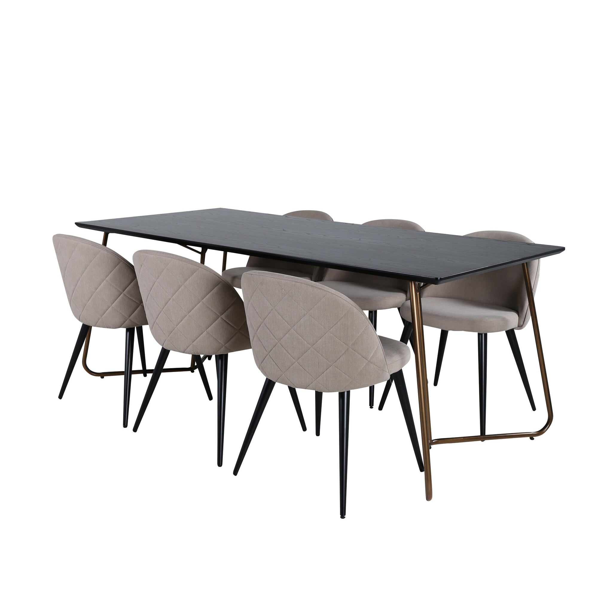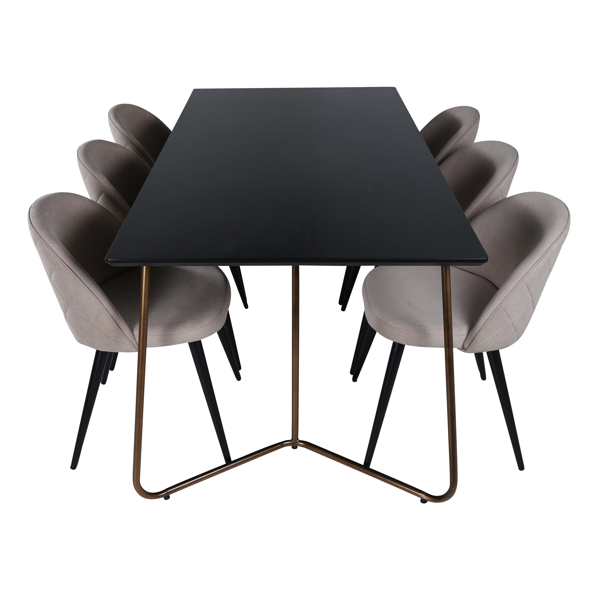 Jídelní stůl Petra , Židle Distressed Copper Černá Dýha+Sametové stehy , Černá béžová látka (Polyesterové prádlo)_6