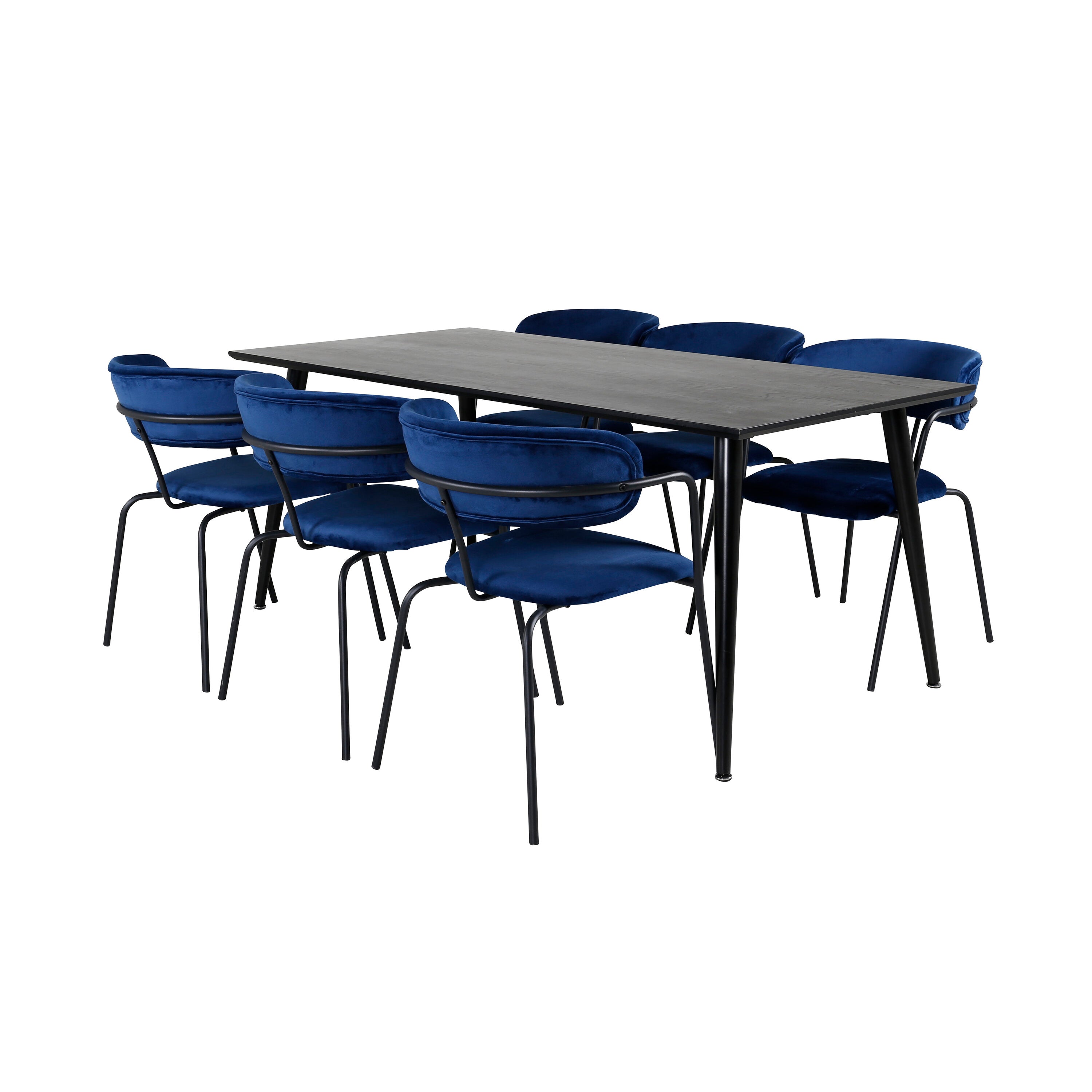 Jídelní stůl Dipp - 180*90cm - Černá dýha / celé černé nohy - Křeslo Arrow - Černé nohy - Blue Velvet 6