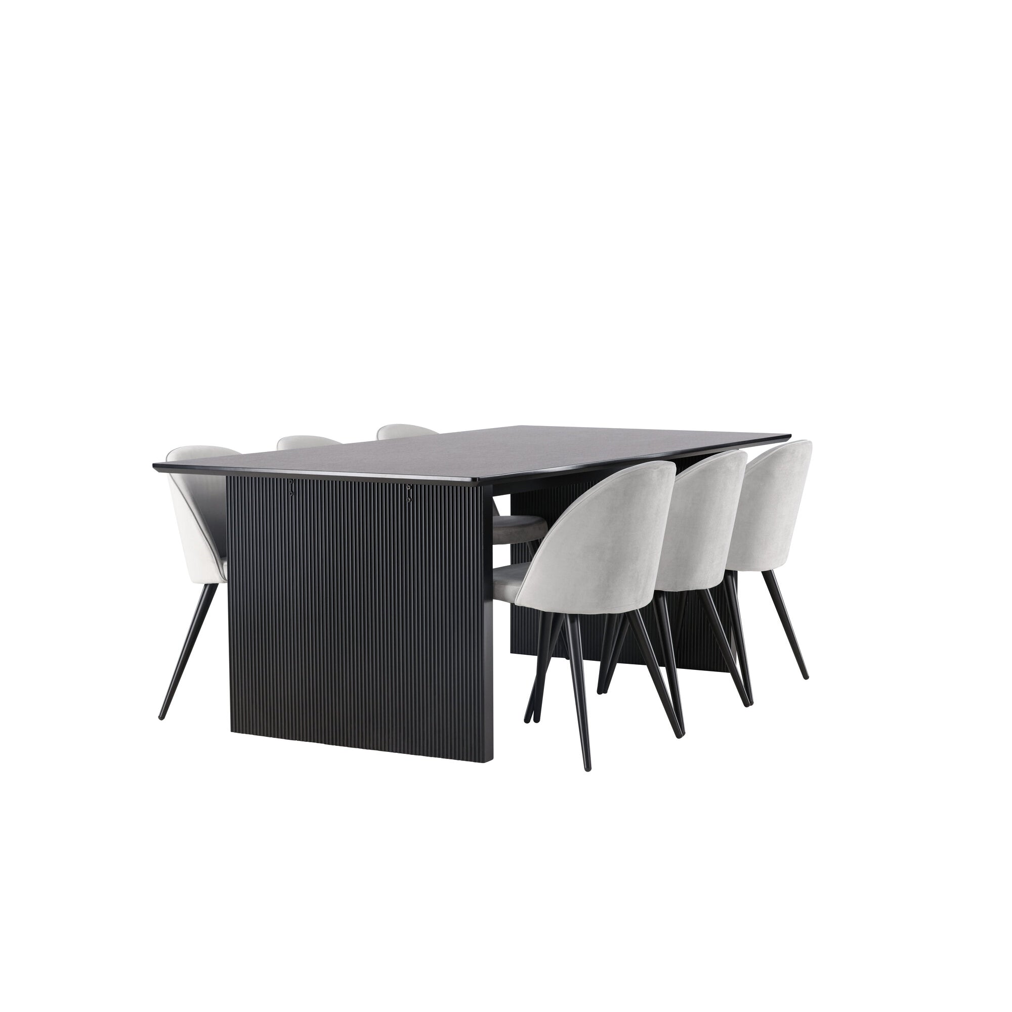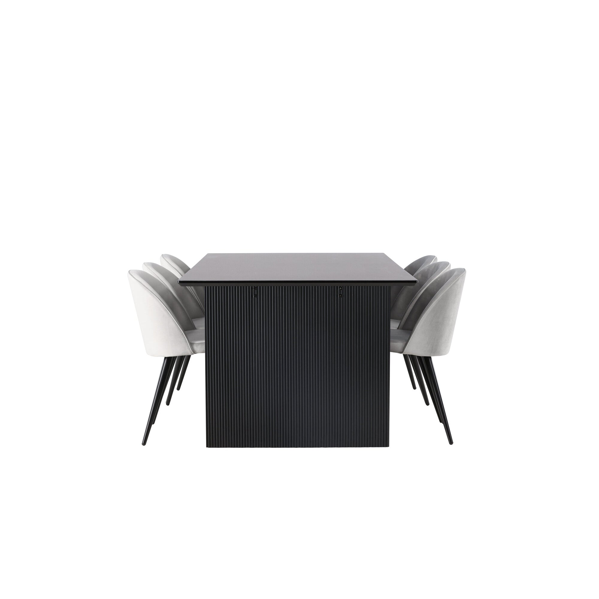 Jídelní stůl Marina - 180*90*H75 - Šedá / Černá+Wrinkles Jídelní židle - Černé nohy - Šedá Velvet_6