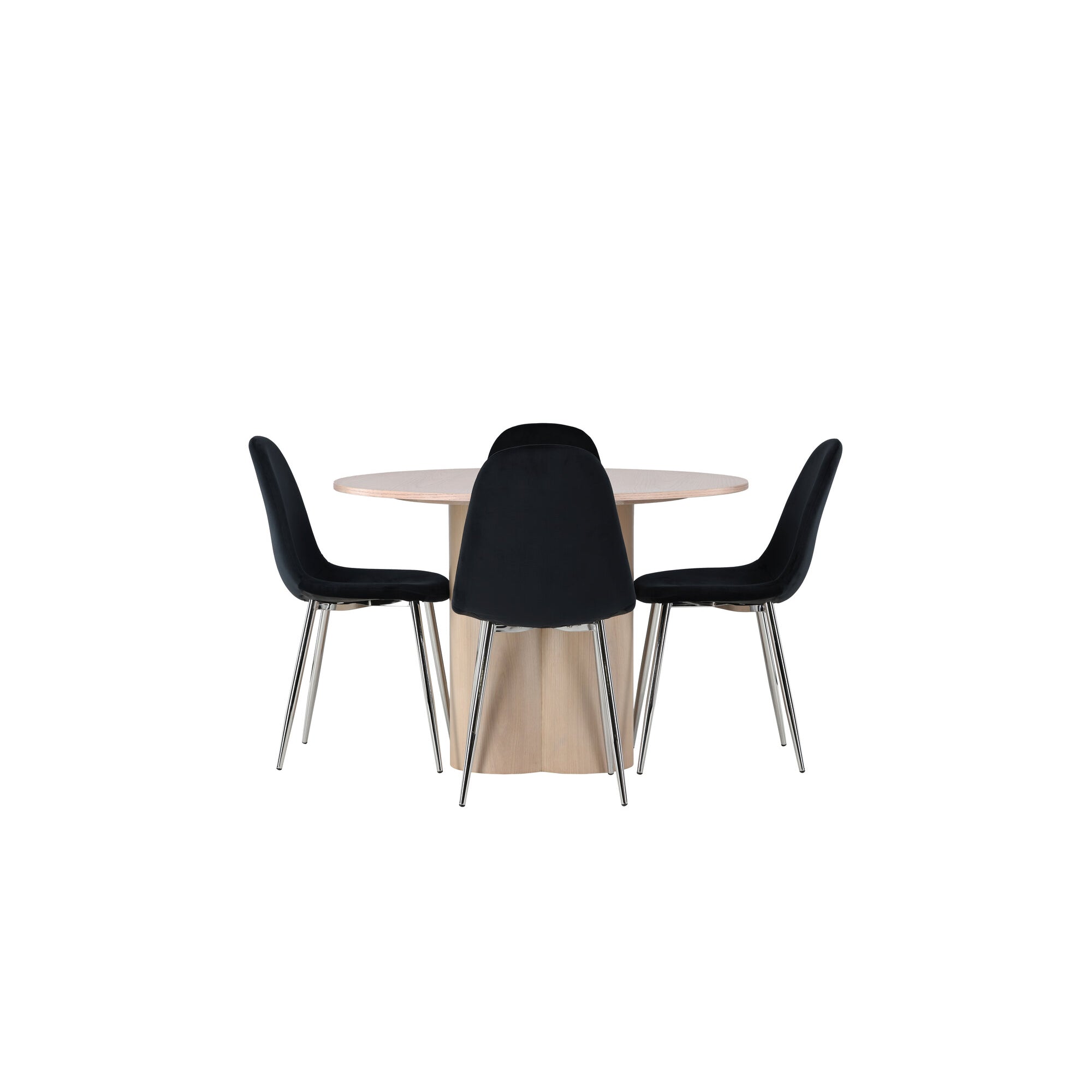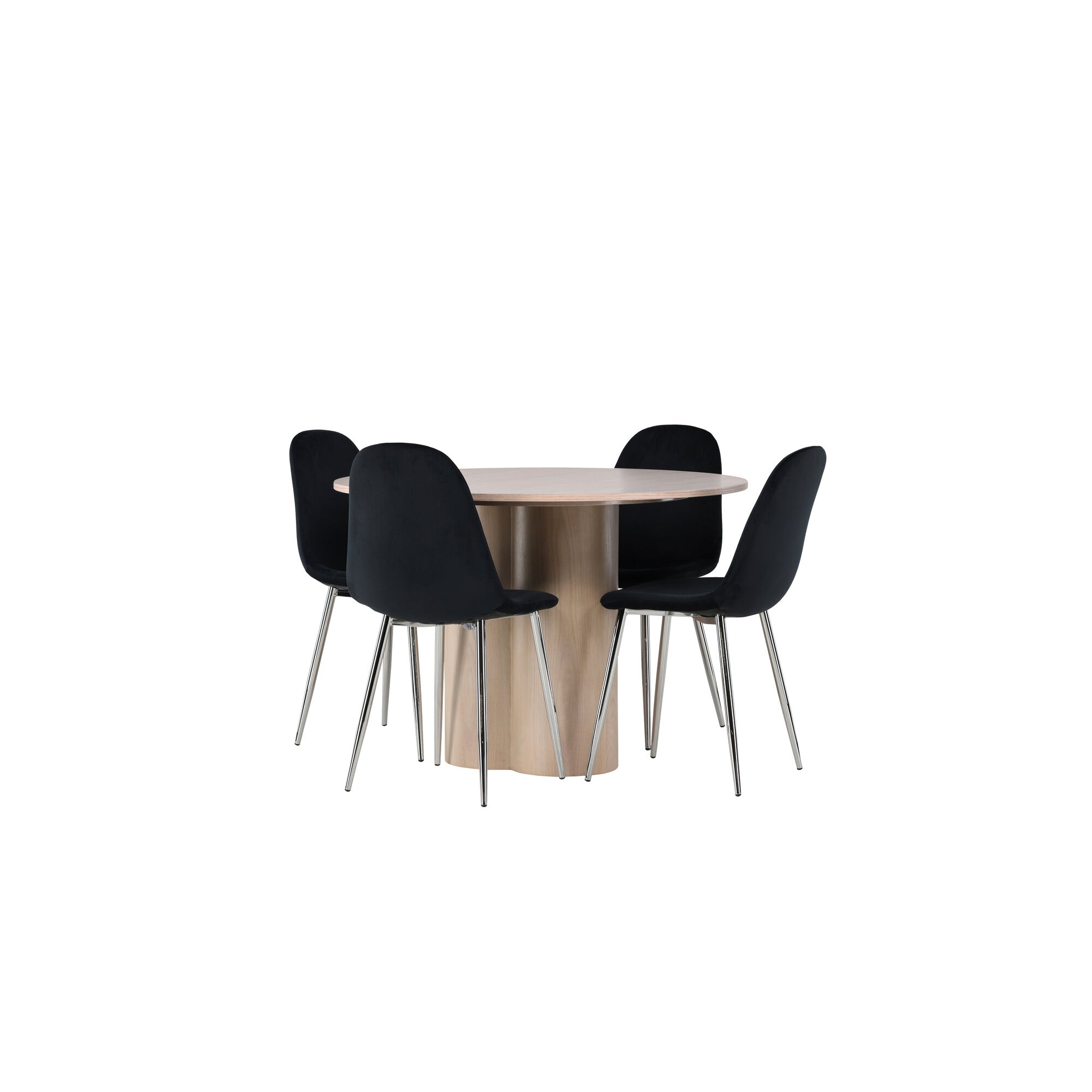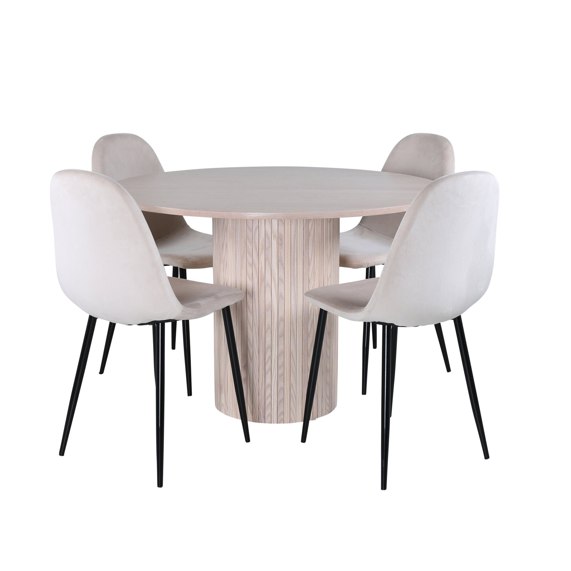 Bianca kulatý jídelní stůl , White Wash Černá dýha+Polar Jídelní židle, černé nohy Béžový Velvet (ers√§tter 19902,880)_4