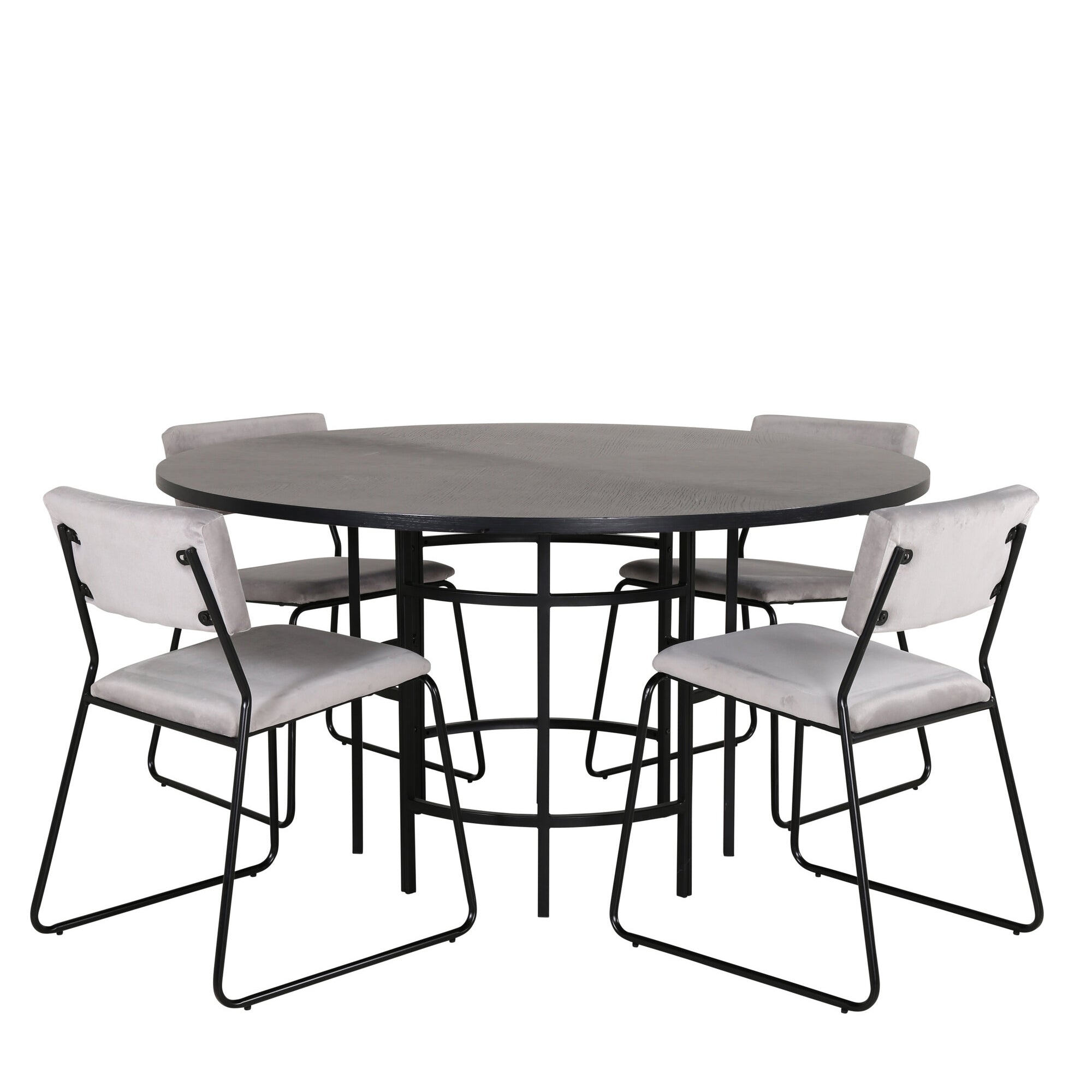 Copenhagen - Jídelní stůl kulatý - Černá / Černá+Kenth Židle - Černá / Světle šedá Velvet_4