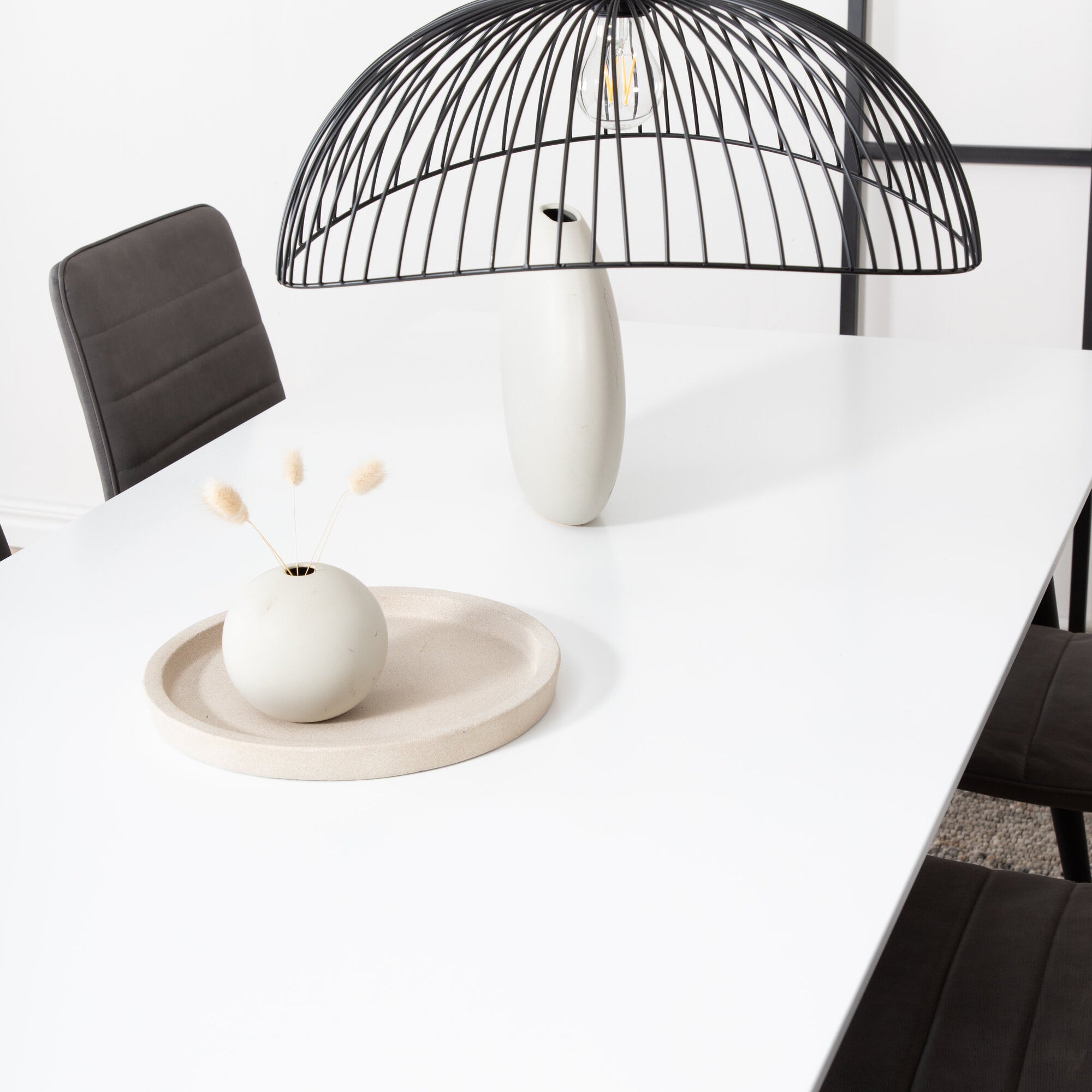 Jídelní stůl Vail – černá / kouřová černá MDF + sametová jídelní židle – světle šedá / černá _6