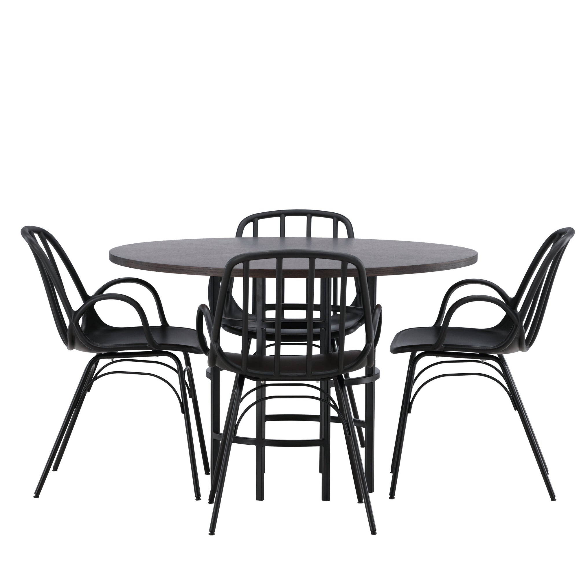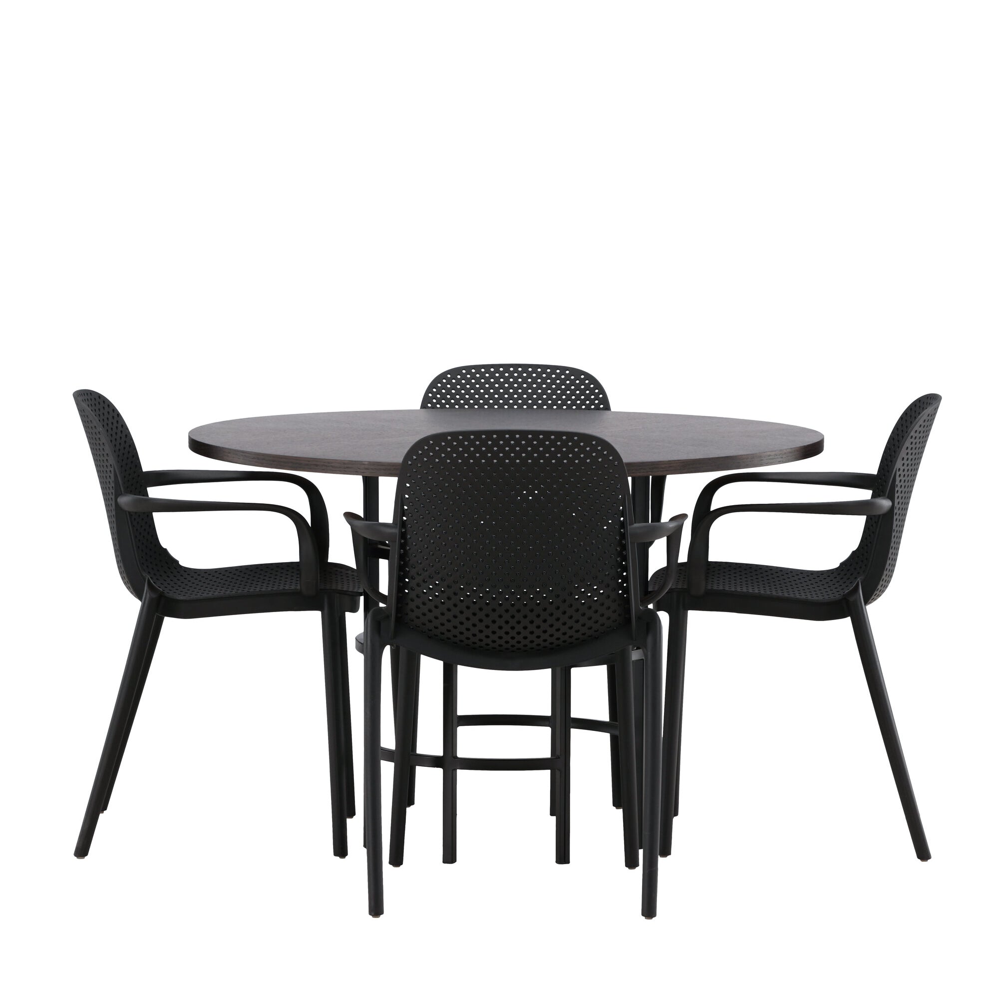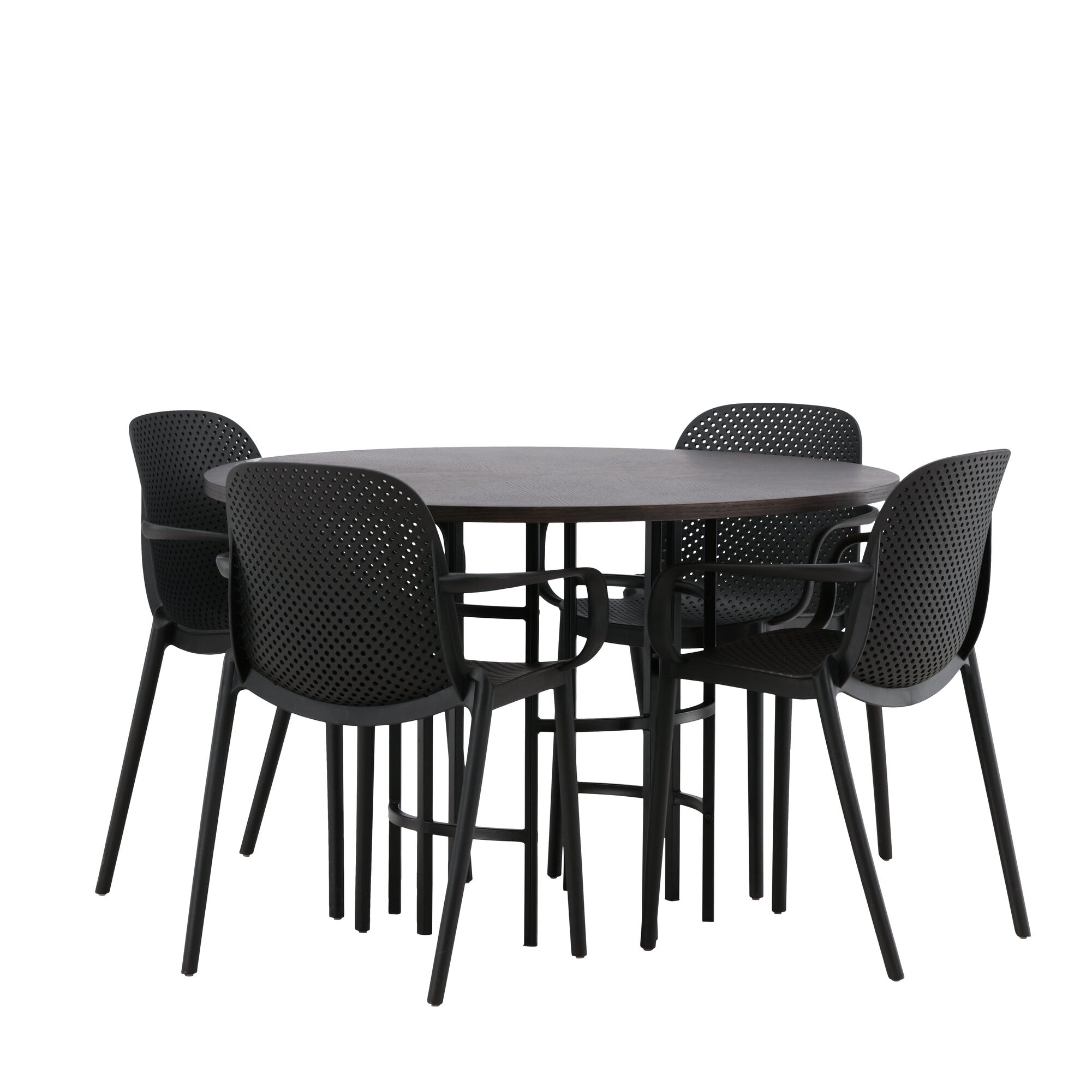 Jídelní stůl Copenhagen – černá / mocca dýha + jídelní židle Dyrön – černý polypropylen _4