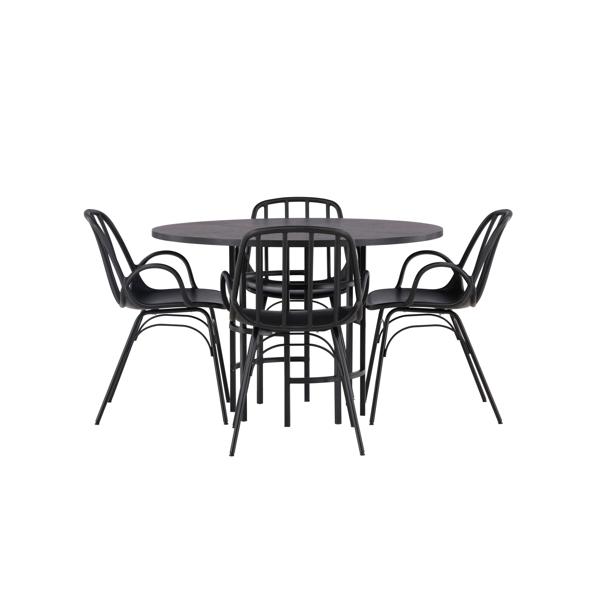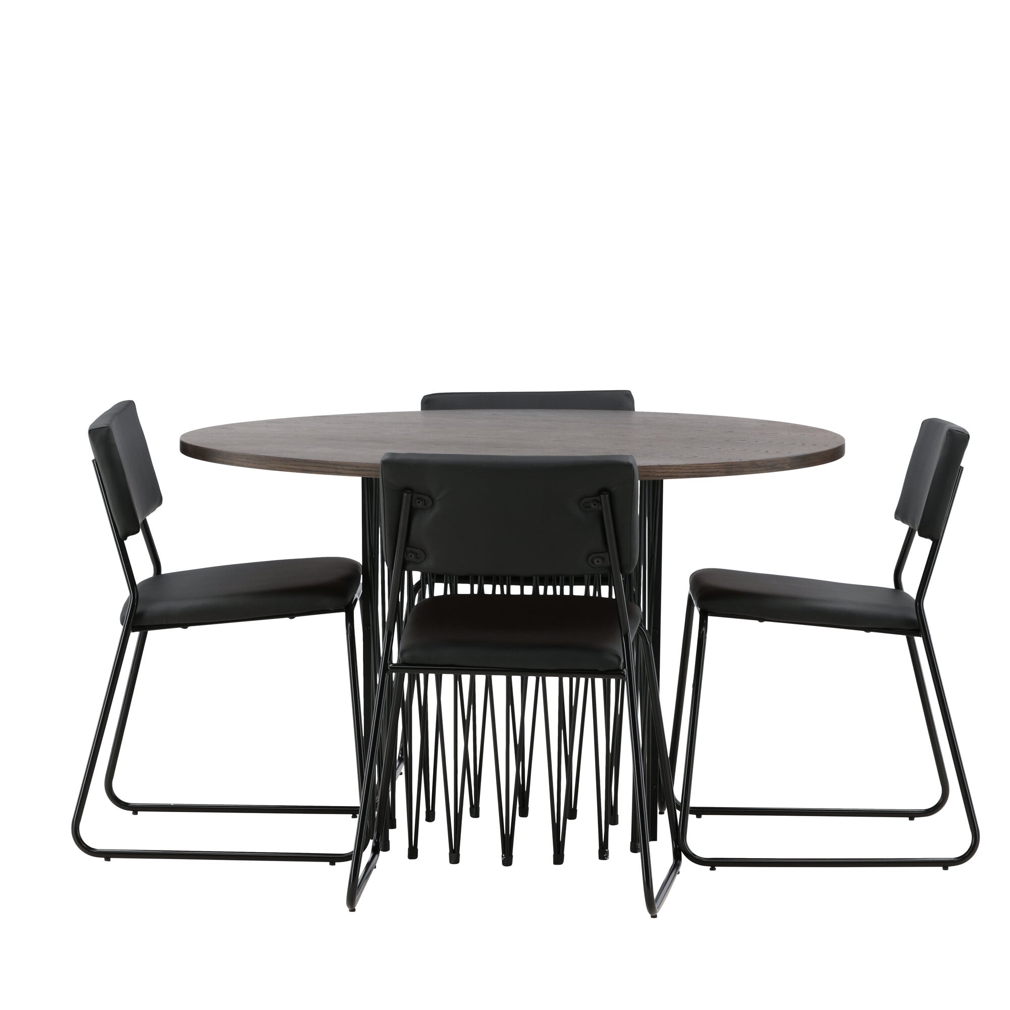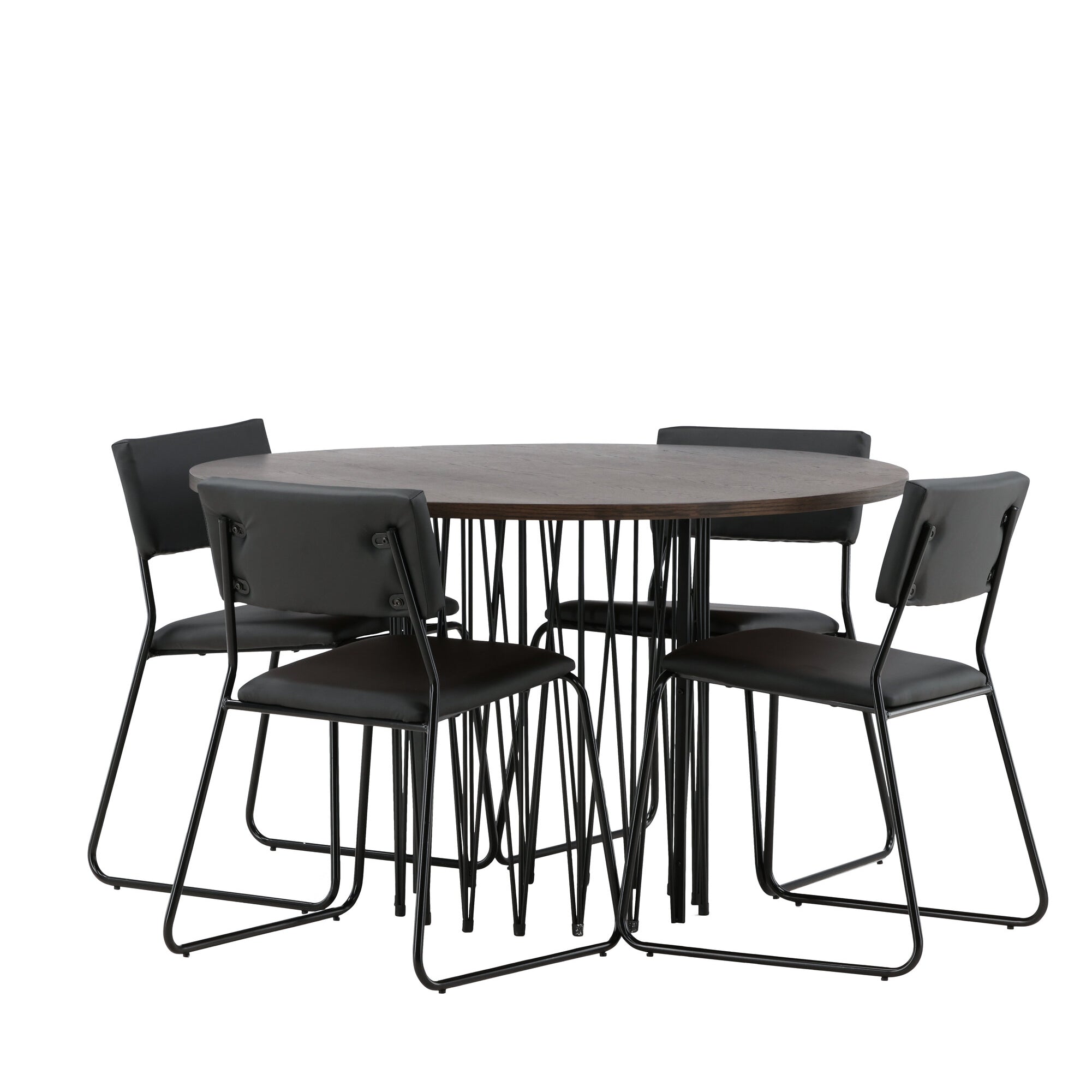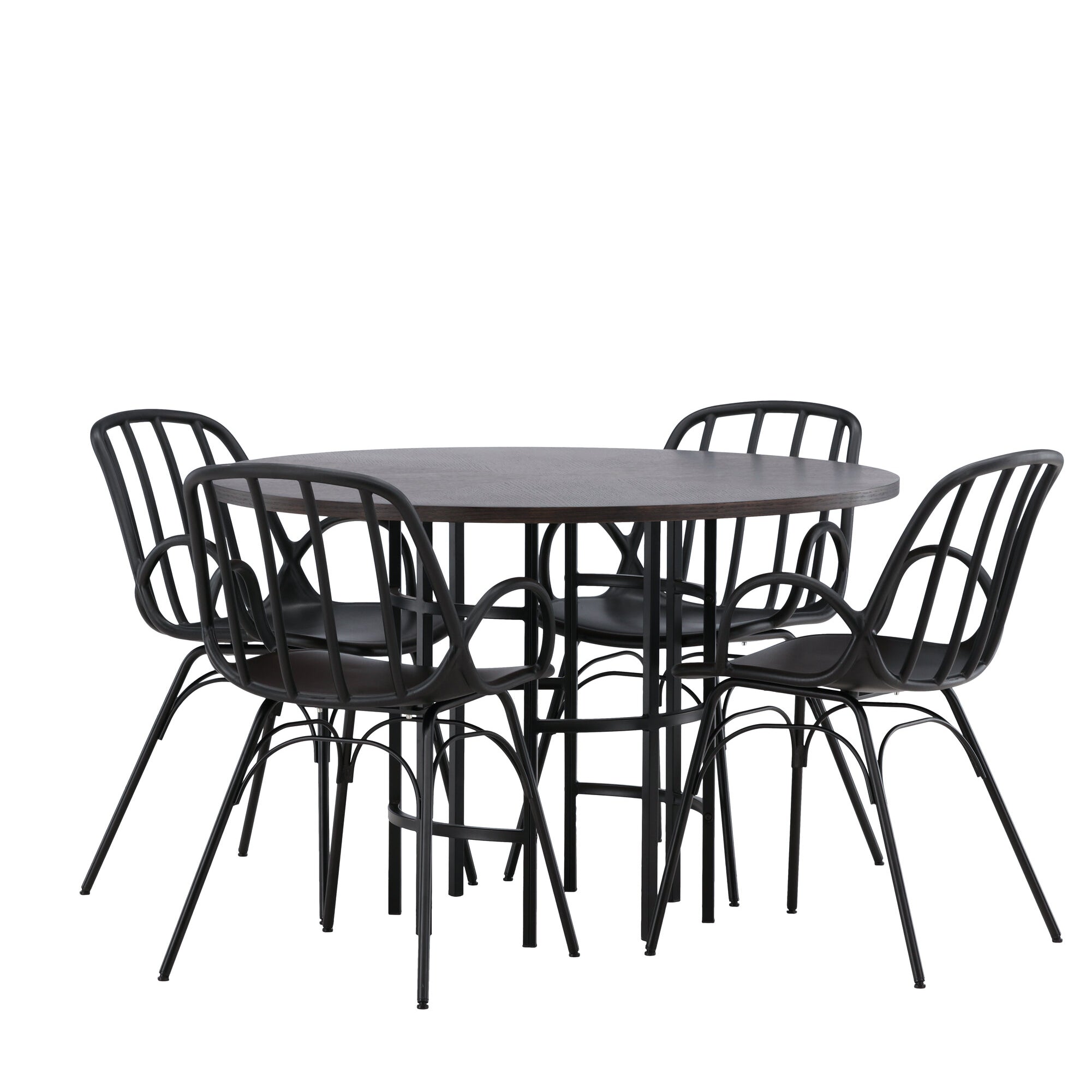 Jídelní stůl Copenhagen – černá / mocca dýha + jídelní židle Dyrön – černý polypropylen _4