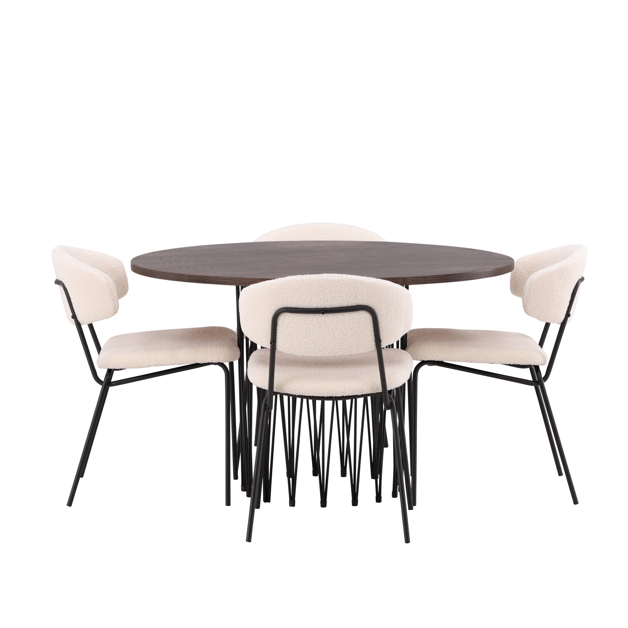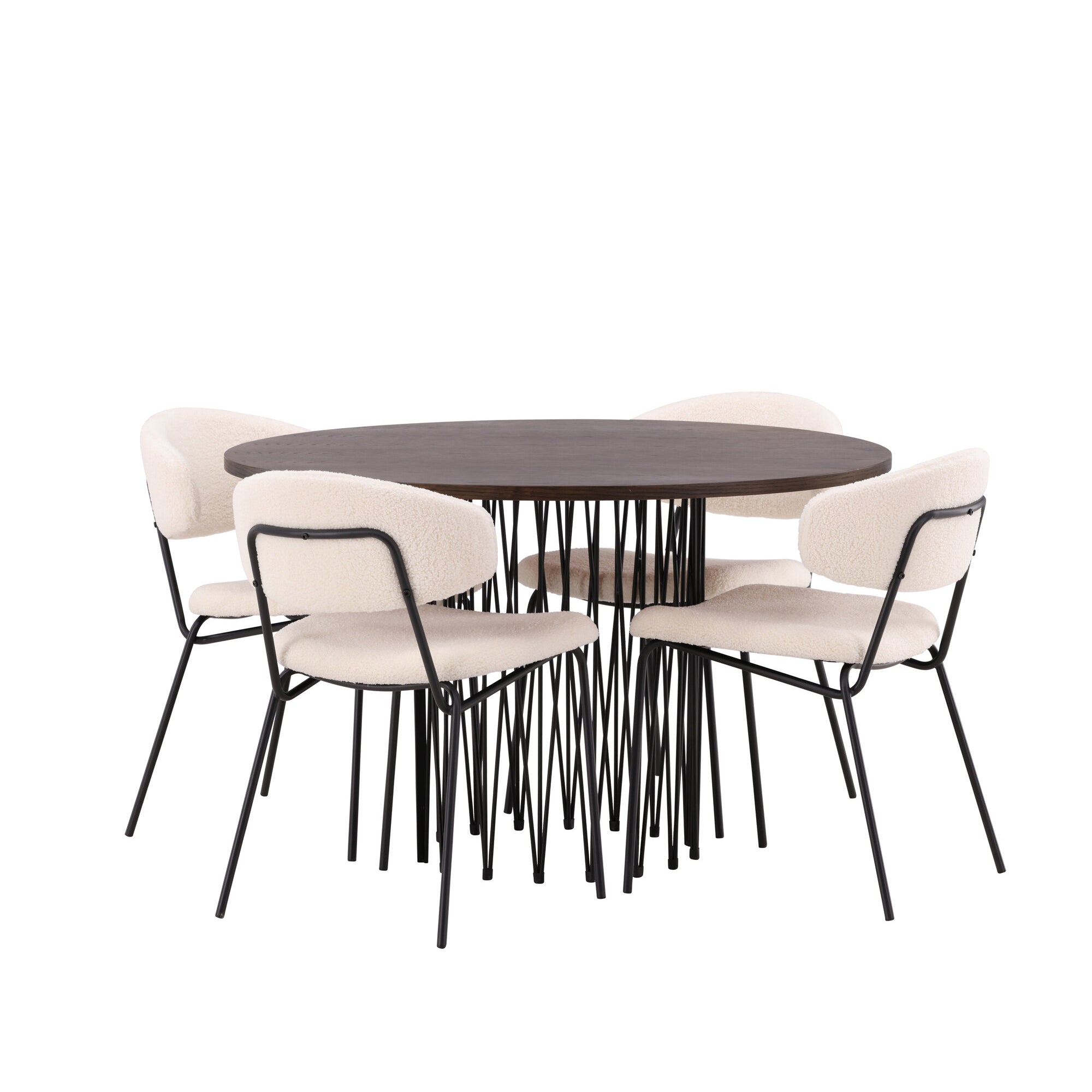 Kamenný kulatý jídelní stůl - černá / mocca dýha + jídelní židle Chico - černá / bílá Boucle _4
