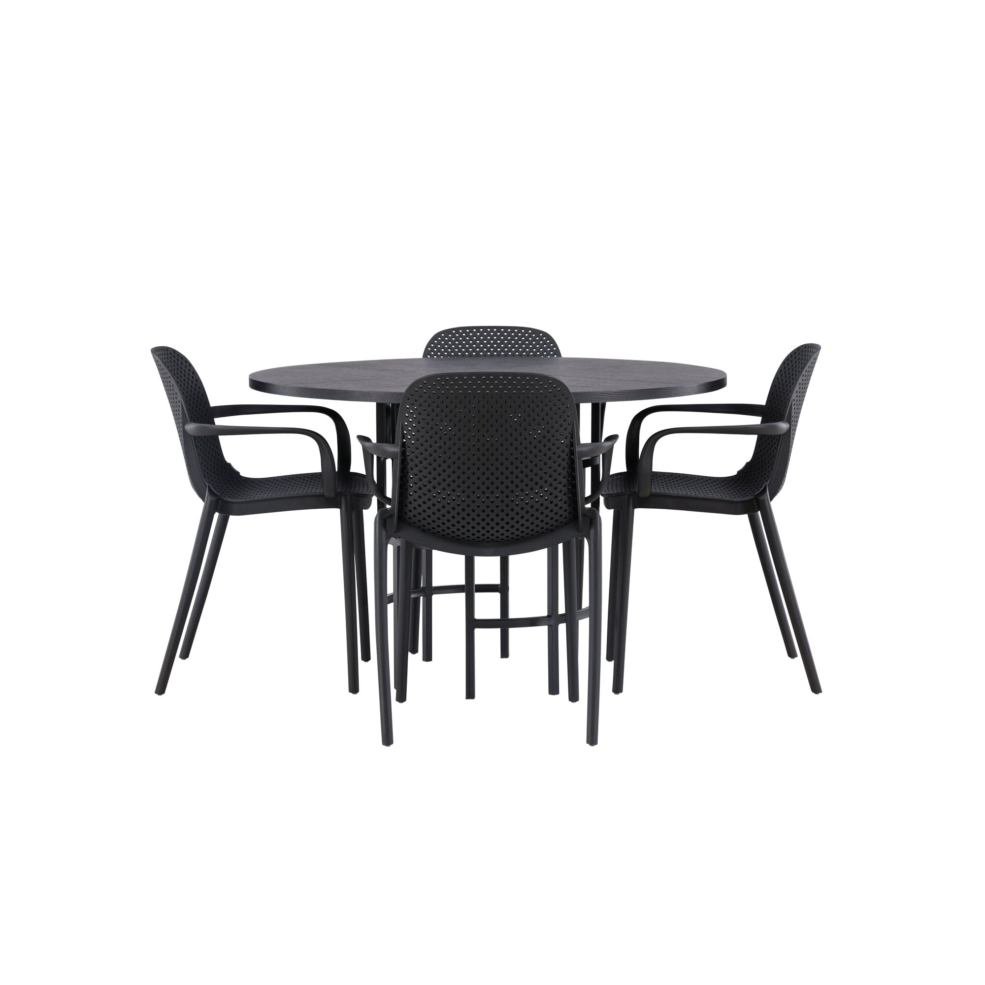 Jídelní stůl Copenhagen – černá / černá dýha + jídelní židle Dyrön – černý polypropylen _4