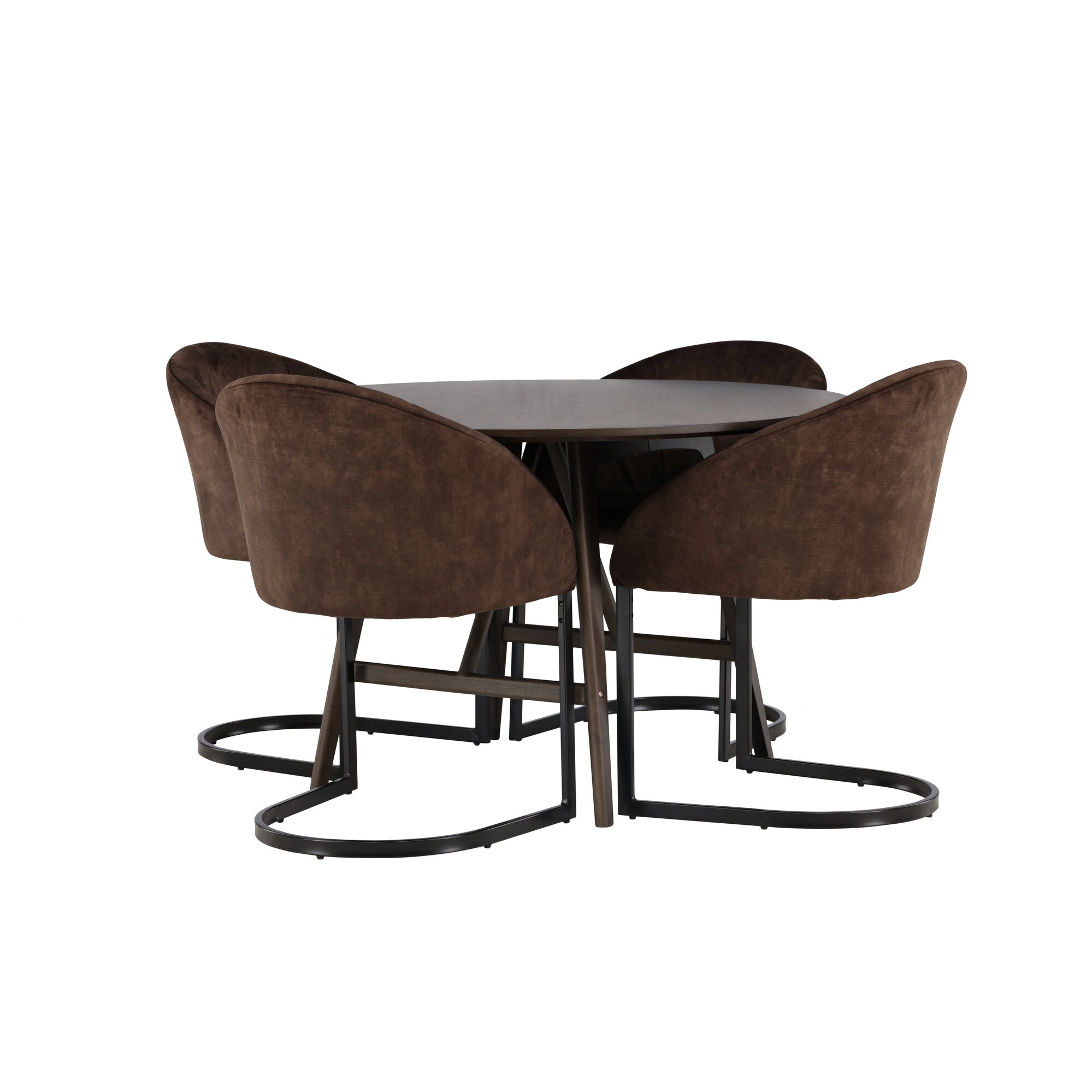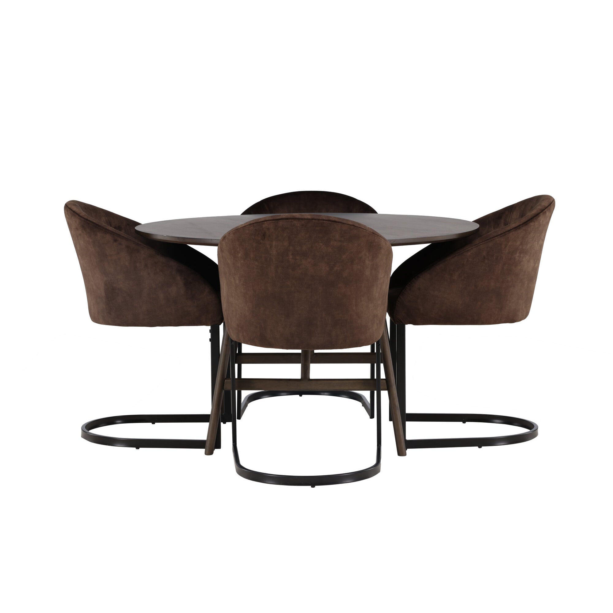 Jídelní stůl Kaseidon - kulatý - kaučukové dřevo / tmavě hnědá MDF + večerní jídelní židle - matná hnědá / hnědá látka _4
