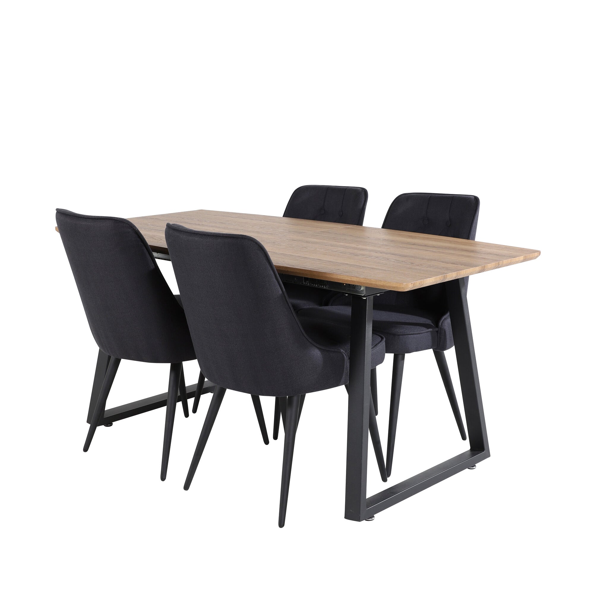 Jídelní stůl Inca - 160/200*85*H75 - Dub / Černá+Velvet Deluxe jídelní židle - Černé nohy - Black Fabric_4