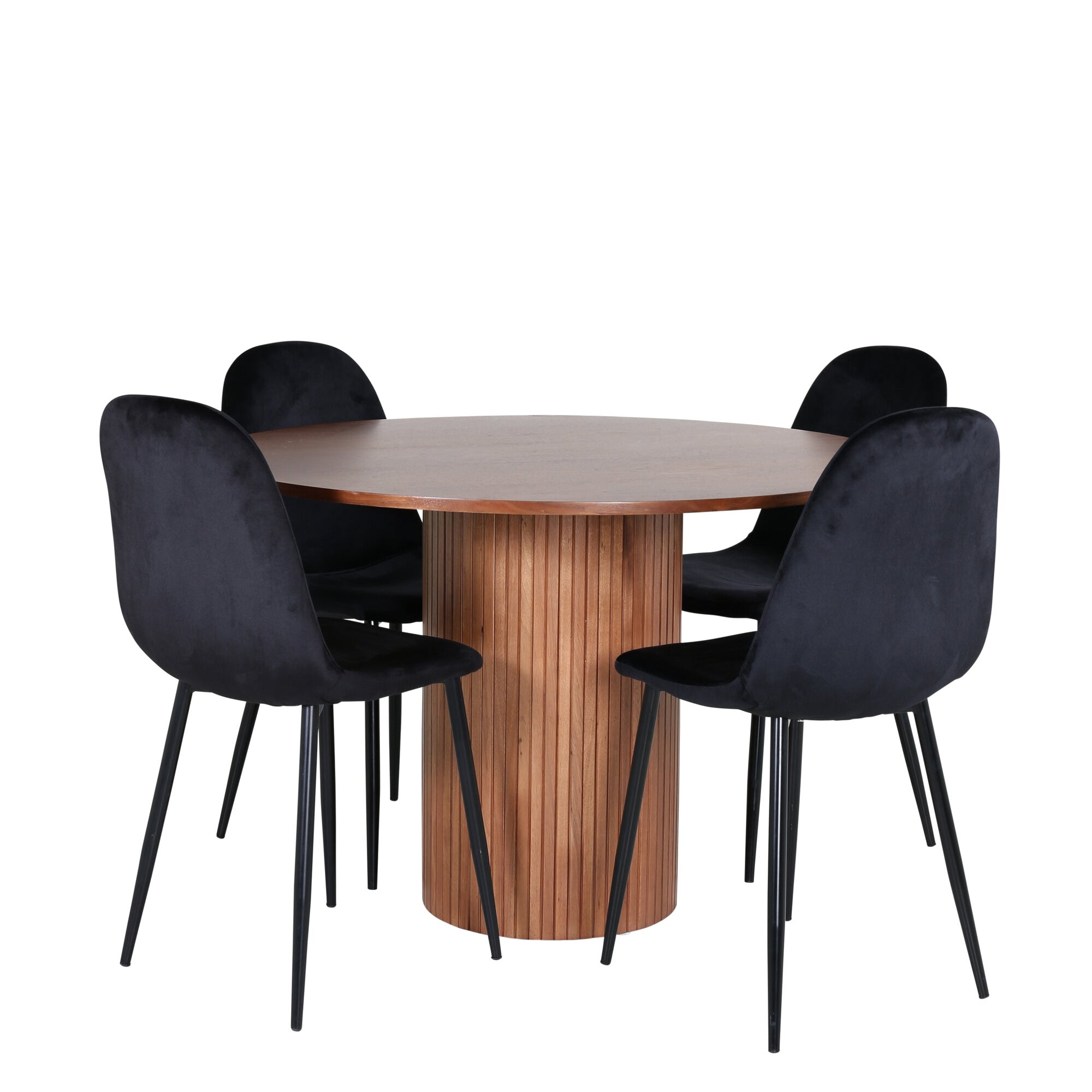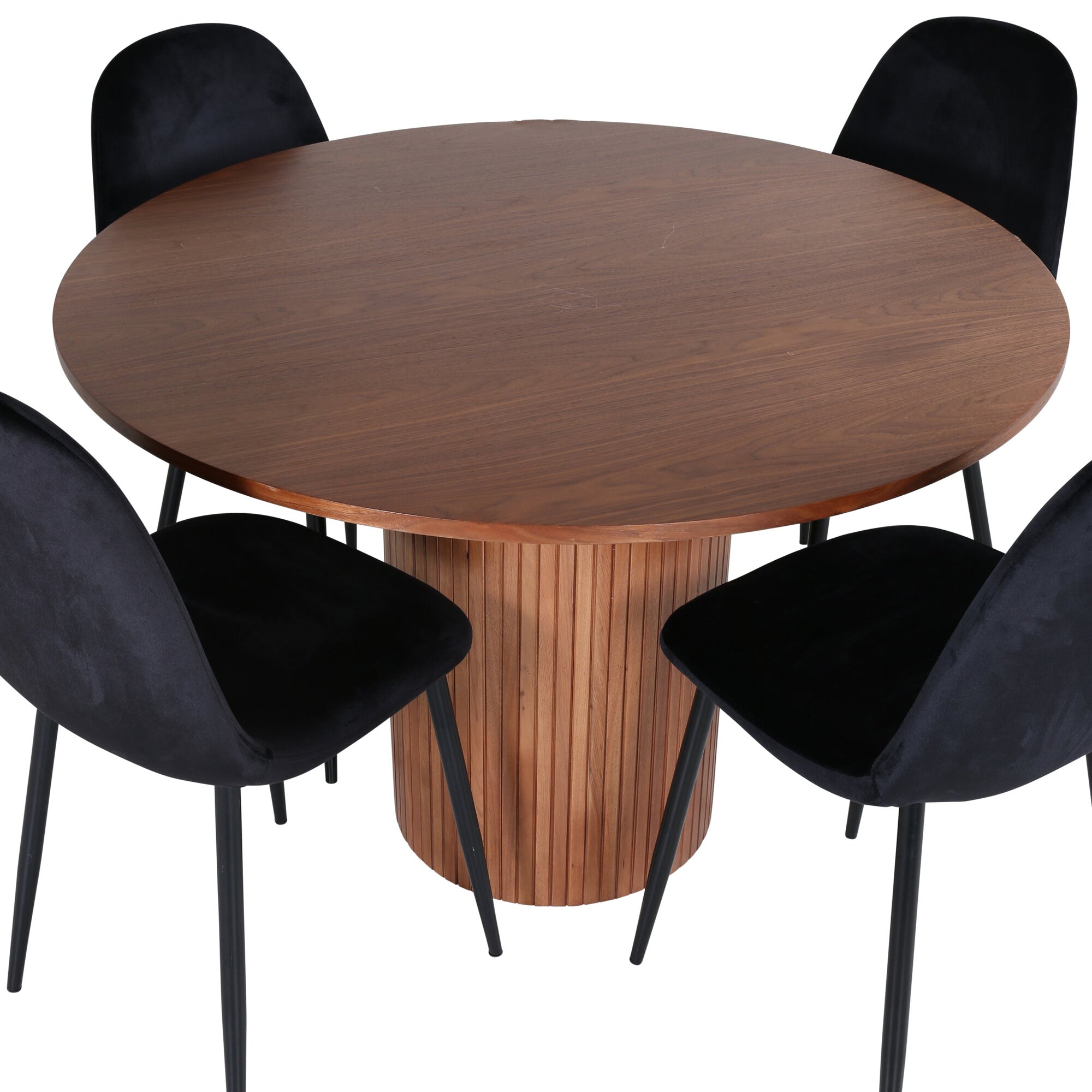 Bianca kulatý jídelní stůl - ořech / černá dýha + jídelní židle Polar - černé nohy / černý samet (ersätter 19902-888)_4
