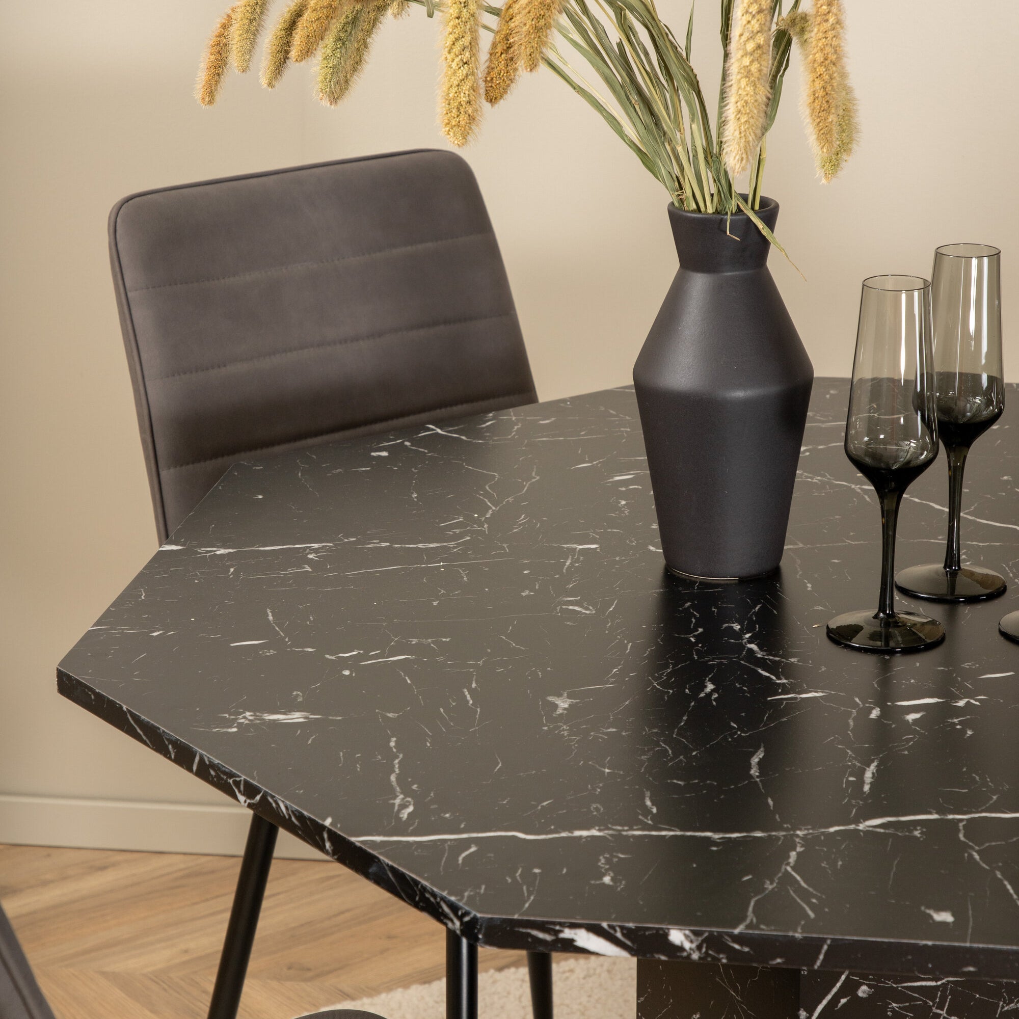Estelle runt Matbord - Svart / Vit marmor - ø106*H75+Velvet matstol - Manchester