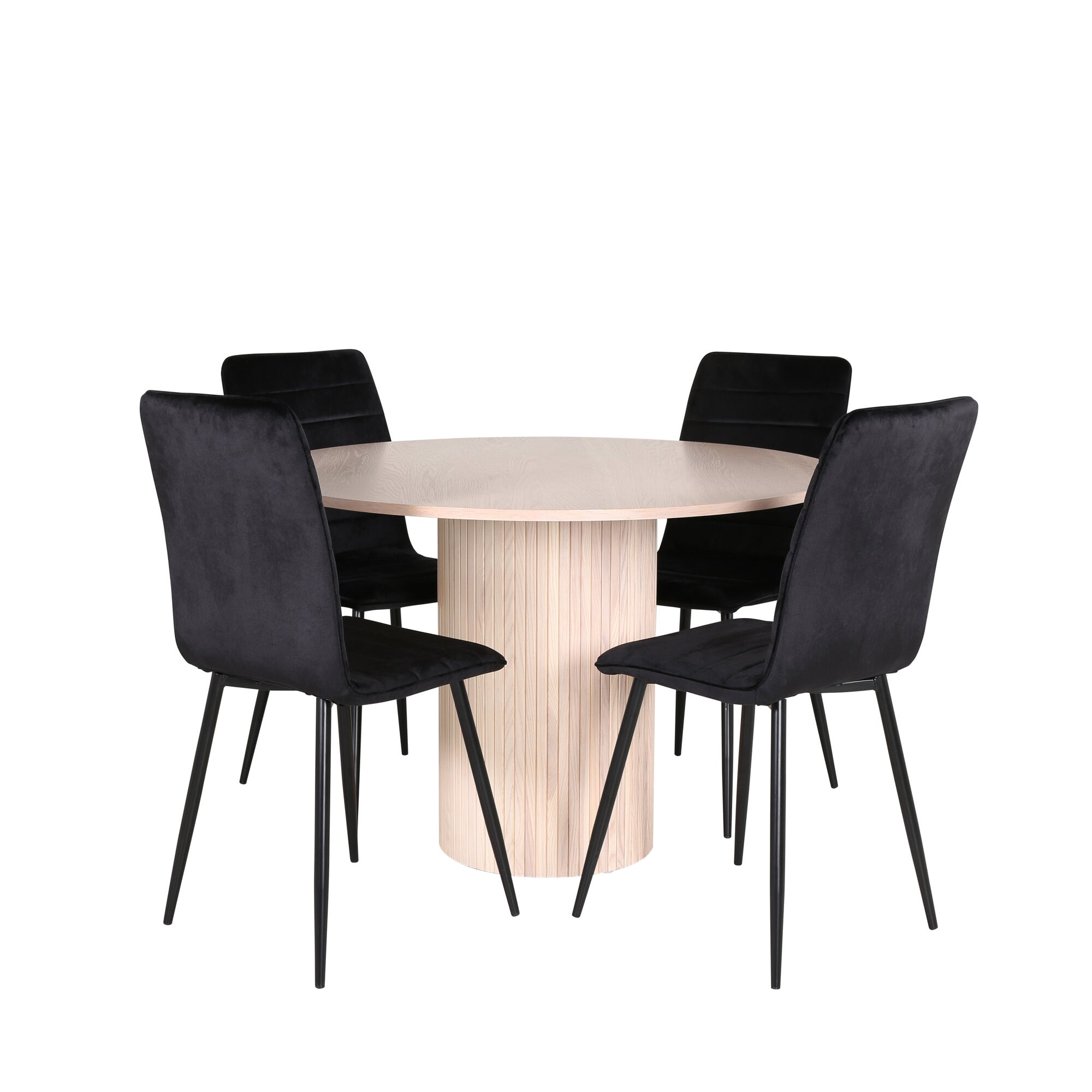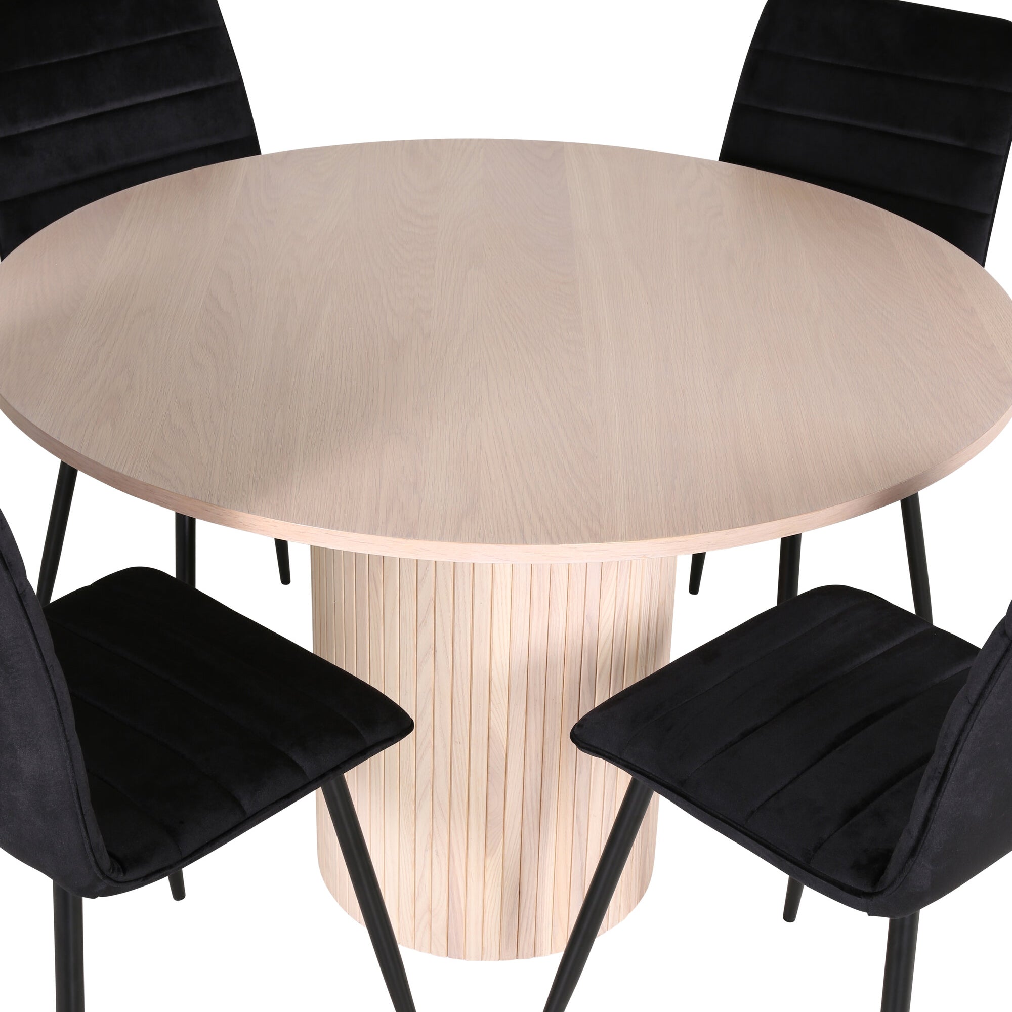 Kulatý jídelní stůl Bianca - White Wash / Černá dýha + židle Windu Lyx - Black / Black Velvet_4