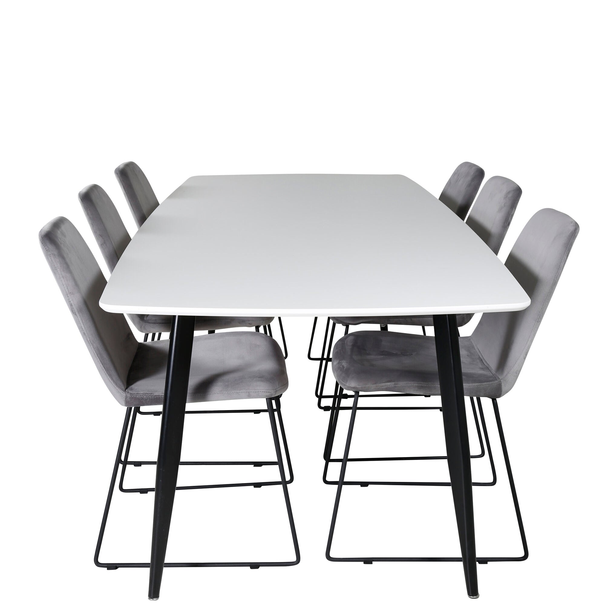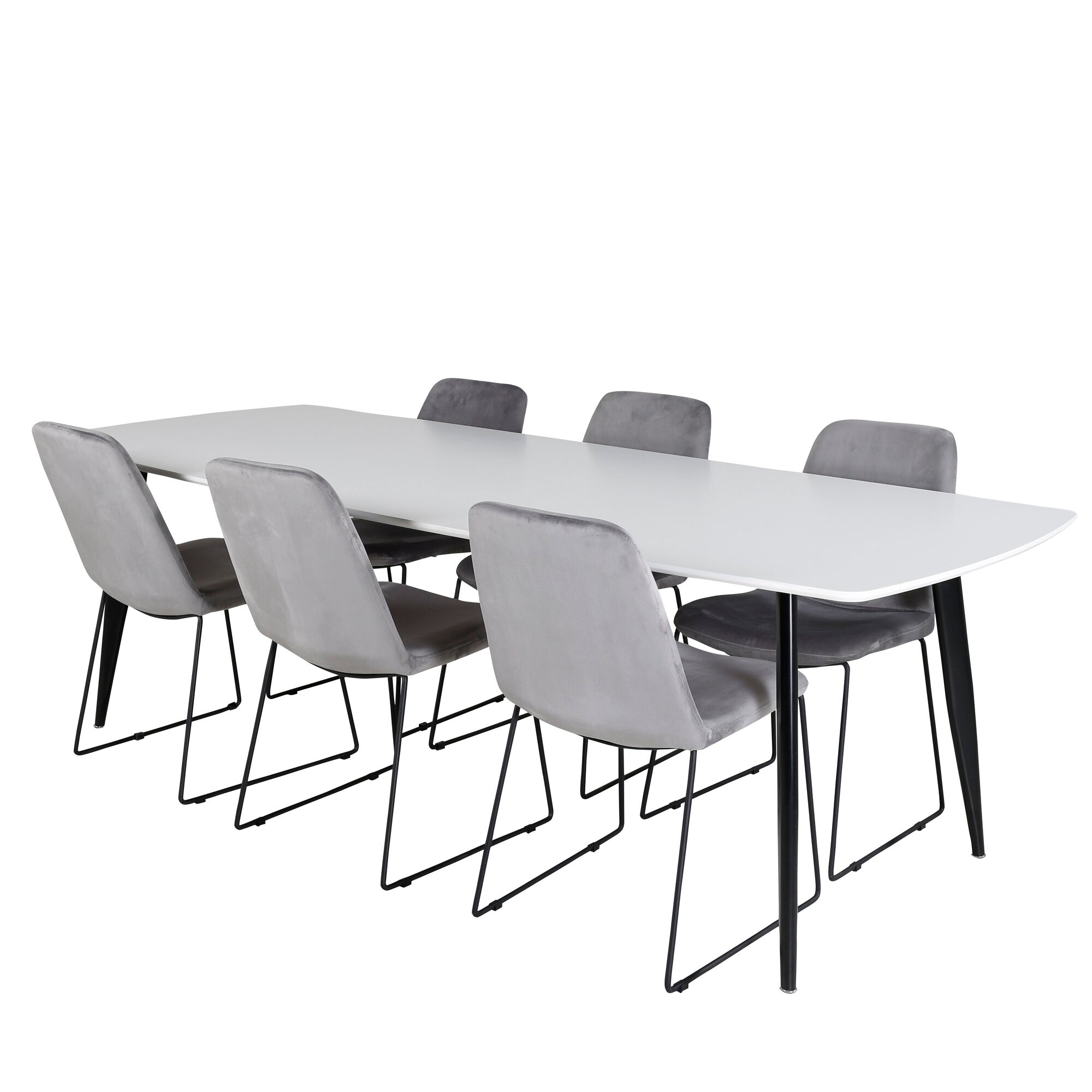 Polar Elips Matbord - Svart / Vit - 240*100*H75 +Muce Jídelní židle - Černé nohy - Grey Velvet _6