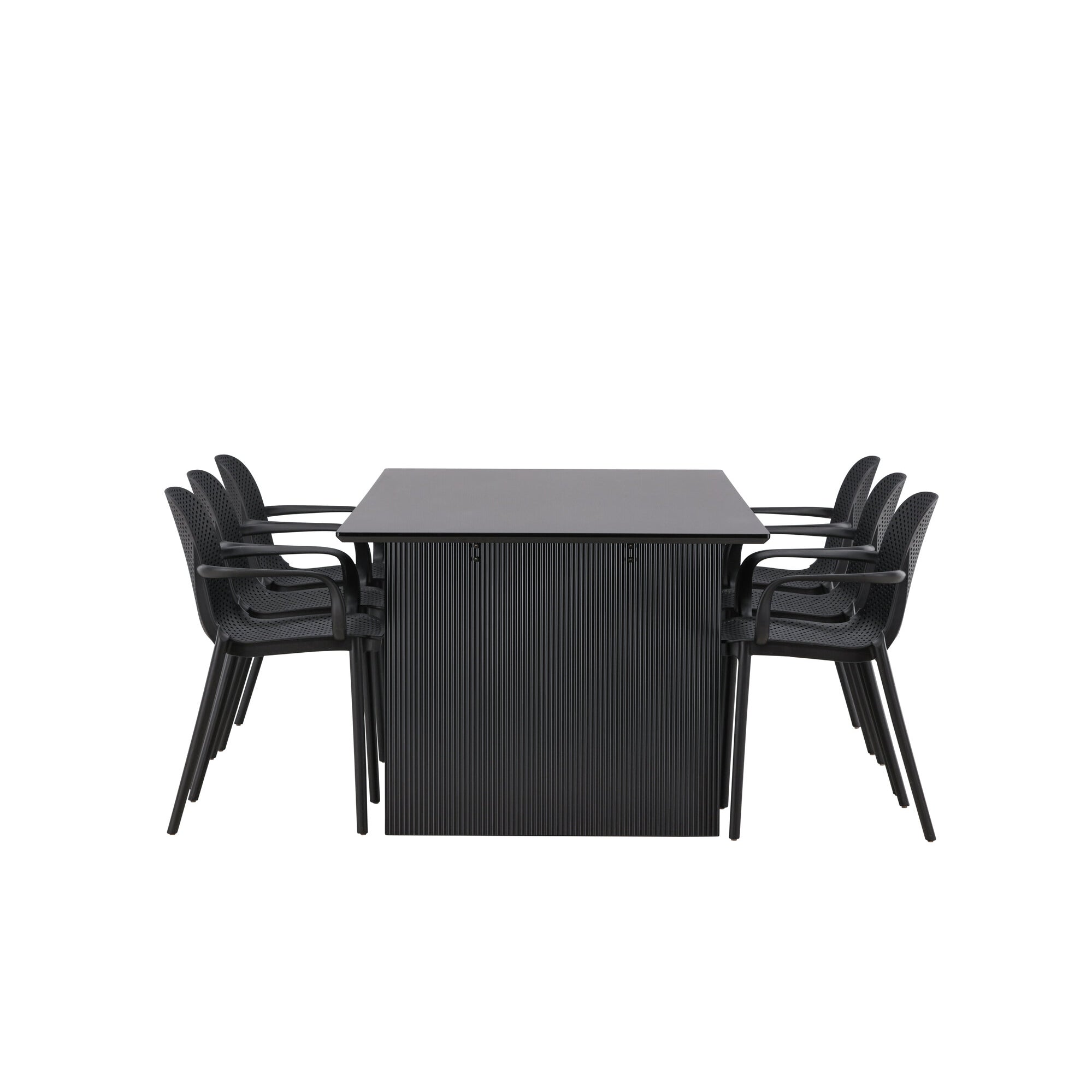 Jídelní stůl Vail – černá / kouřová černá MDF + jídelní židle Baltimore – černá / černý plast _6