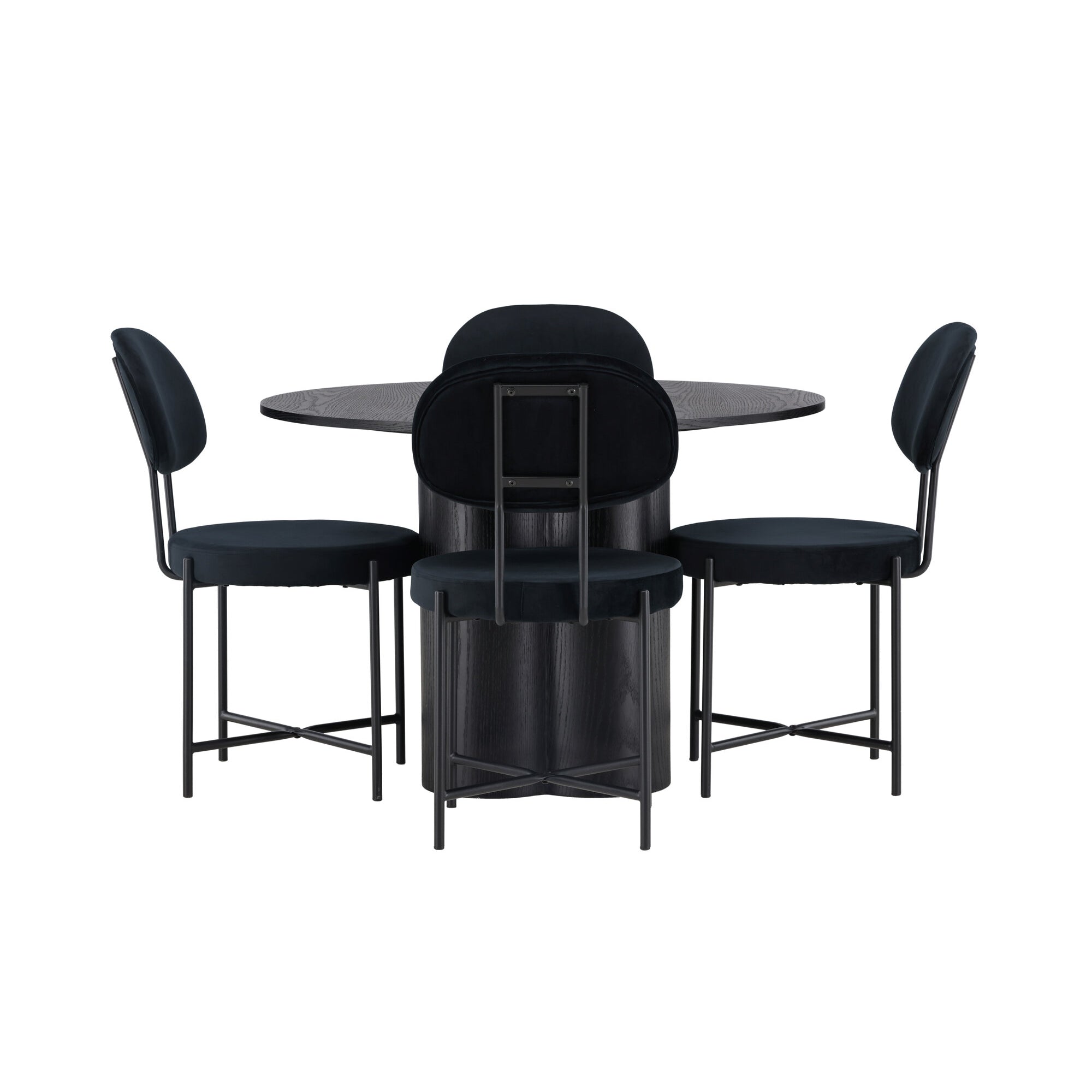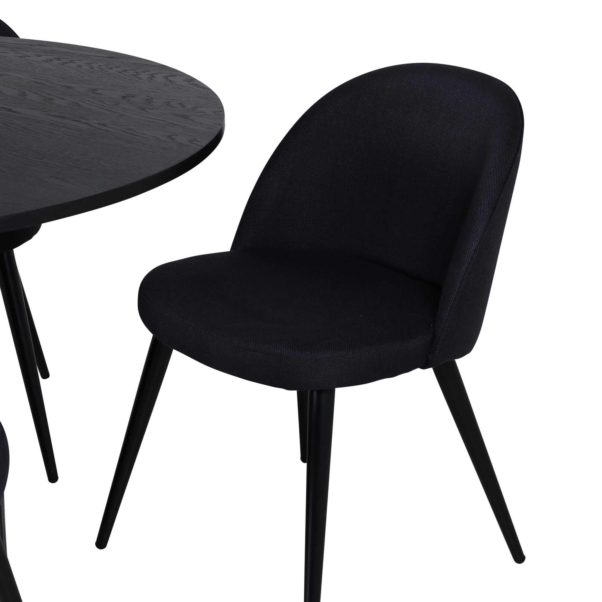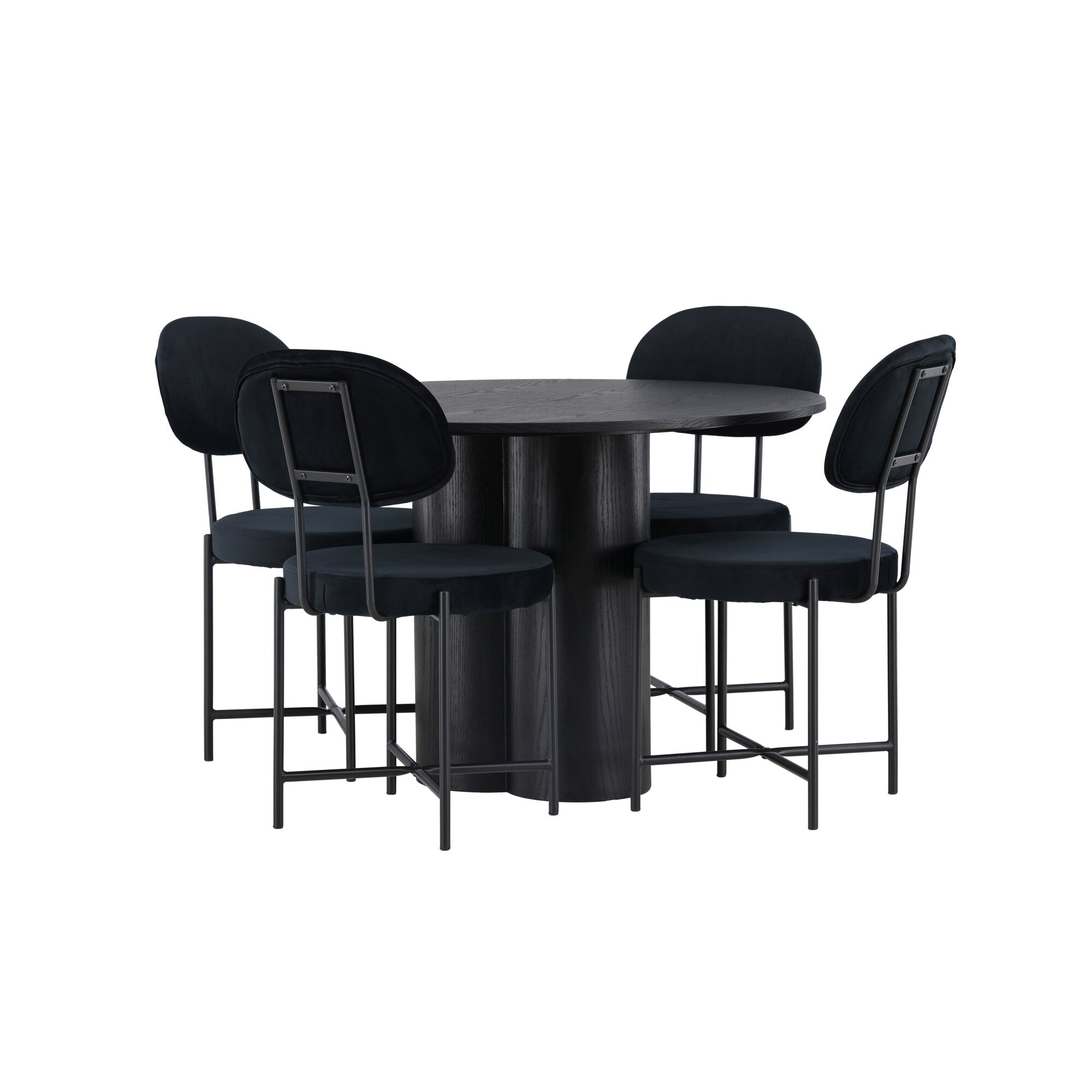 Bianca kulatý jídelní stůl, černá černá dýha + sametová jídelní židle, černé nohy, černá látka_4