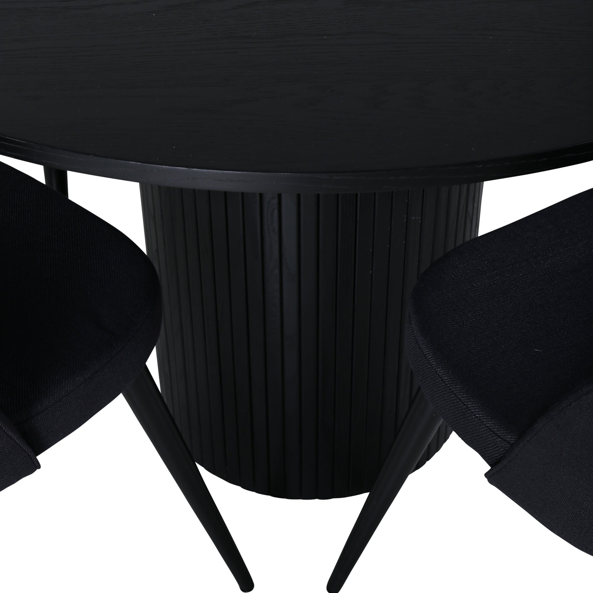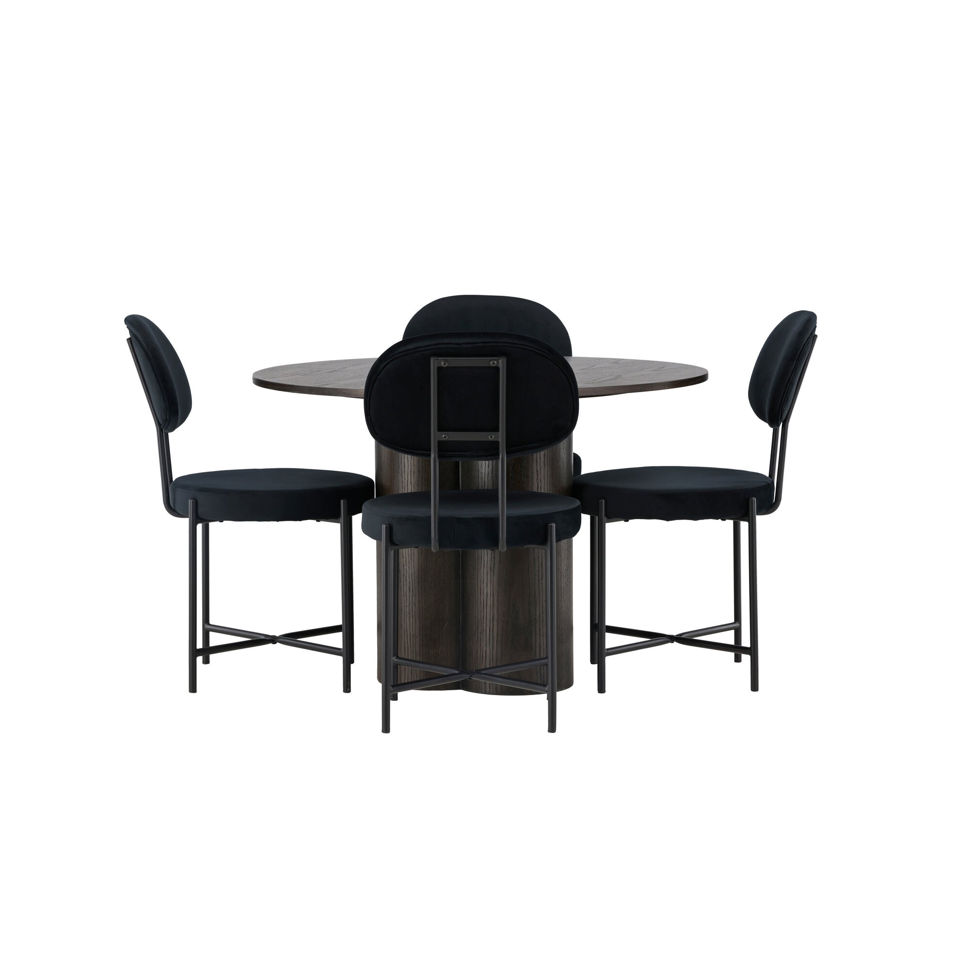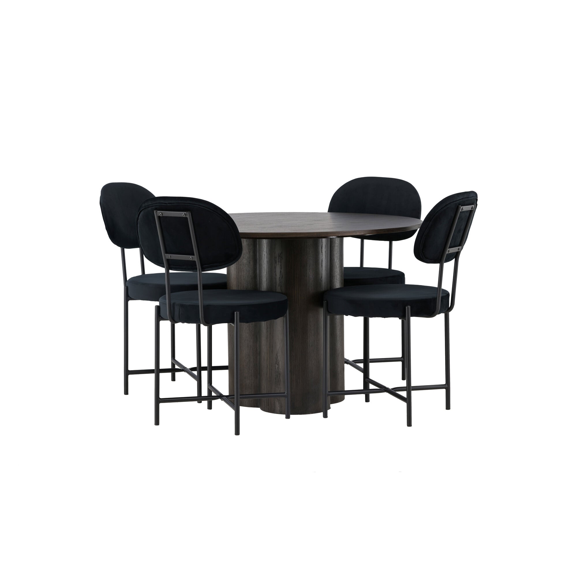 Bianca kulatý jídelní stůl, černá černá dýha + sametová jídelní židle, černé nohy, černá látka_4