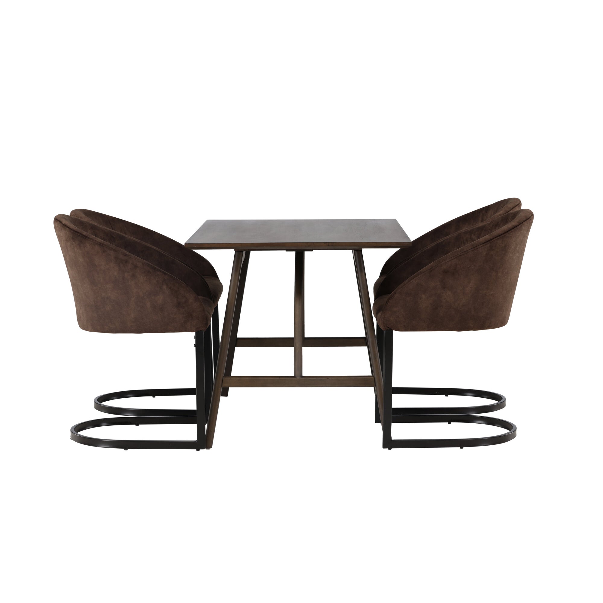 Jídelní stůl Kaseidon – kaučukové dřevo / tmavě hnědá MDF + večerní jídelní židle – matná hnědá / hnědá látka _4