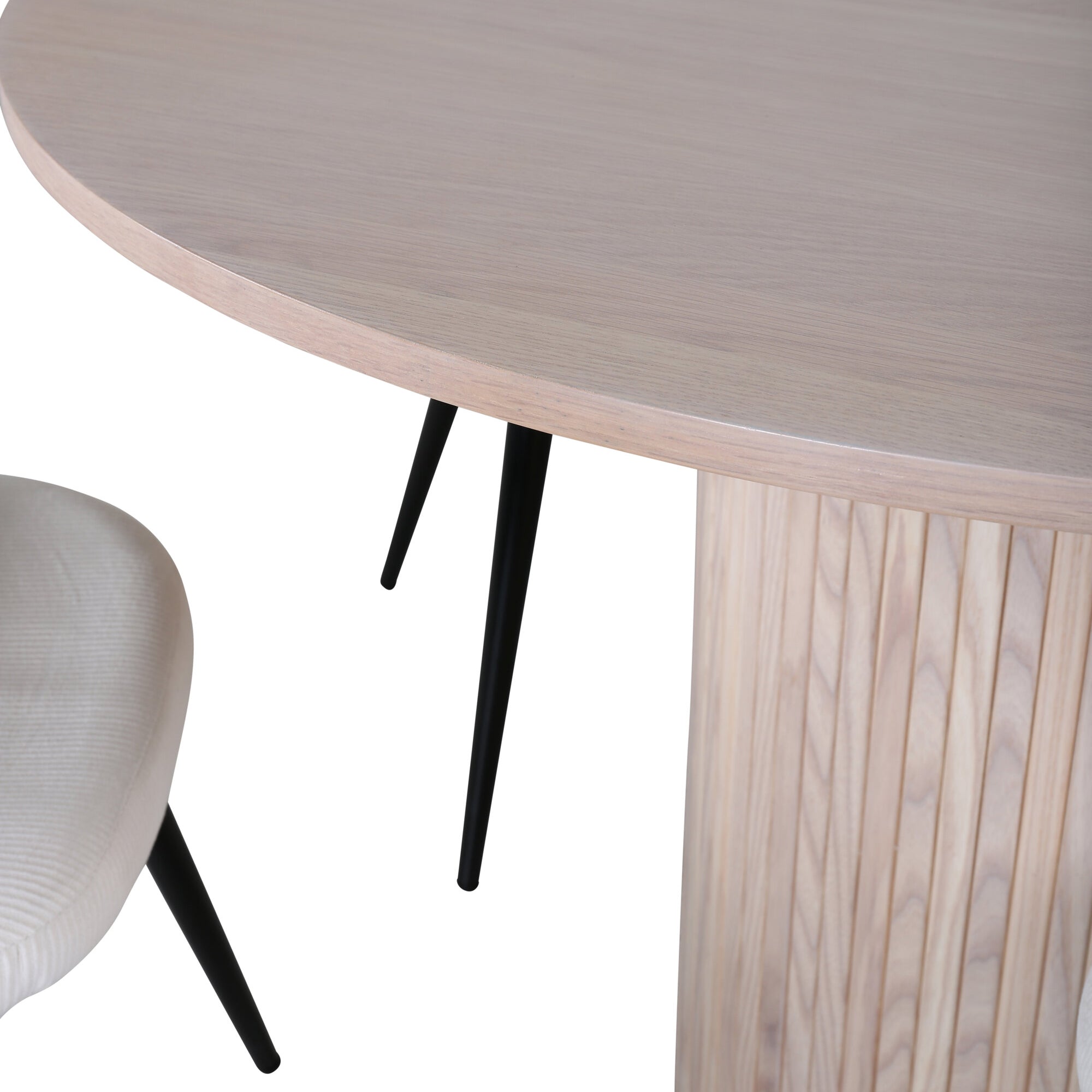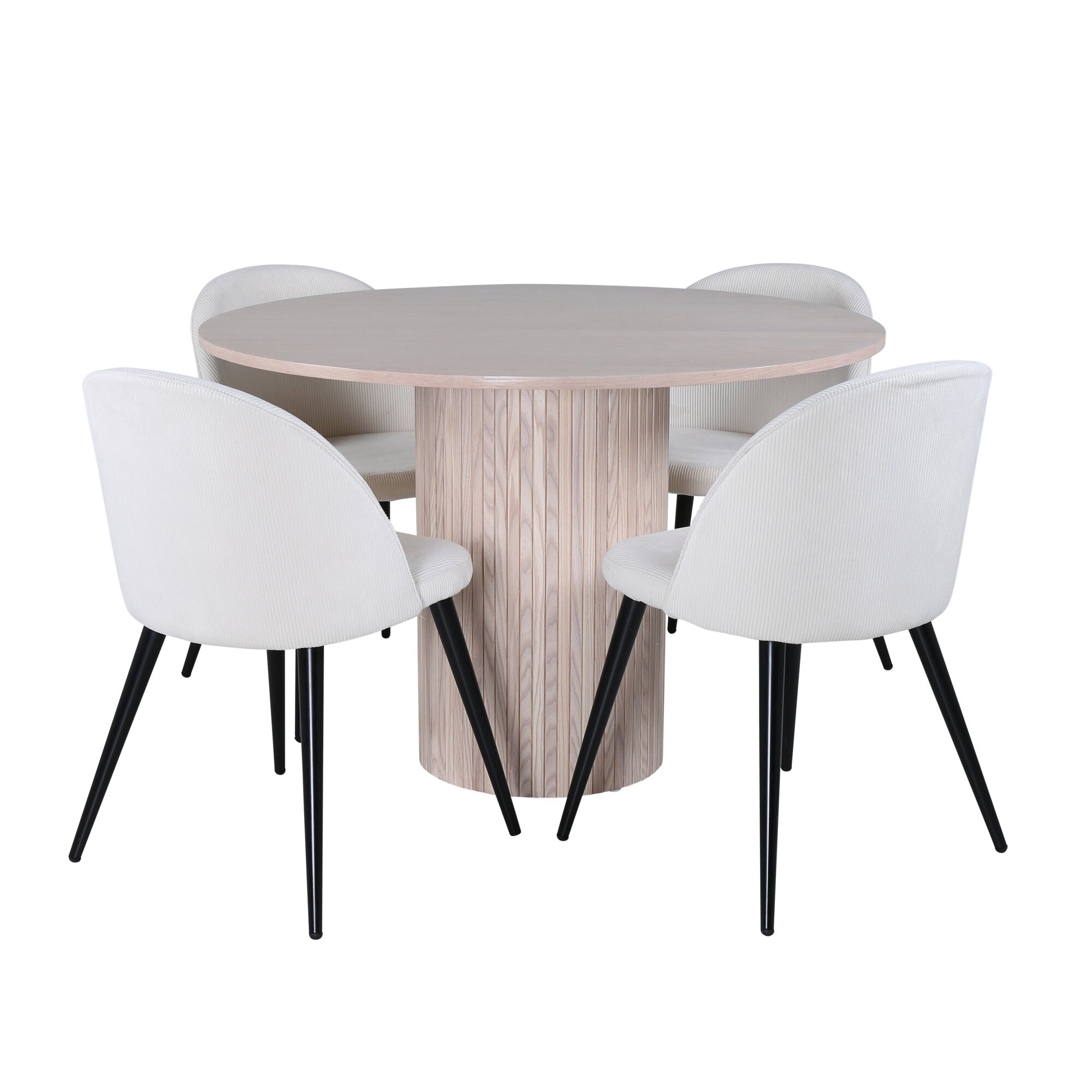 Bianca kulatý jídelní stůl , White Wash Černá Dýha + Sametová jídelní židle Manšestr , Béžová Černá_4
