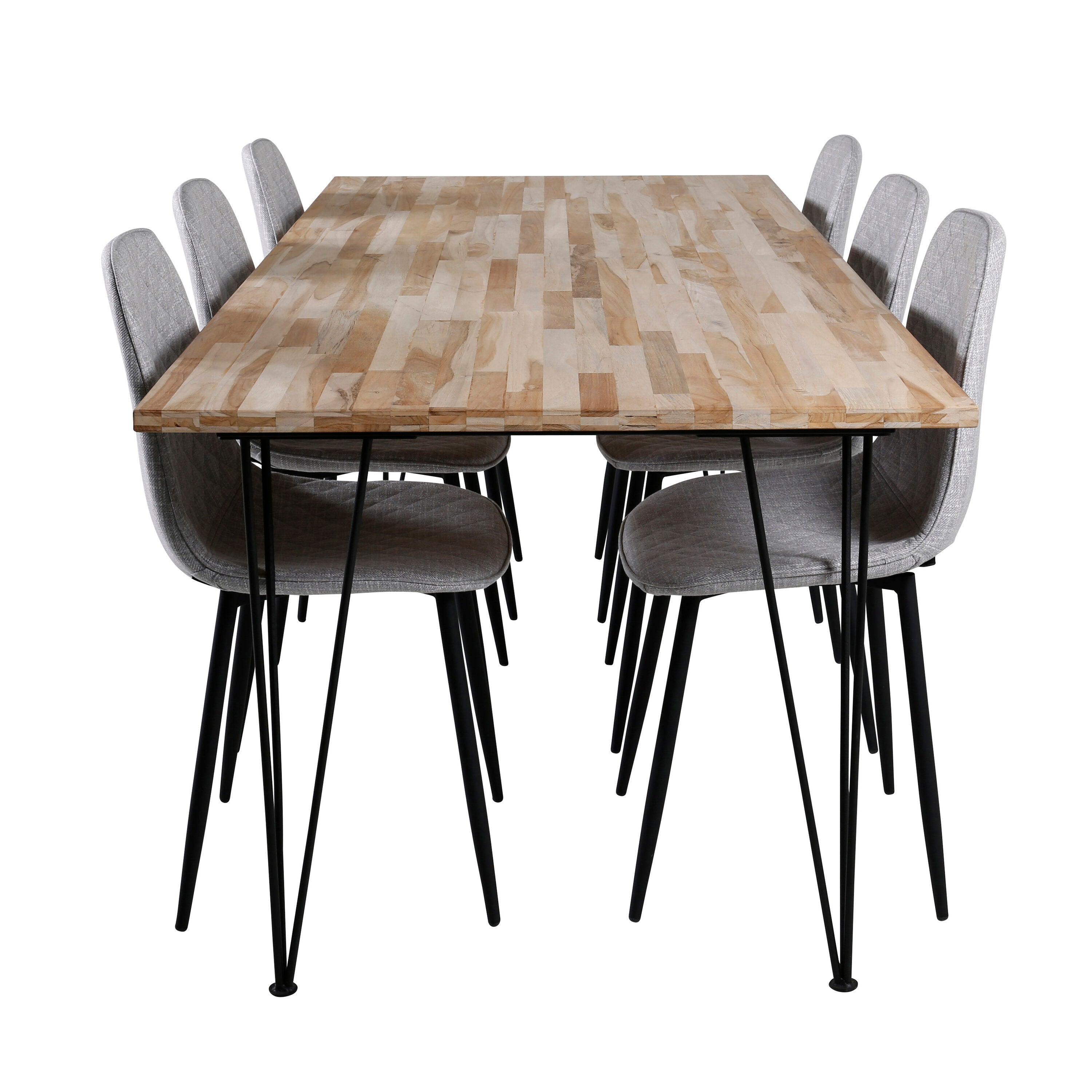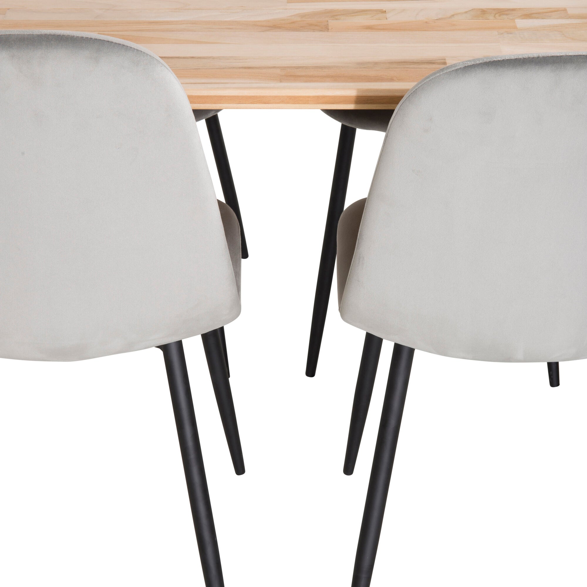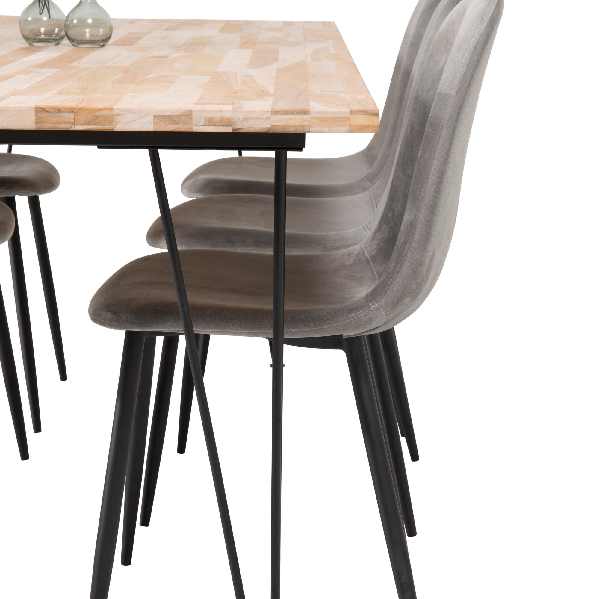 Bali Matbord - Svart / Naturträ - 200*90*H75+Polar Jídelní židle - Černé nohy / Světle šedá Velvet_6