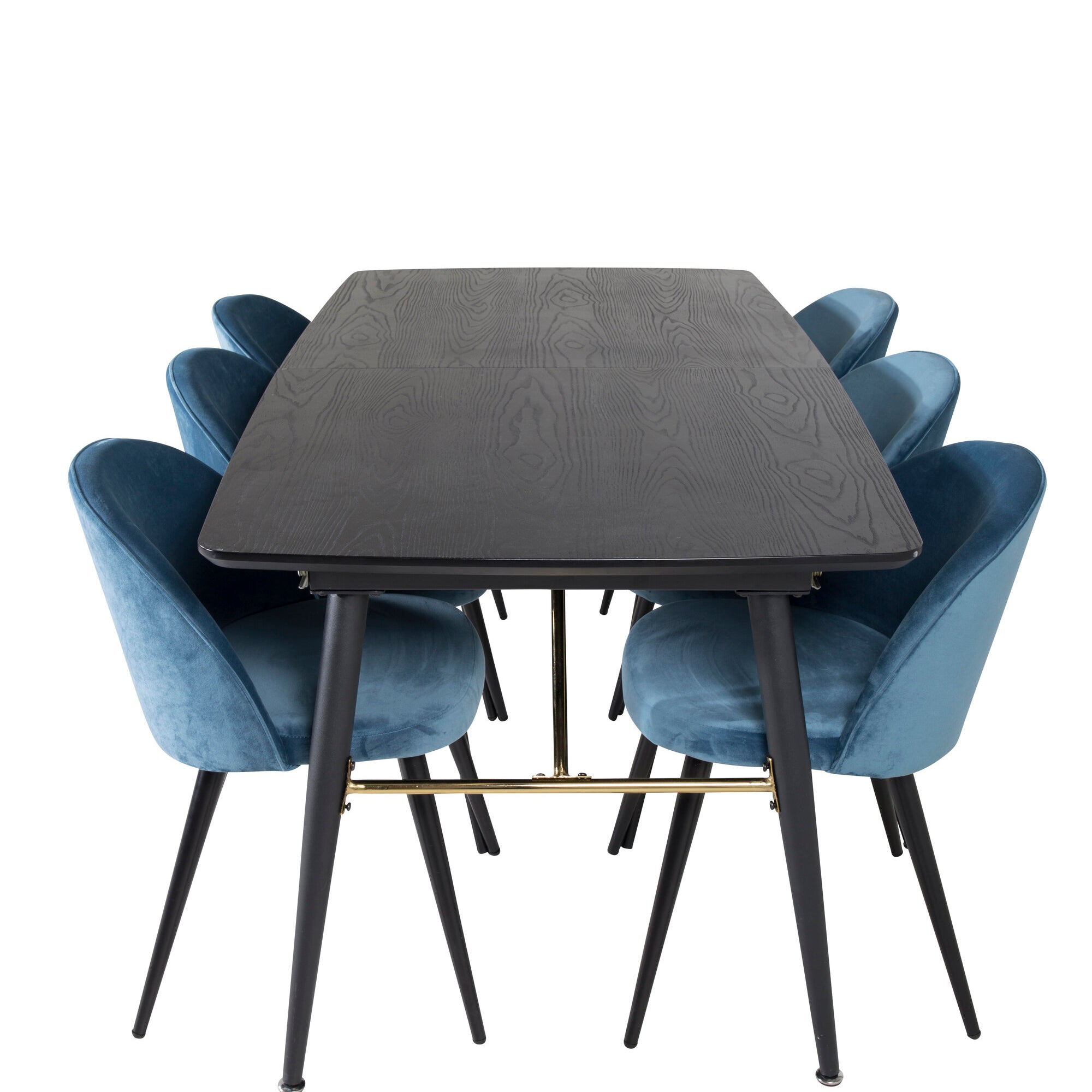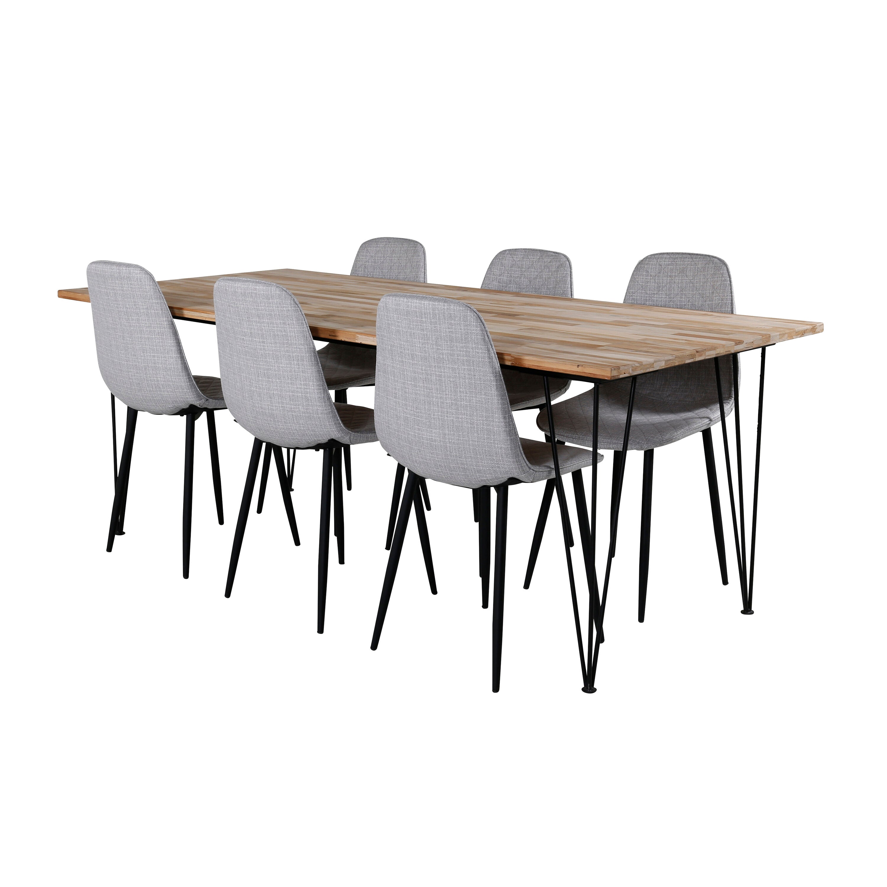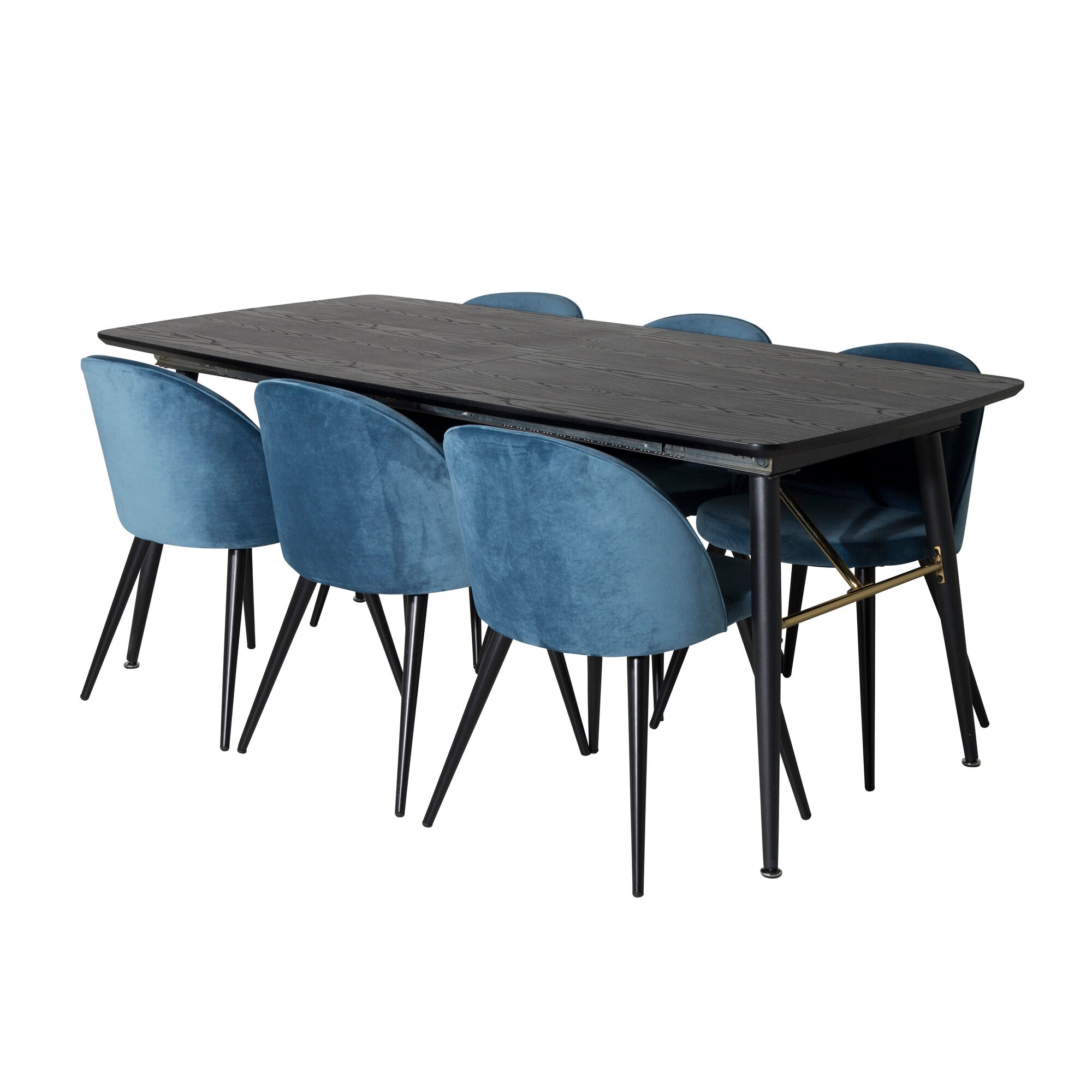 Bali Matbord - Svart / Naturträ - 200*90*H75+Polar Jídelní židle - Černé nohy / Světle šedá Velvet_6
