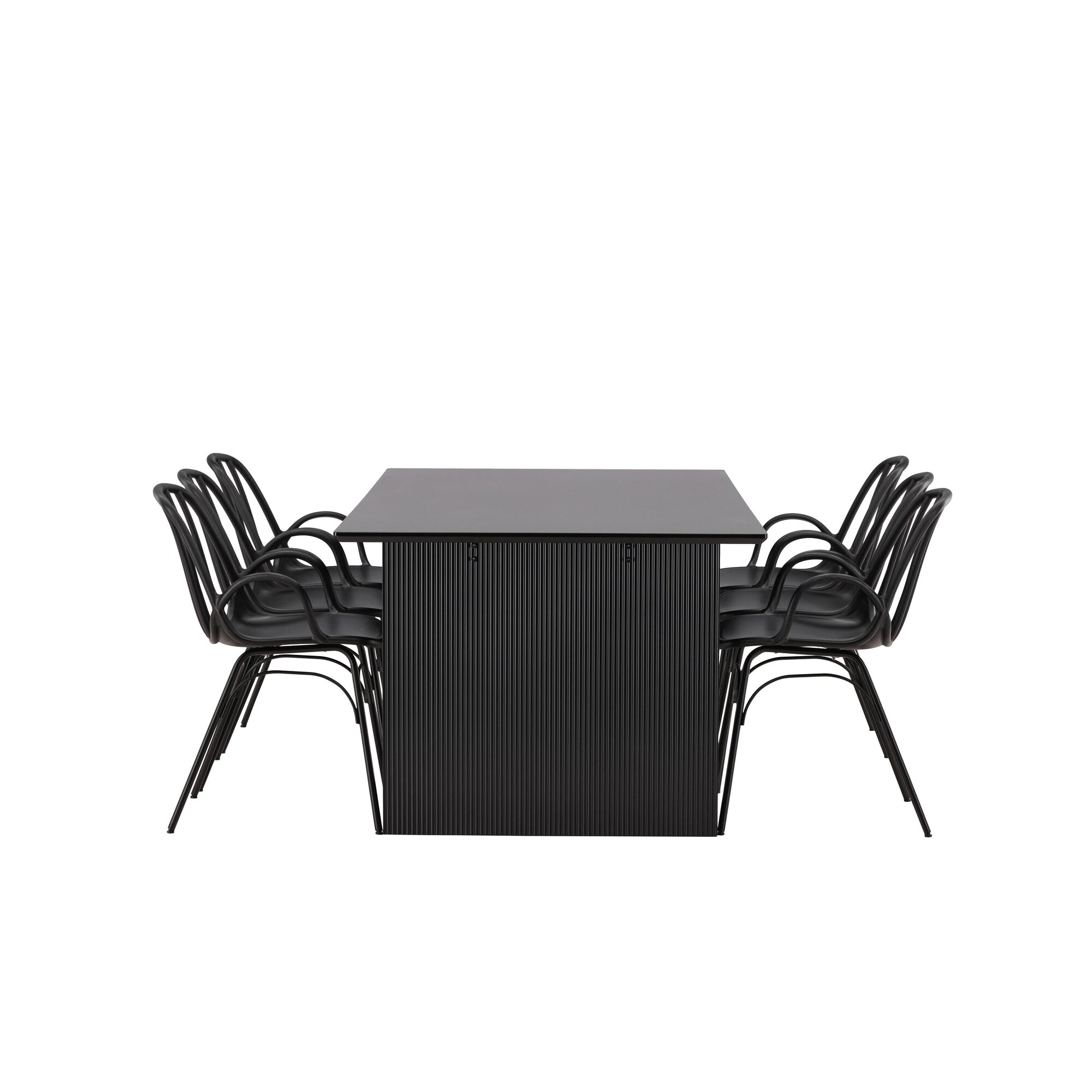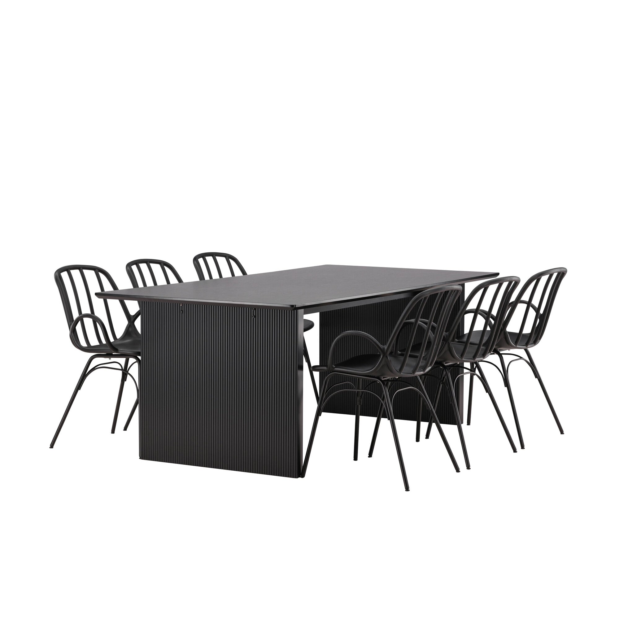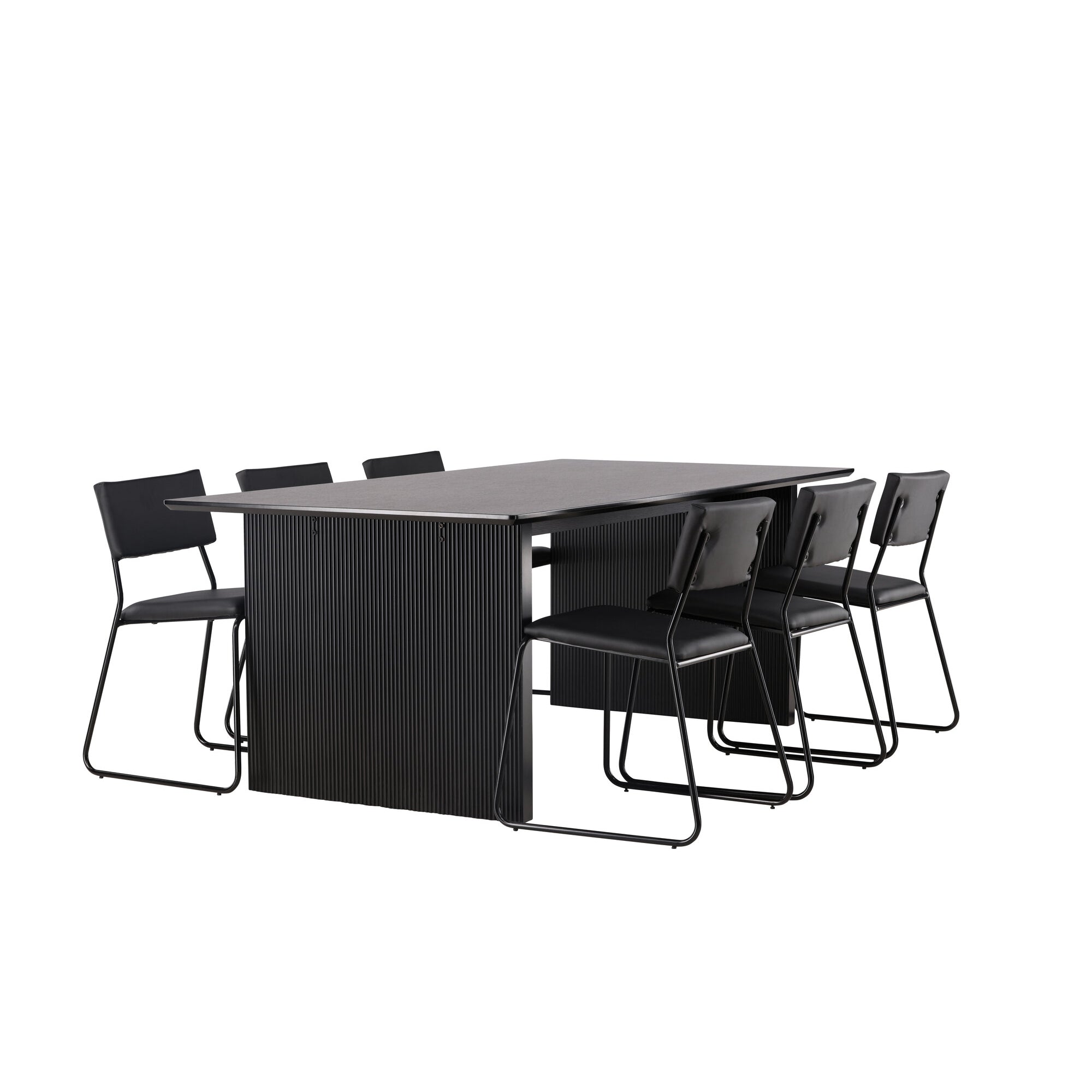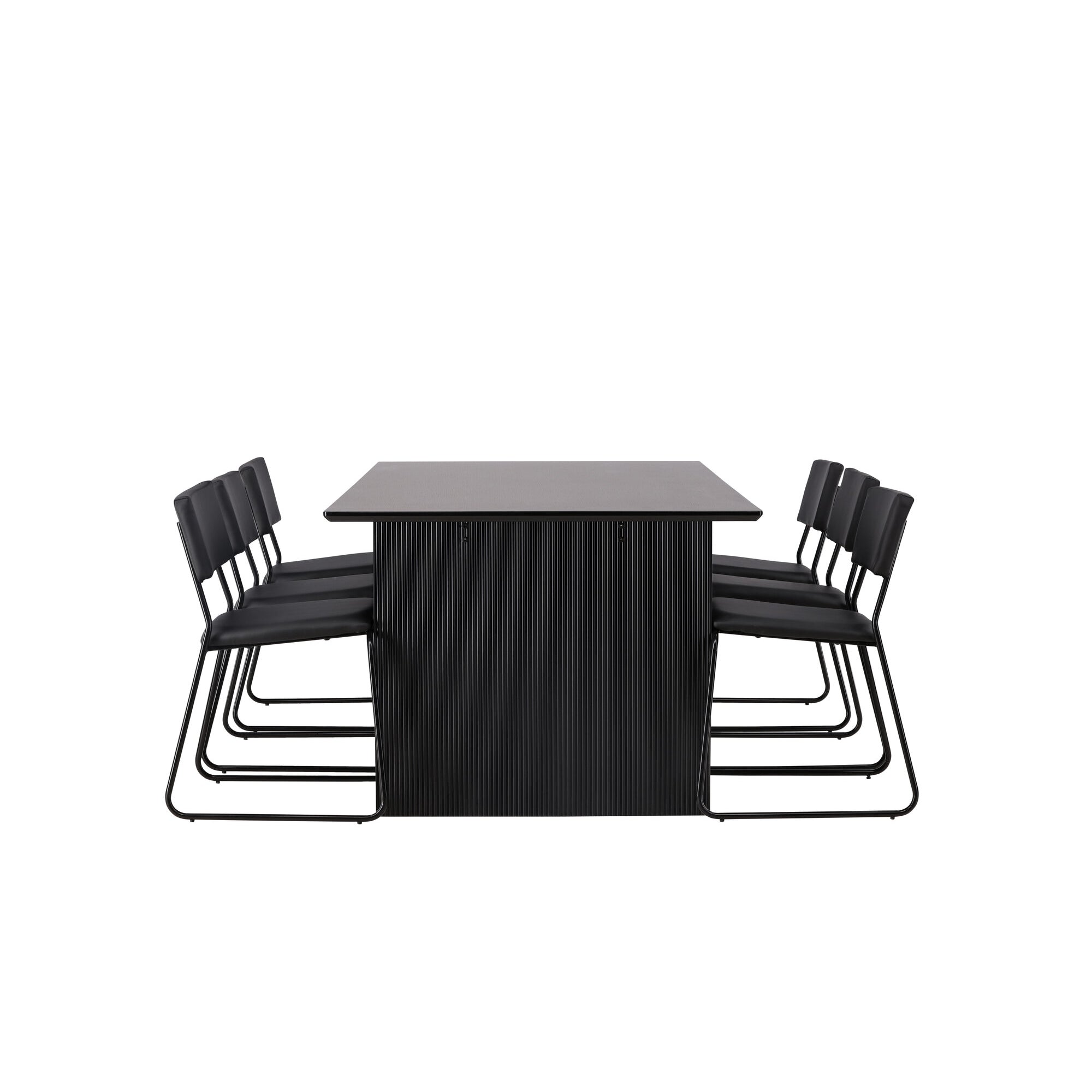 Jídelní stůl Vail – černá / kouřová černá MDF + Dyrön jídelní židle – černý polypropylen _6