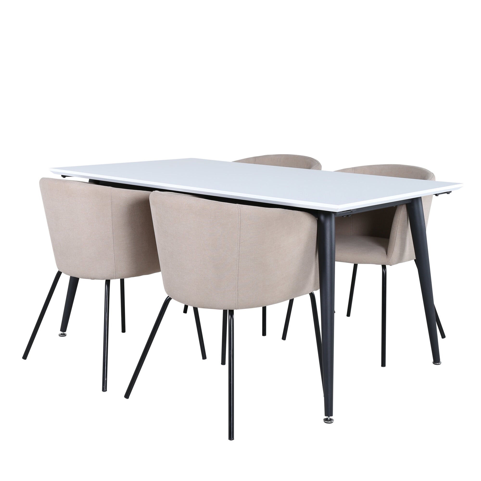 Stůl Strada - Whitewash se 4 nočními židlemi - Černá / Béžová
