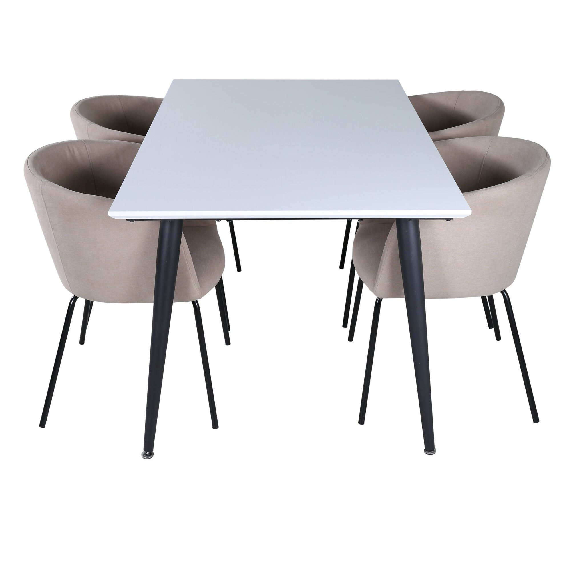 Jídelní stůl Jimmy – černá/bílá HPL+židle Berit – černá/béžová látka (polyesterové prádlo)_4