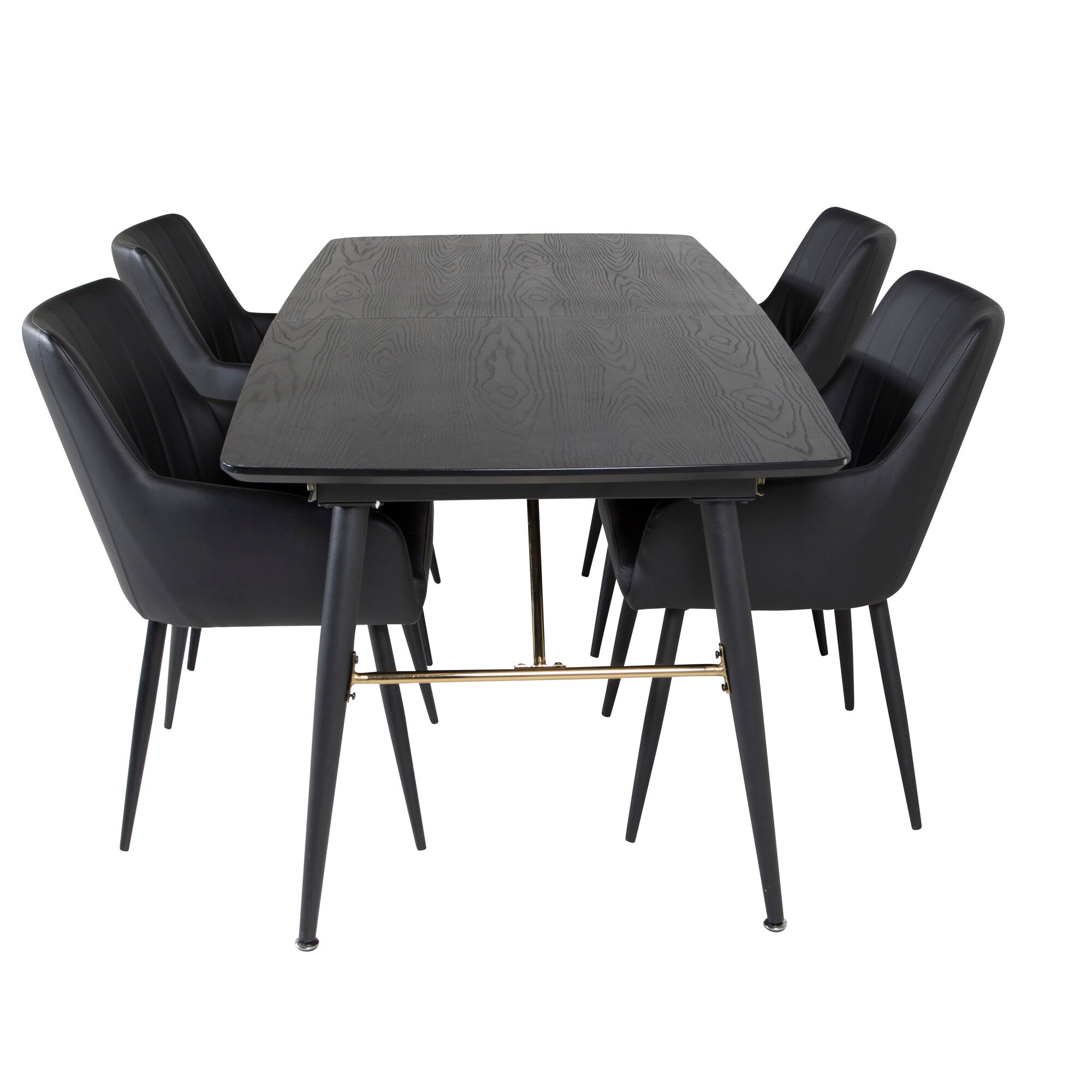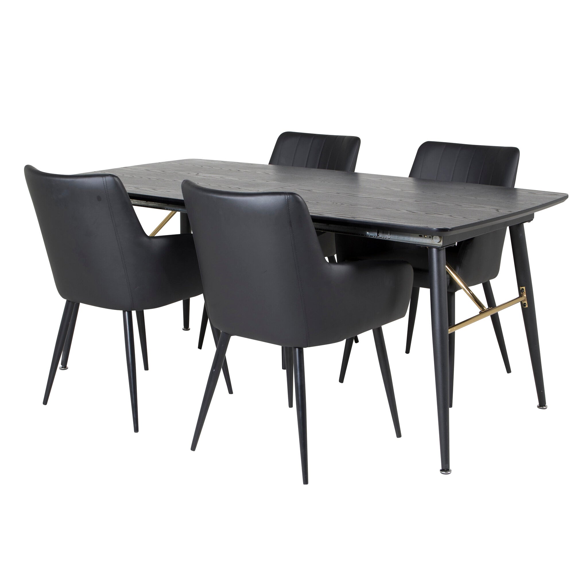 Dipp Jídelní stůl - 180*90cm - Černá dýha / celé černé nohy +Plaza Jídelní cha