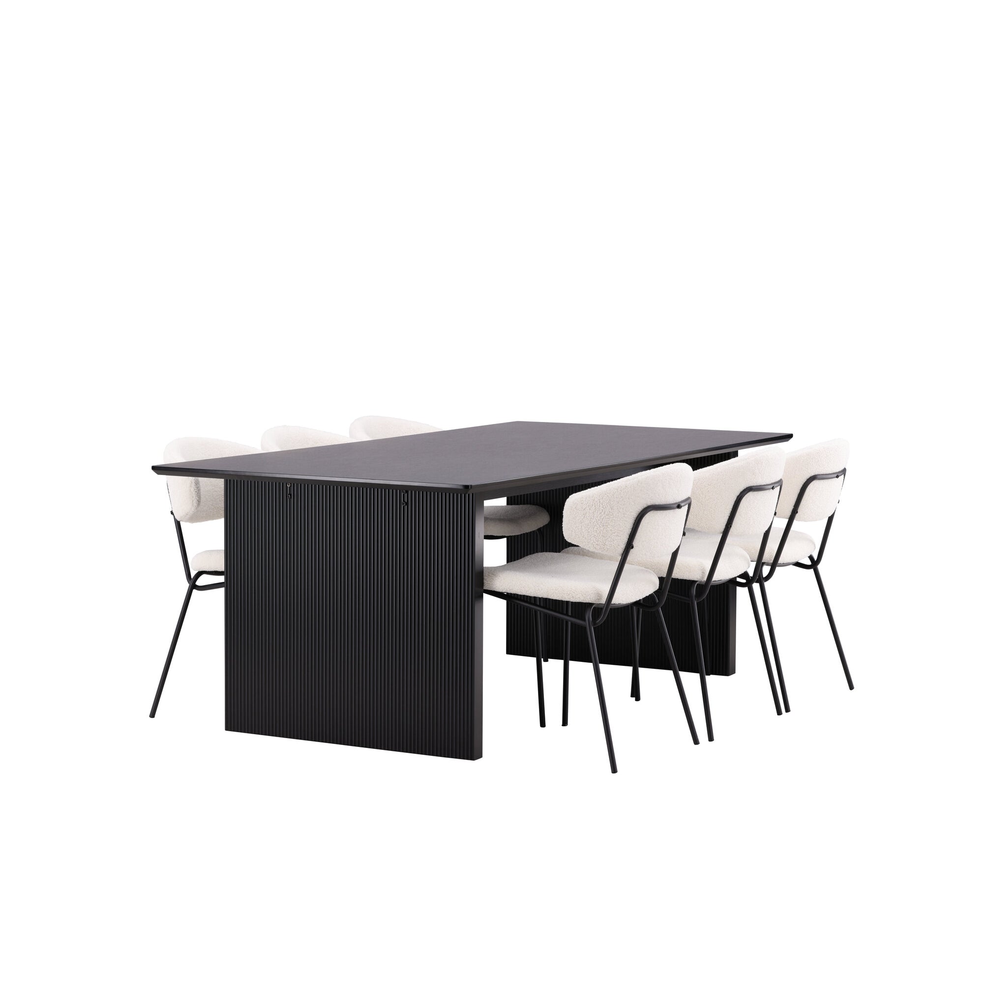 Jídelní stůl Vail - černá / kouřová černá MDF + Chicco jídelní židle - černá / bílá Boucle _6