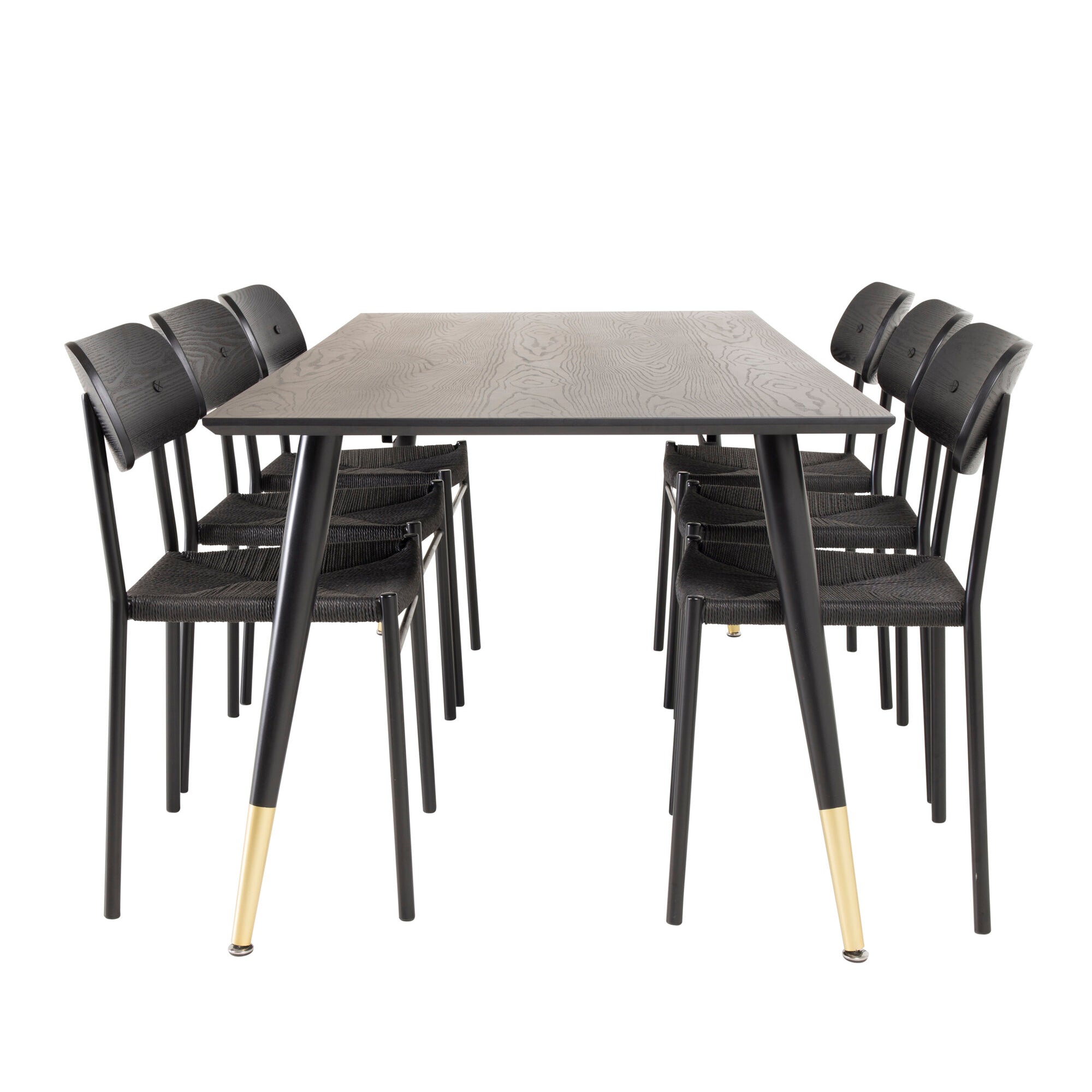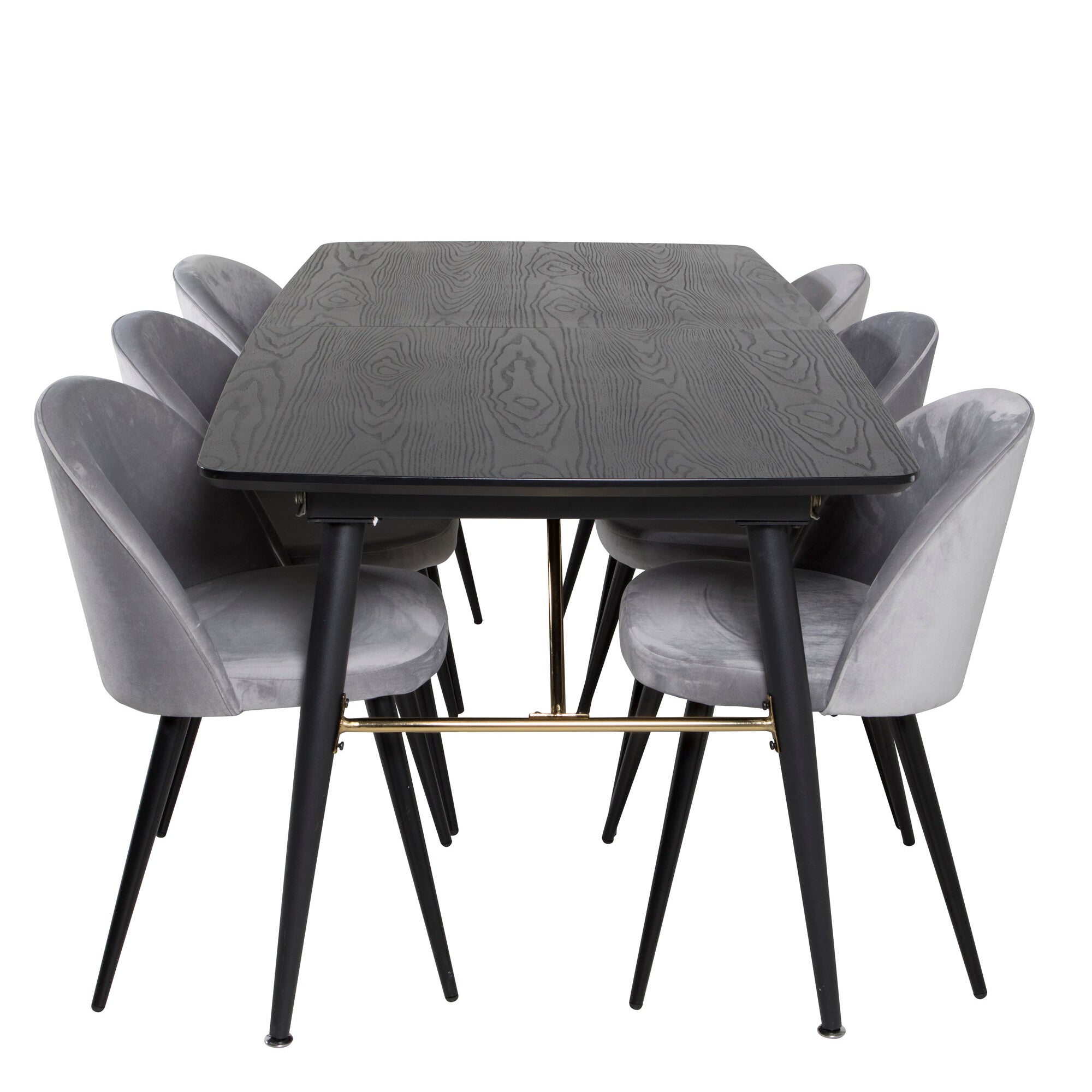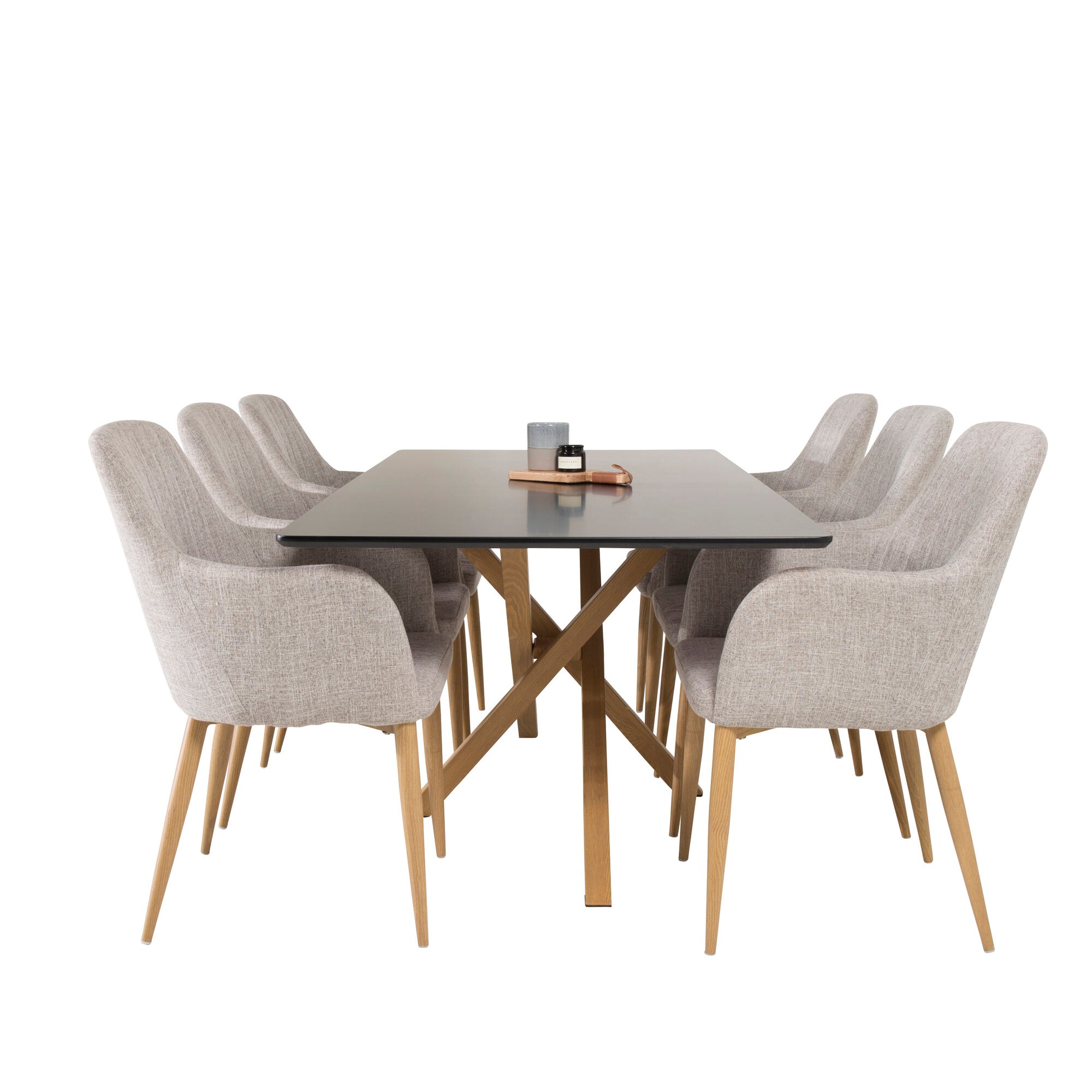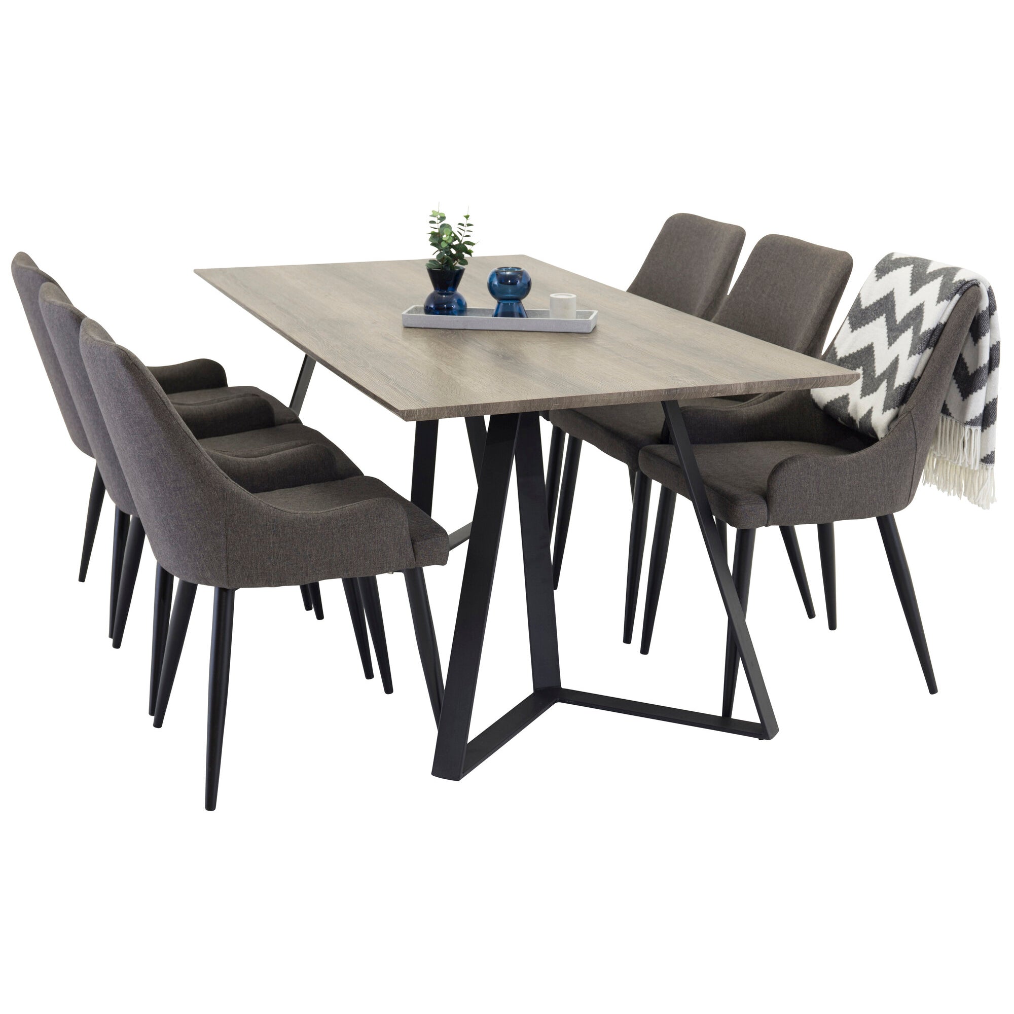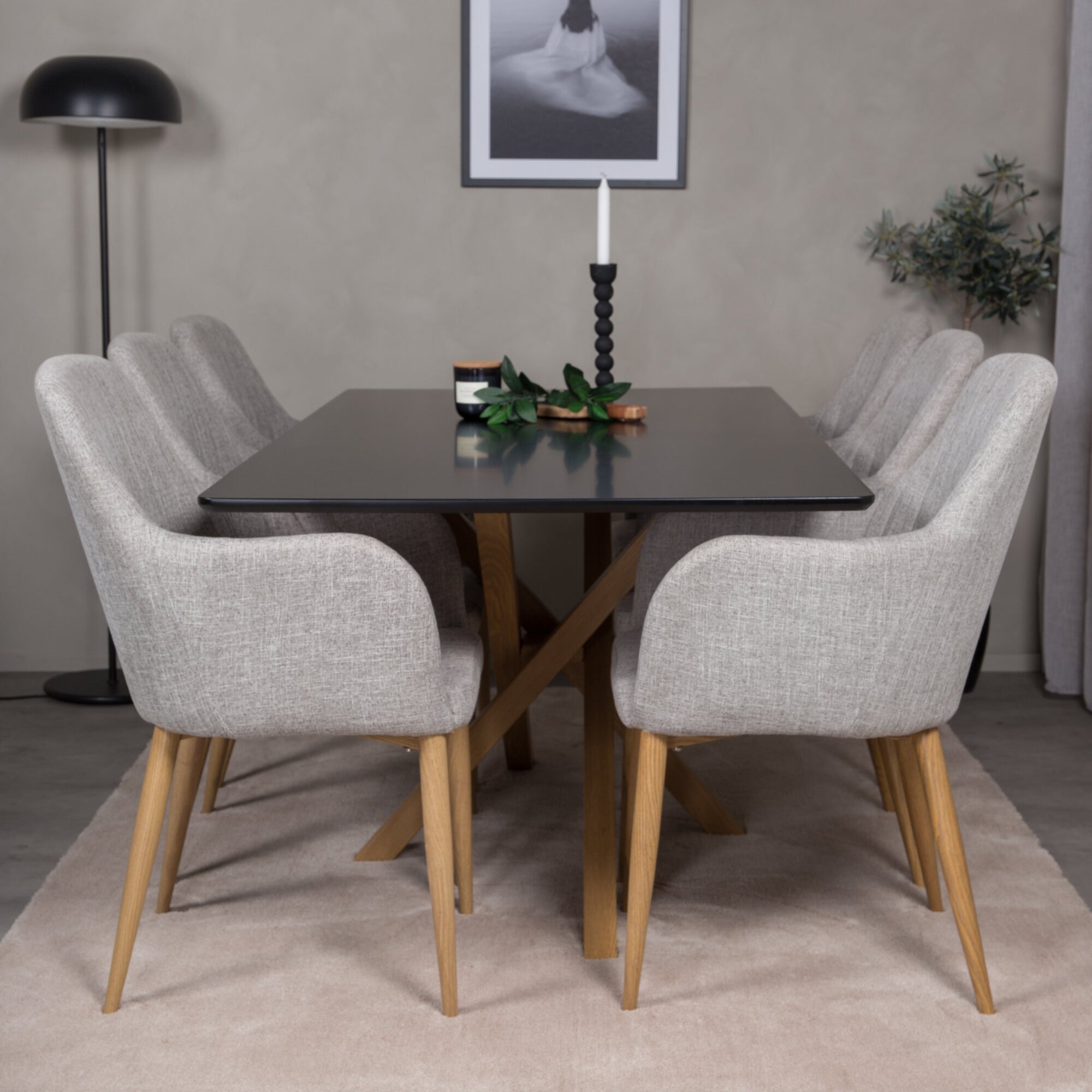 Piazza Matbord - Ek-look / svart - 180*90*75 +Comfort - Jídelní židle - Dub/Světle šedá _6