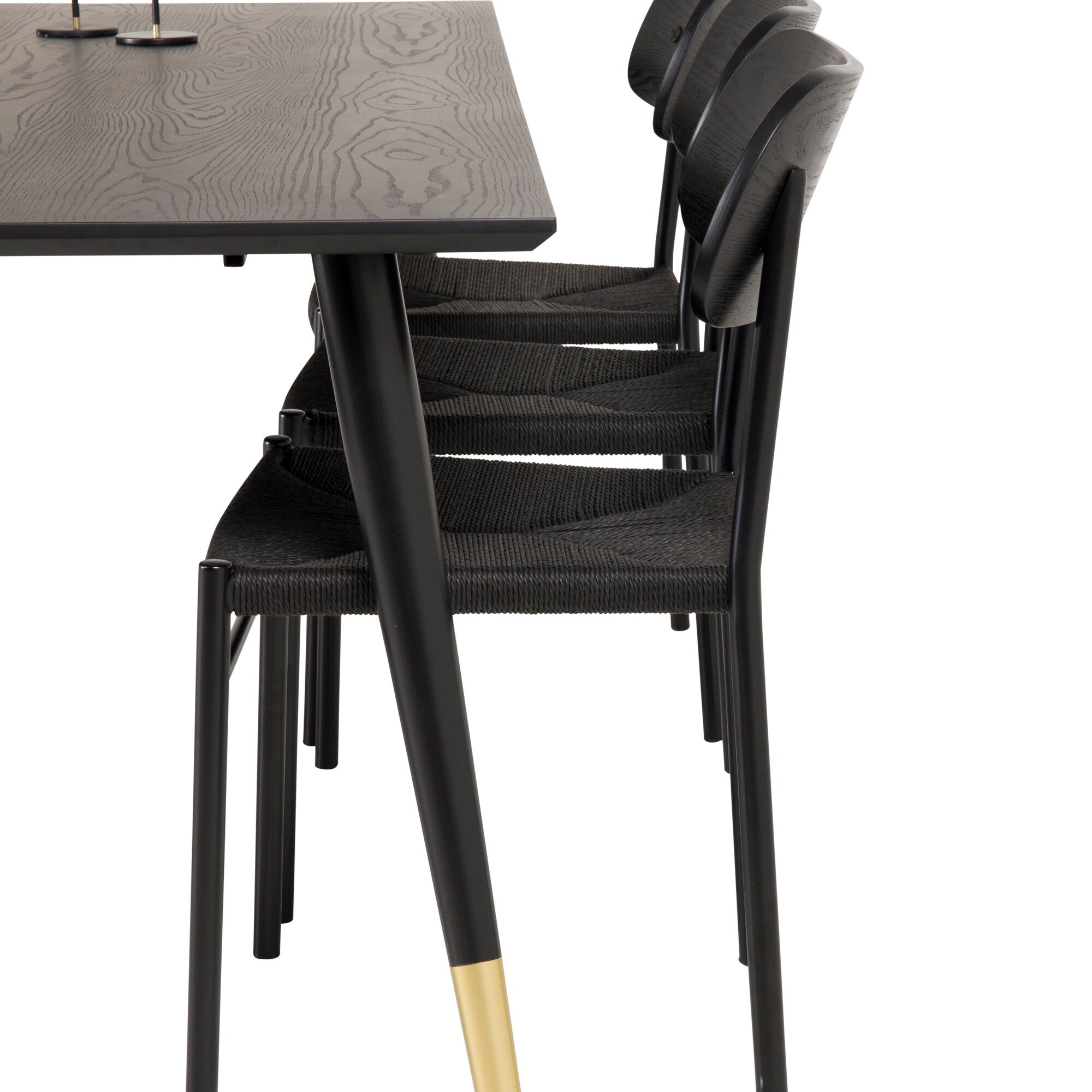 Jídelní stůl Dipp - 180*90cm - Černá dýha / černé nohy s mosazným dippem + Jídelní židle Polly - Černá / Černá _6