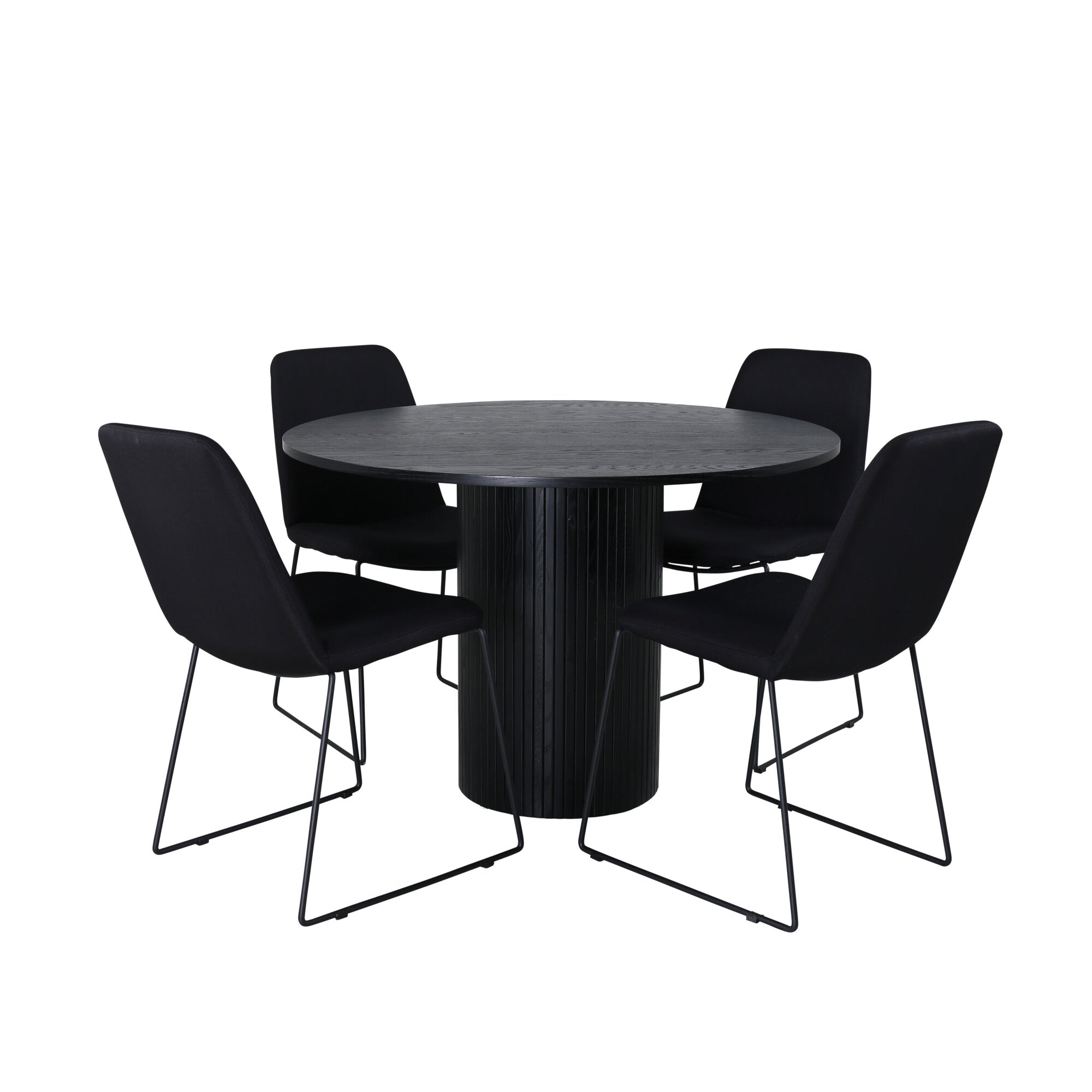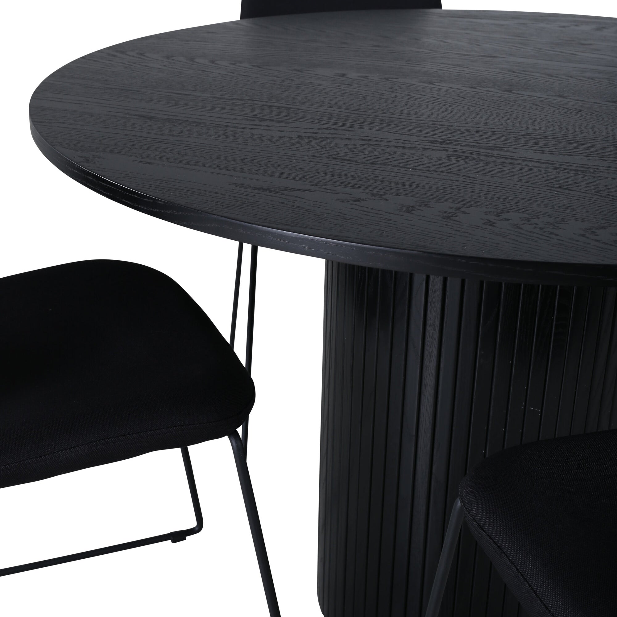 Bianca kulatý jídelní stůl, černá černá dýha+muce jídelní židle, černé nohy, černá látka_4