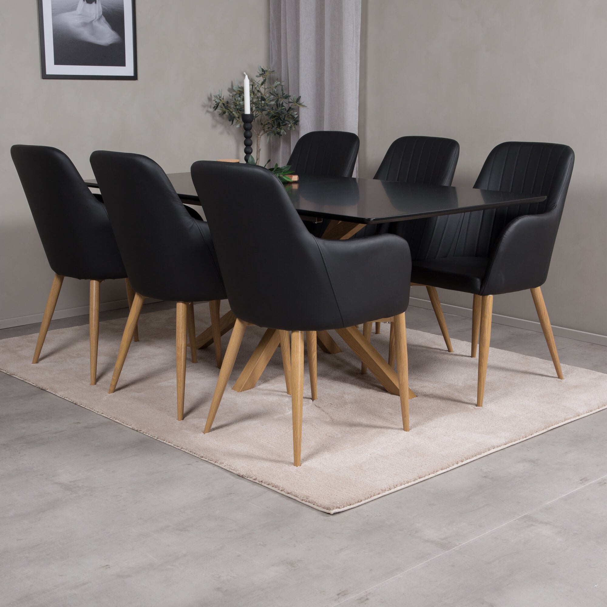 Piazza Matbord - Ek-look / svart - 180*90*75 +Comfort Karmstol - Ek-Look / Svart PU _6
