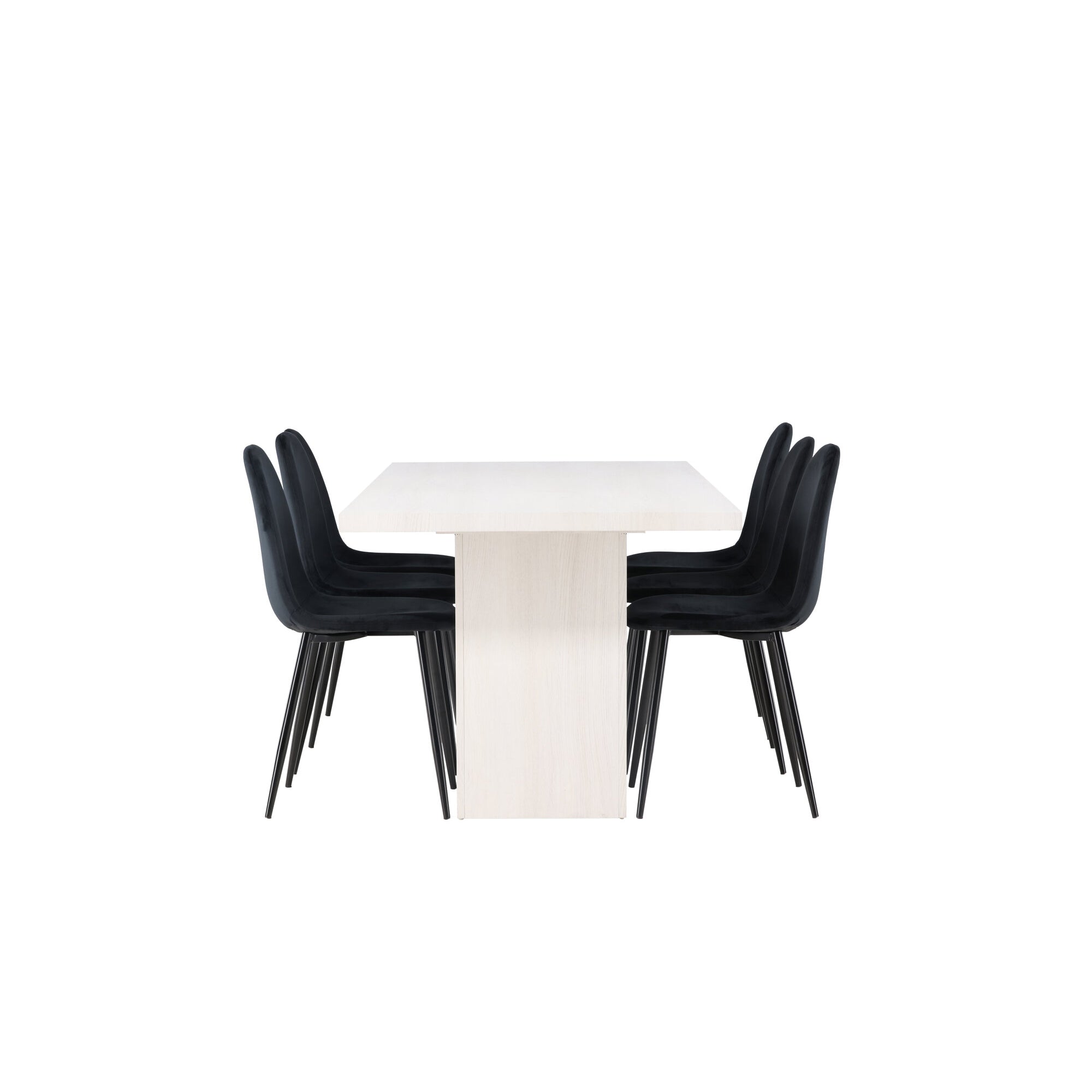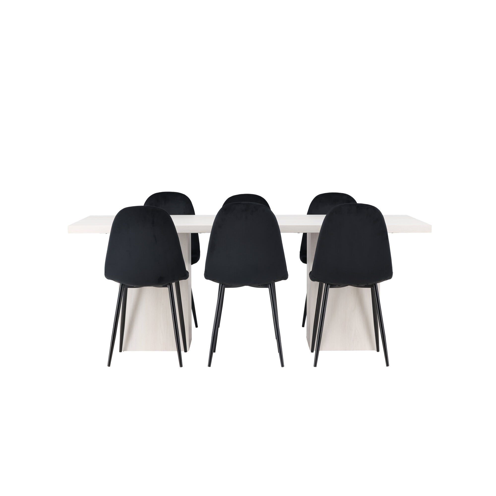 Jídelní stůl Olga 200*75 - White Wash + Jídelní židle Polar - Černé nohy / Black Velvet _6