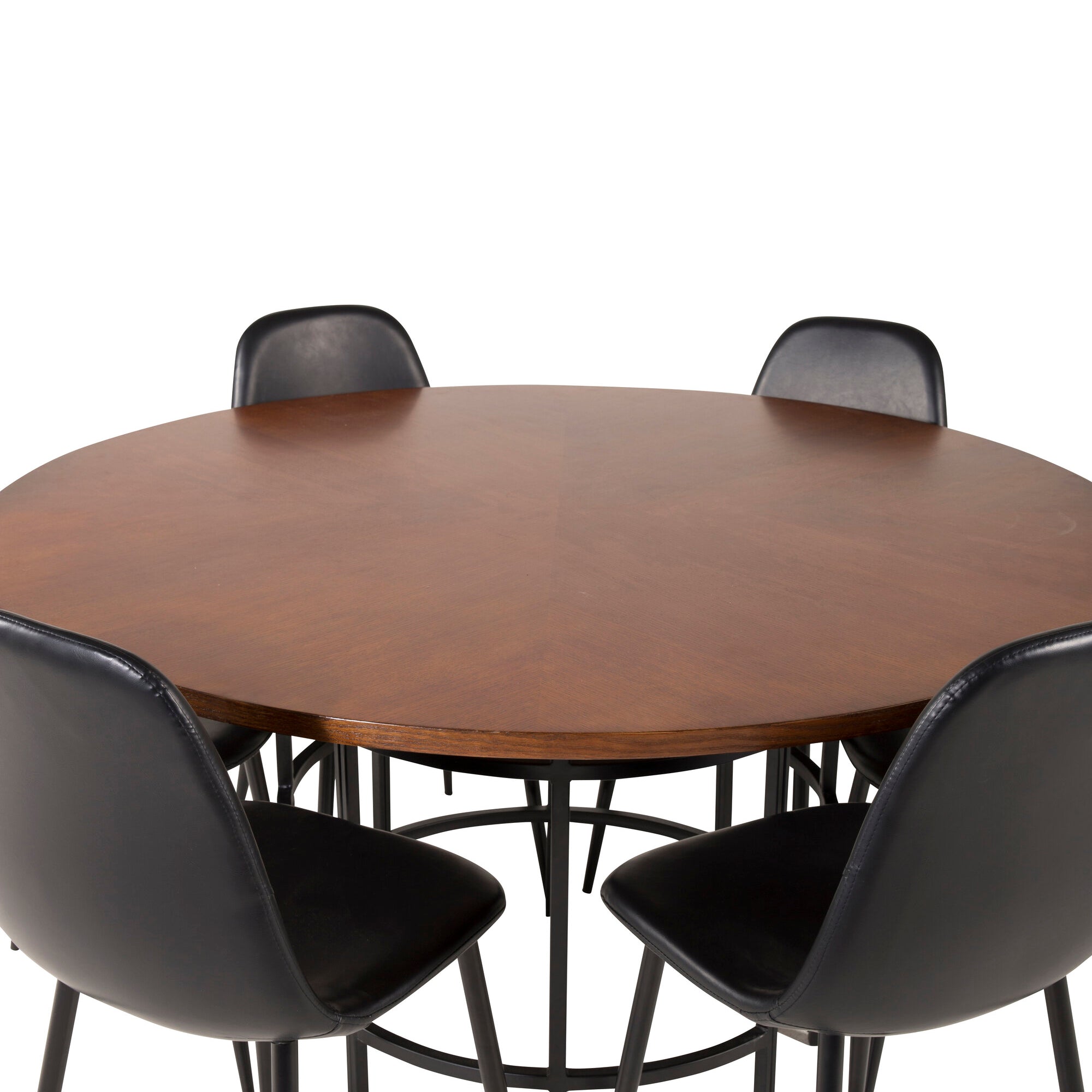 Jídelní stůl Matilda φ130 - černá / černá MDF s dýhou + noční jídelní židle - tmavý ořech / mocca / hnědá látka _4