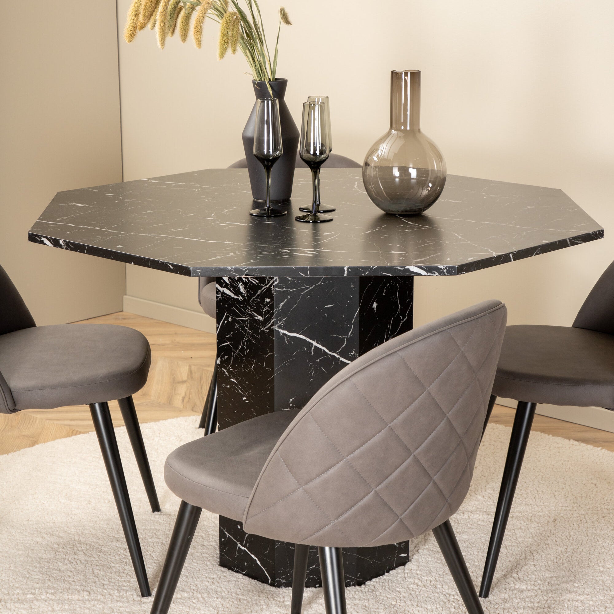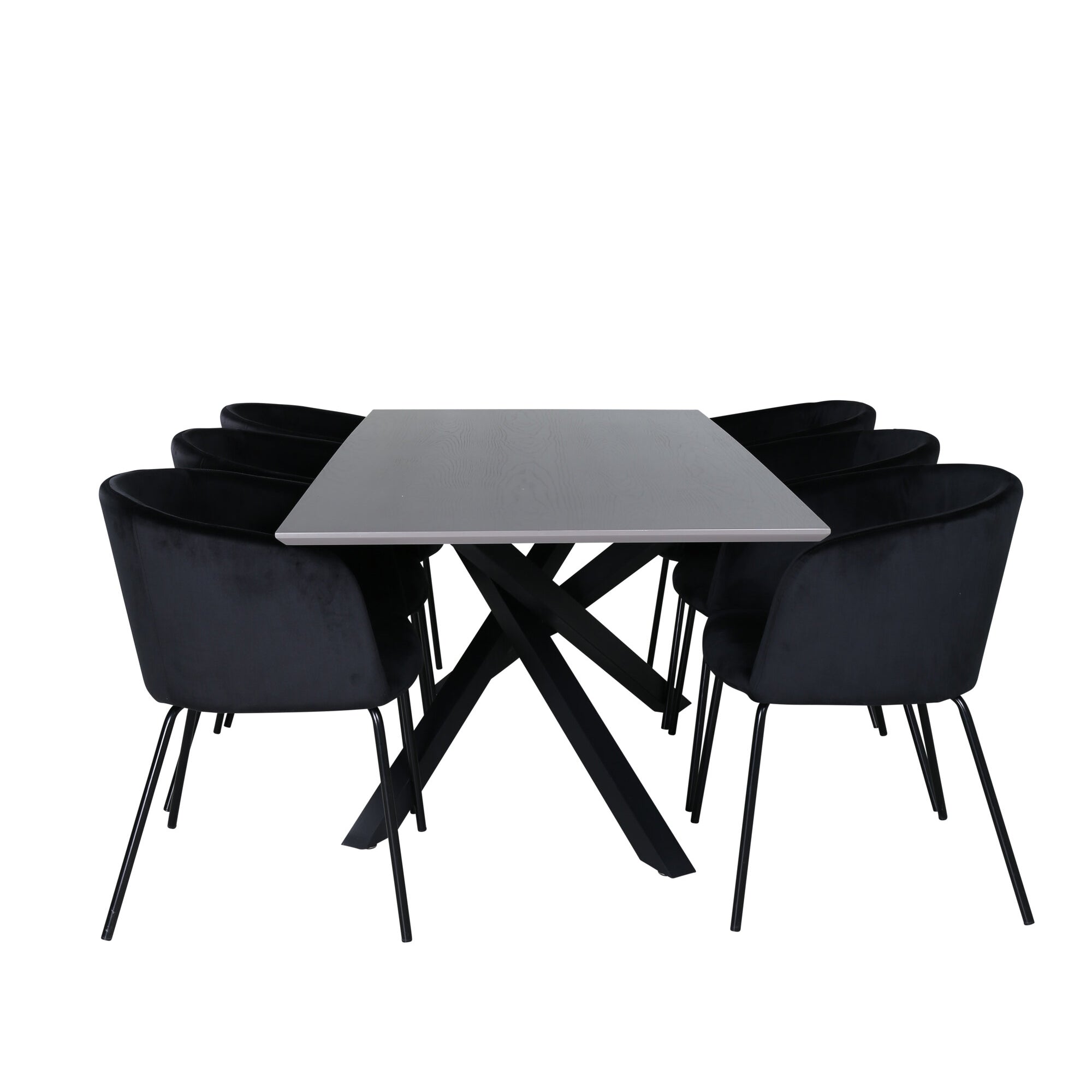 Jídelní stůl Piazza, černá šedá dýha + židle Berit, černý černý samet_6