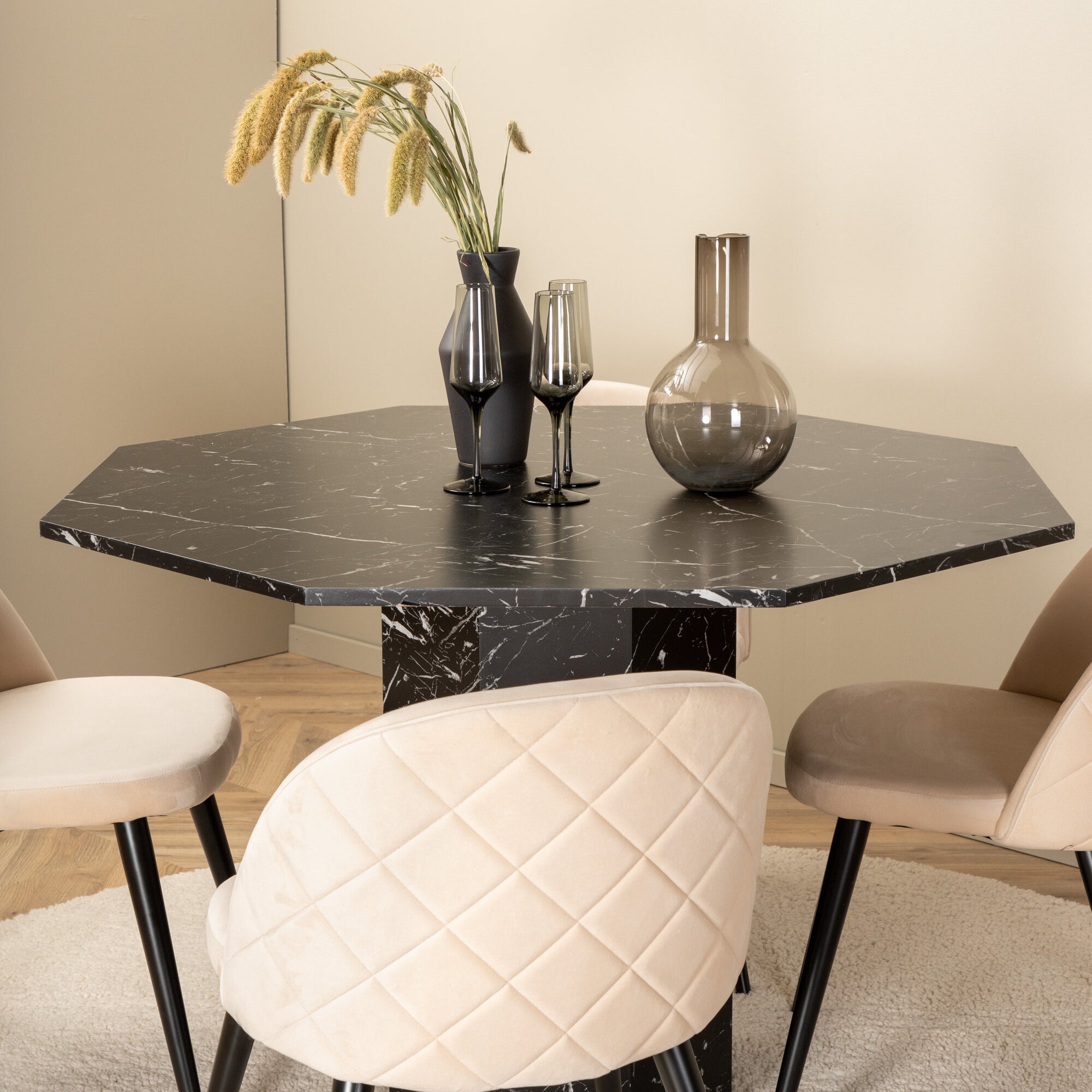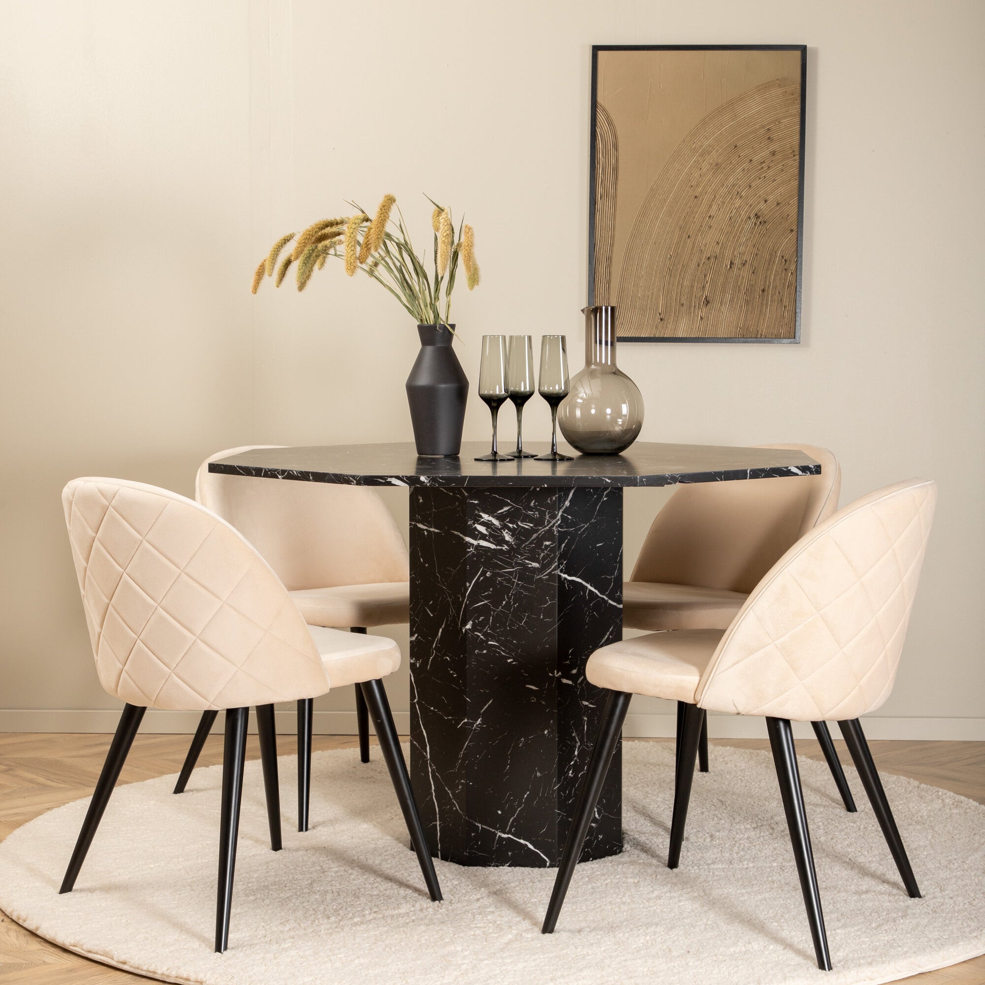 Kulatý jídelní stůl Marbs - Černá / Černá sklo Židle Mramor+Velvet Stitches - Černá / Béžová Velvet_4