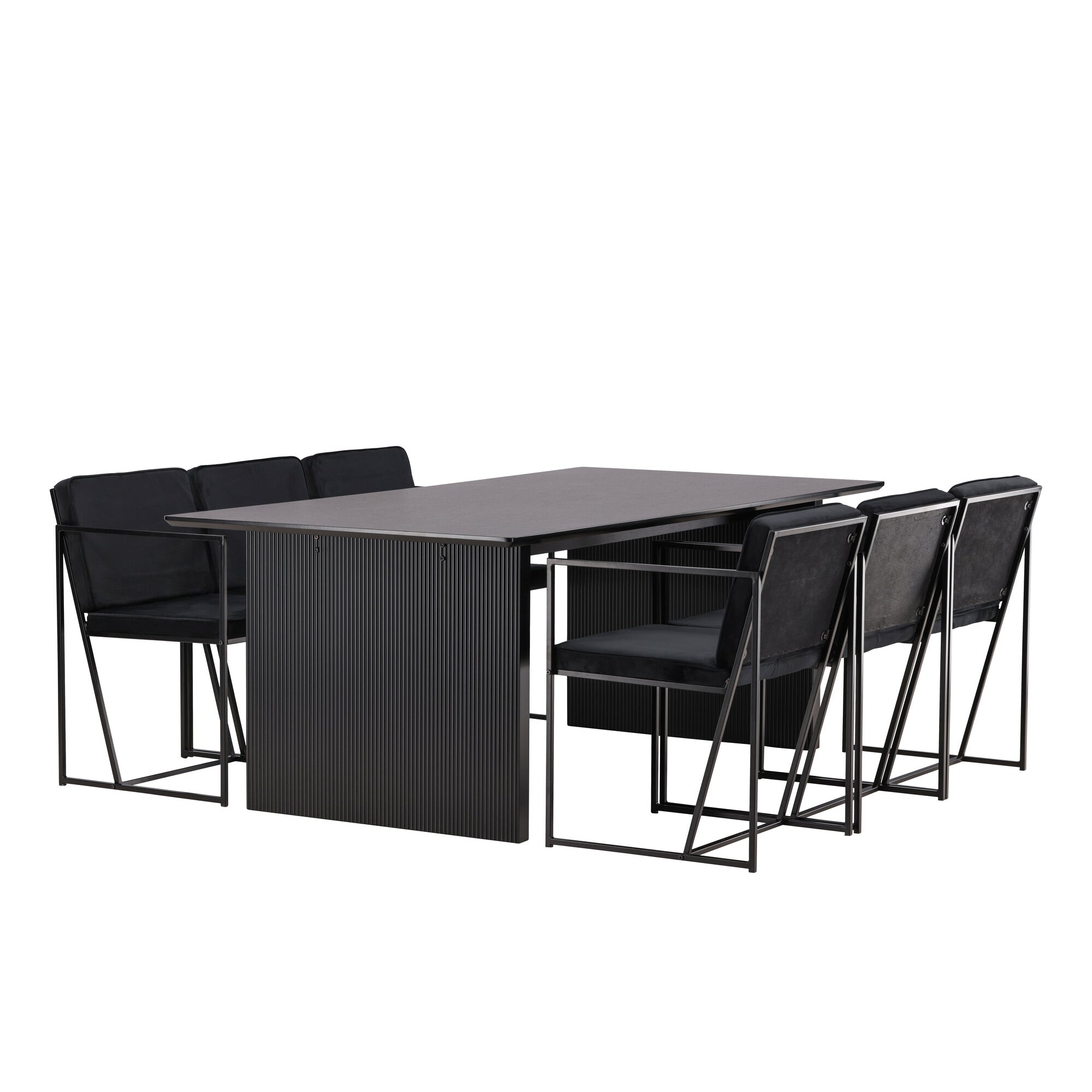 Jídelní stůl Vail - černá / kouřová černá MDF + jídelní židle Richmond - černá / černý samet _6