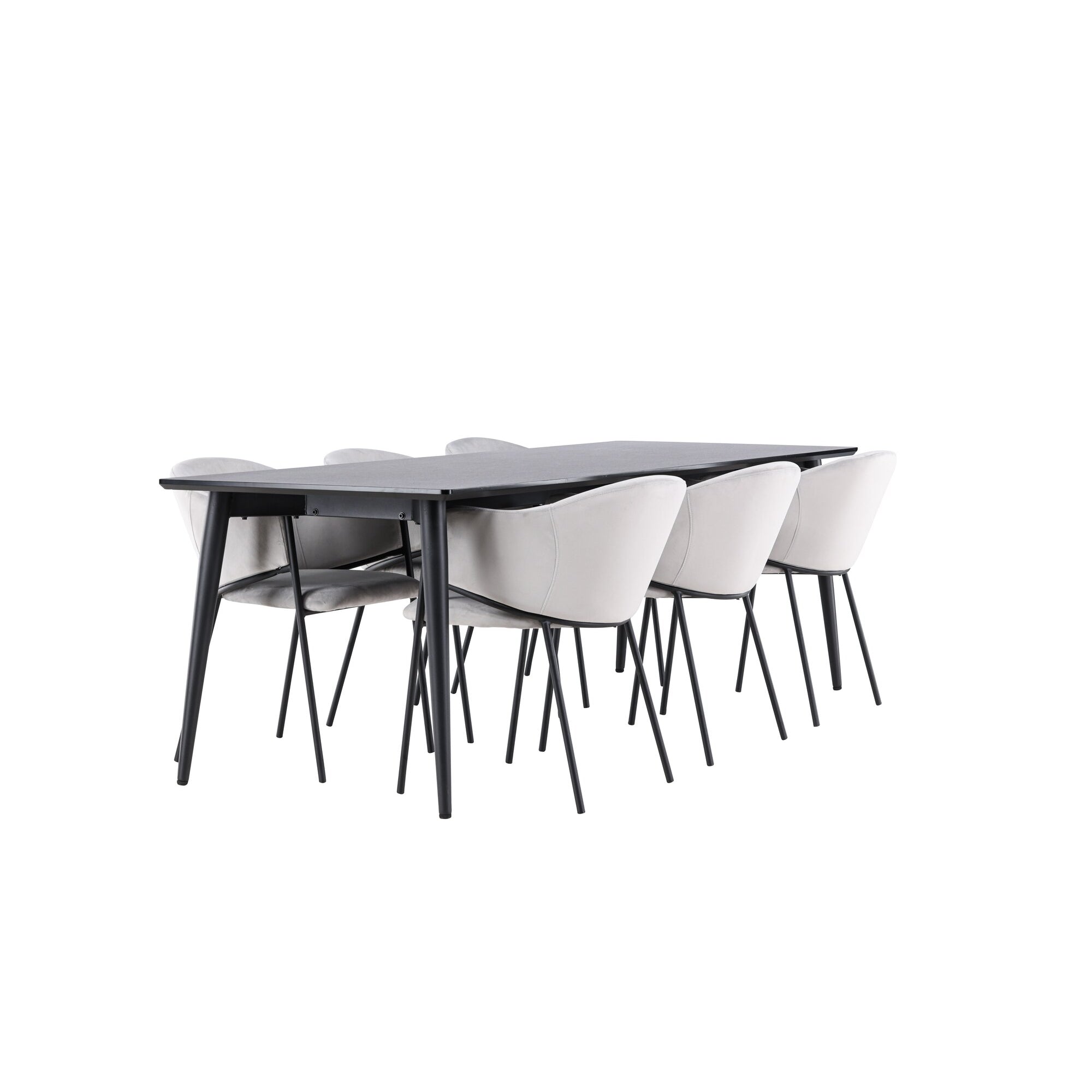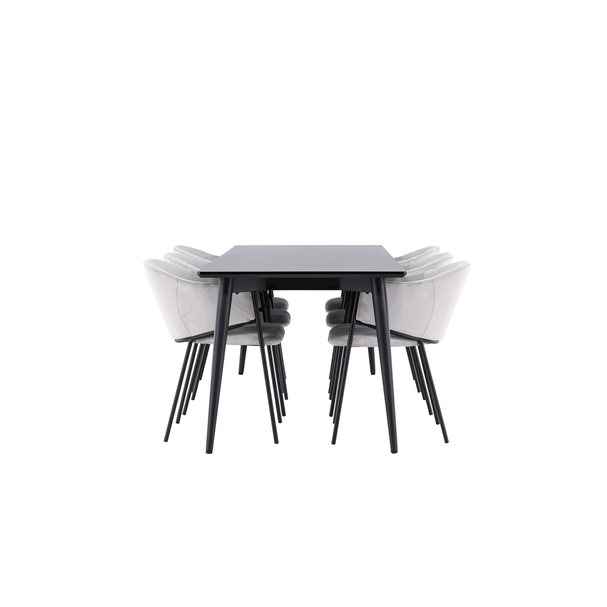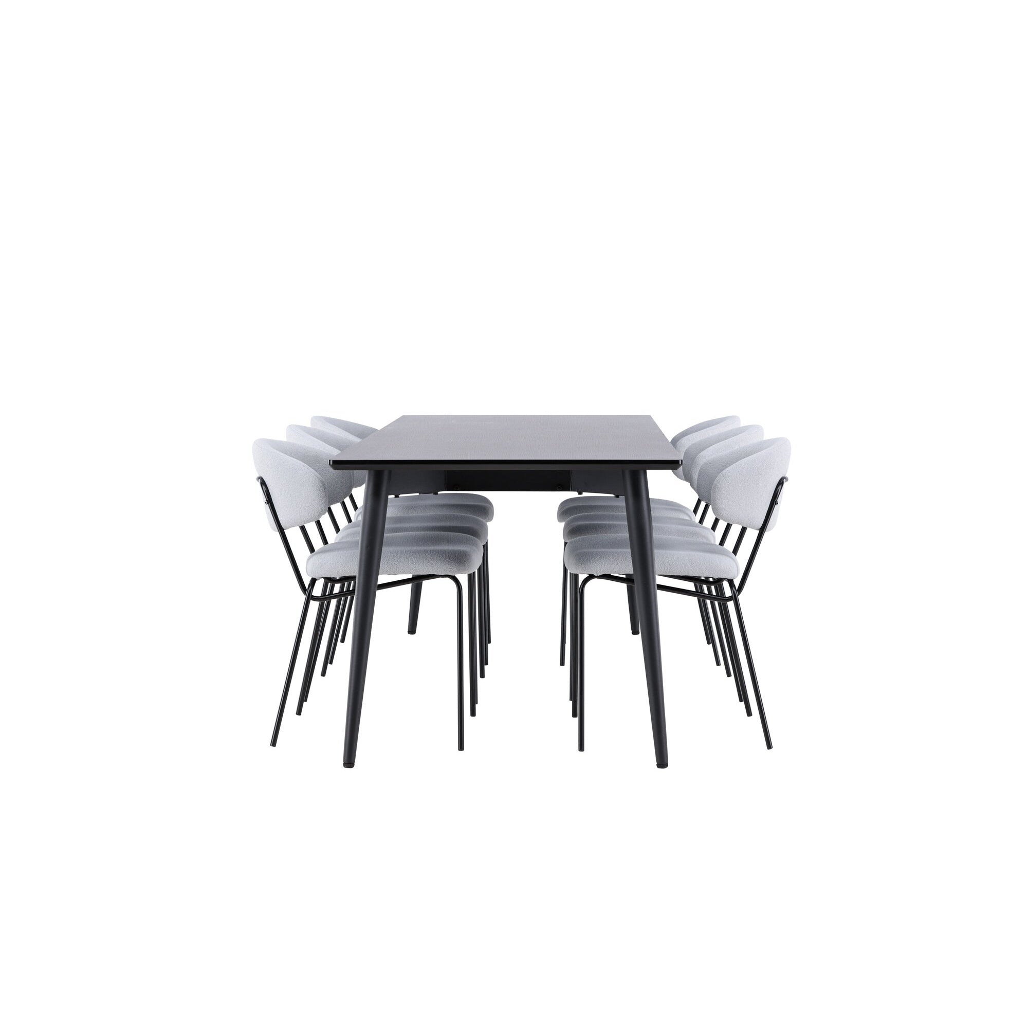 Jídelní stůl Marina - 180*90*H75 - Šedá / Černá+Plaza Jídelní židle - Černé nohy - Světle šedá Fabric_6