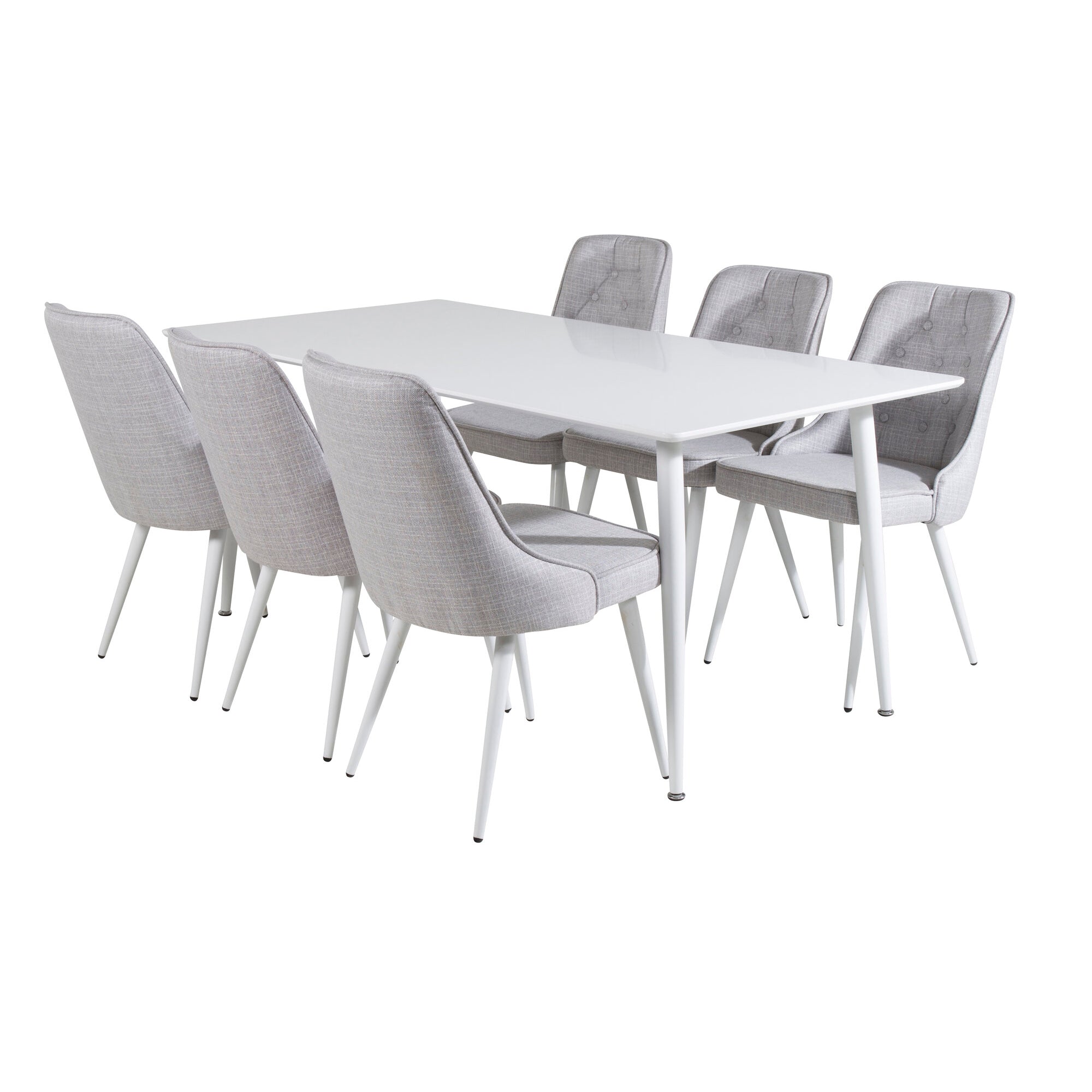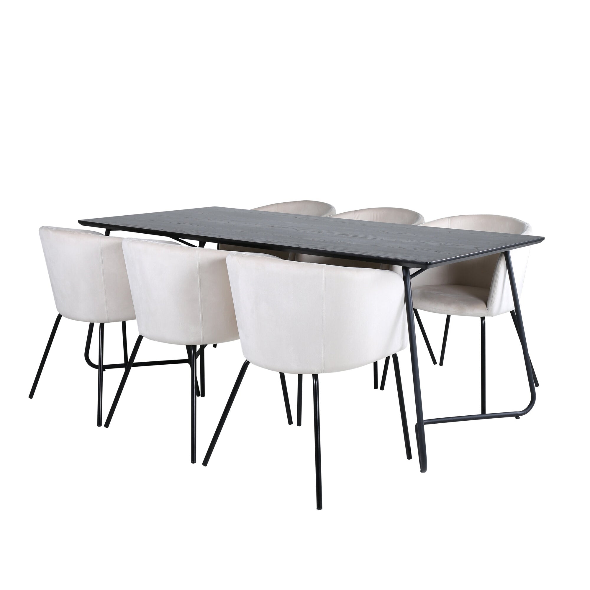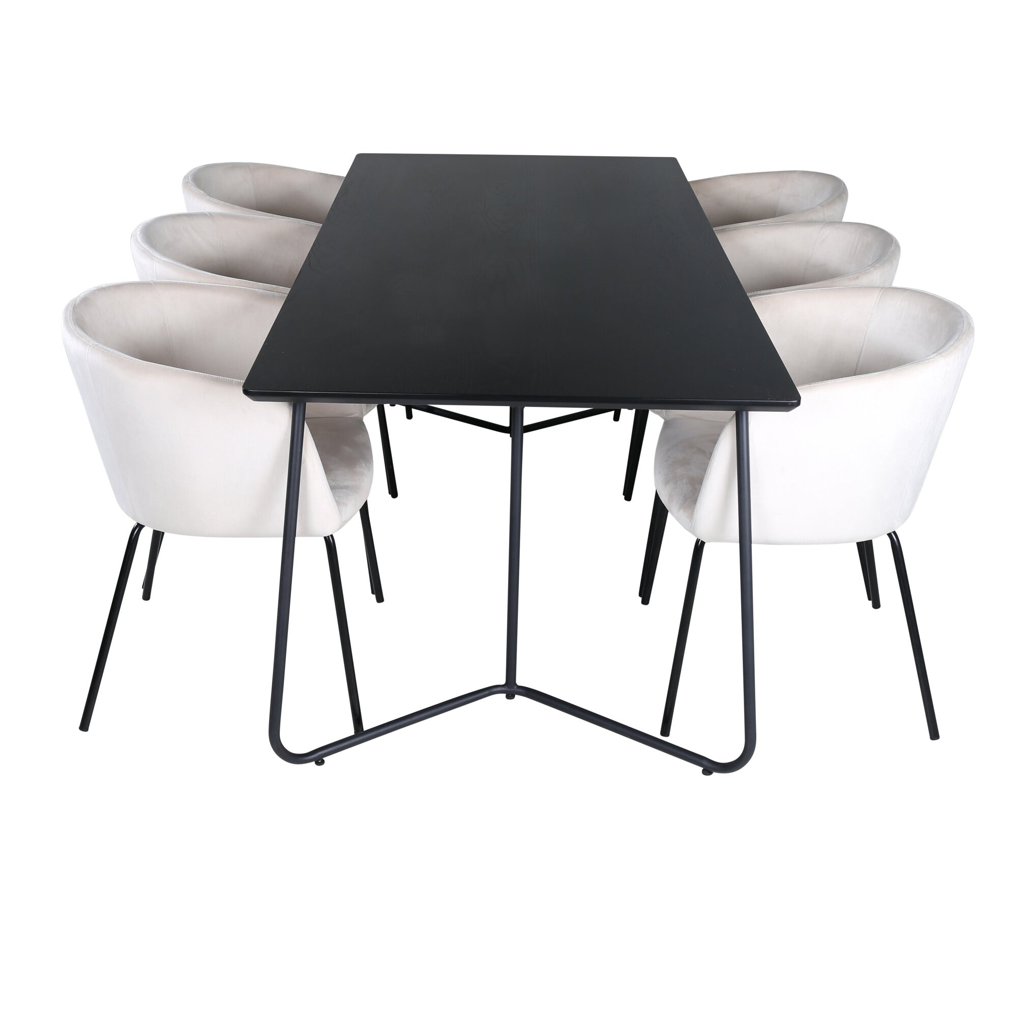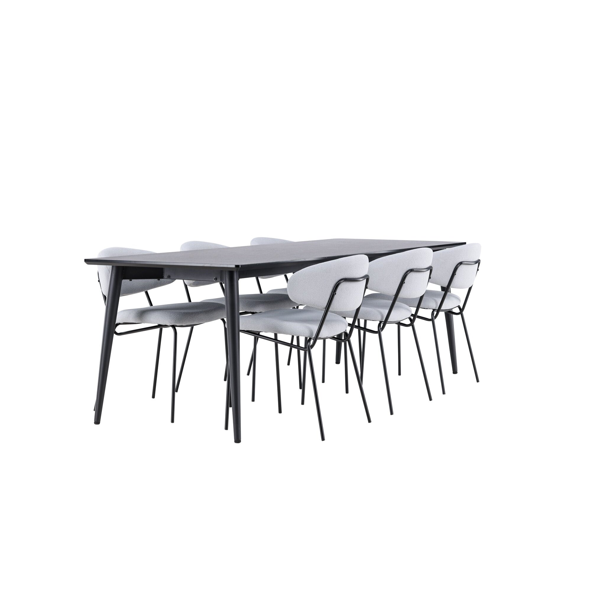 Jídelní stůl Marina - 180*90*H75 - Šedá / Černá+Plaza Jídelní židle - Černé nohy - Světle šedá Fabric_6