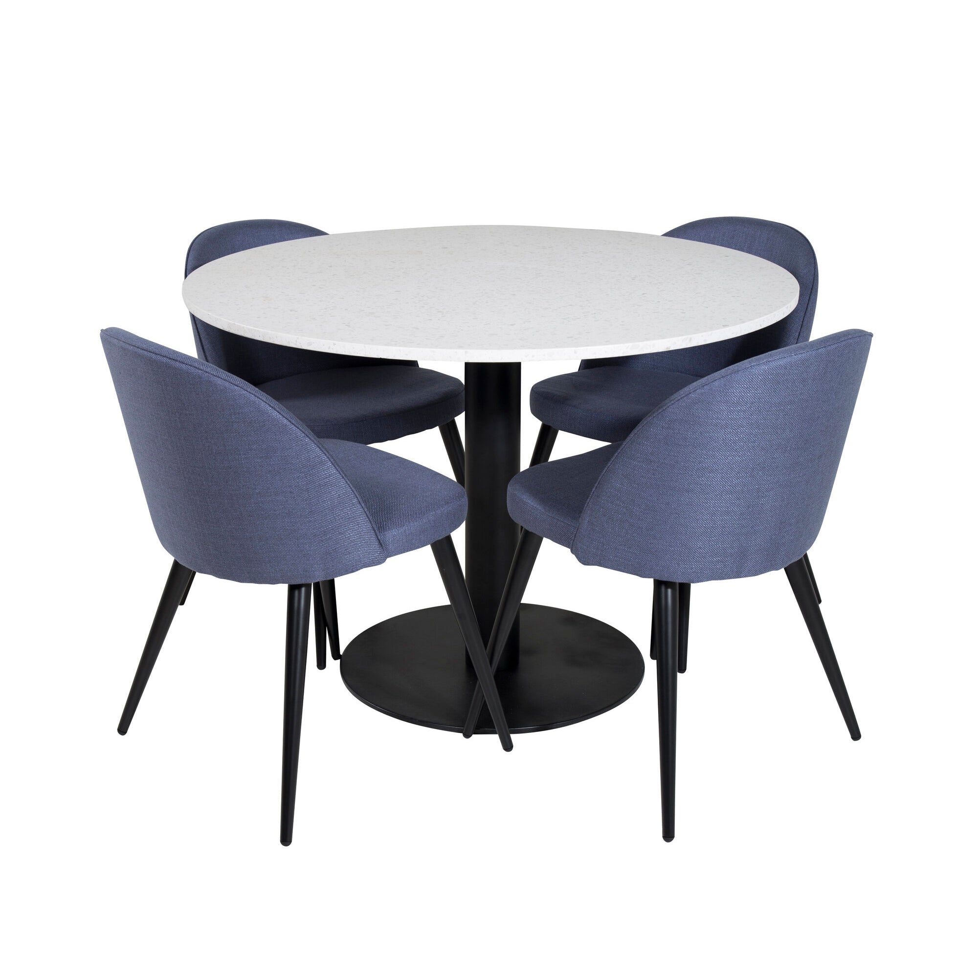Jídelní stůl Razzia ø106cm - Bílá / Černá + Sametová jídelní židle - Černé nohy - B