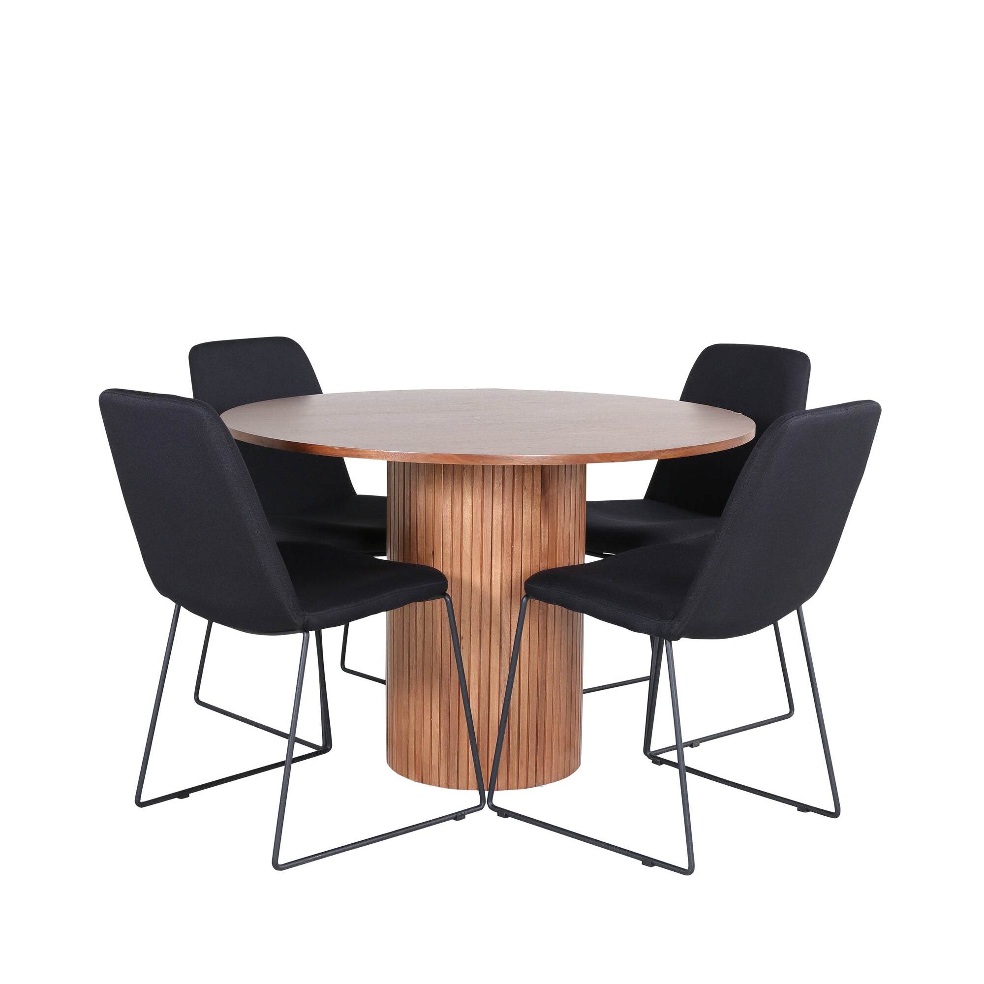 Kruhový stůl Cirebon - 140 cm - Přírodní / Černá+Gemma Jídelní židle - Černé nohy - Červená látka_6