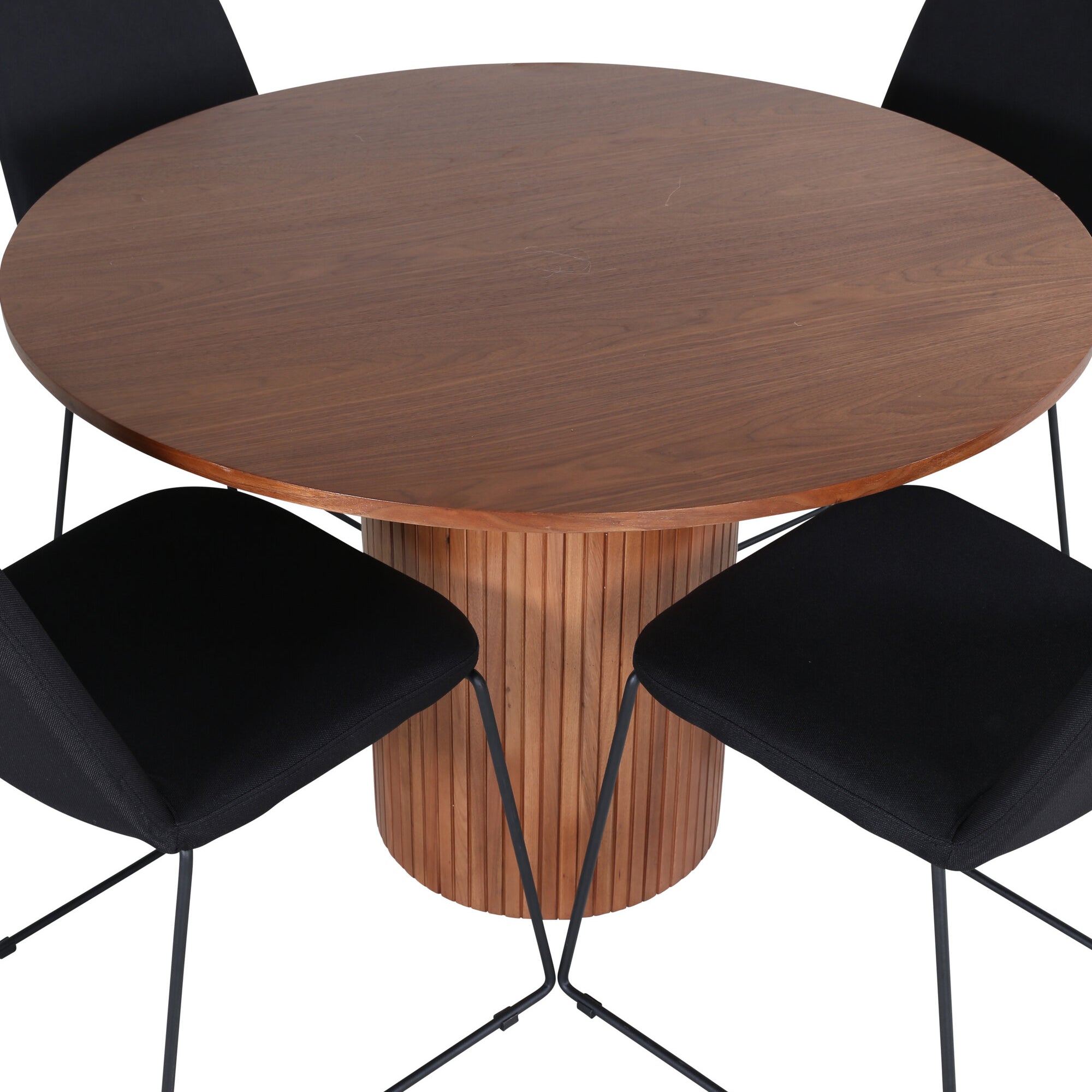 Bianca kulatý jídelní stůl – ořech/černá dýha+muce jídelní židle – černé nohy – černá látka_4