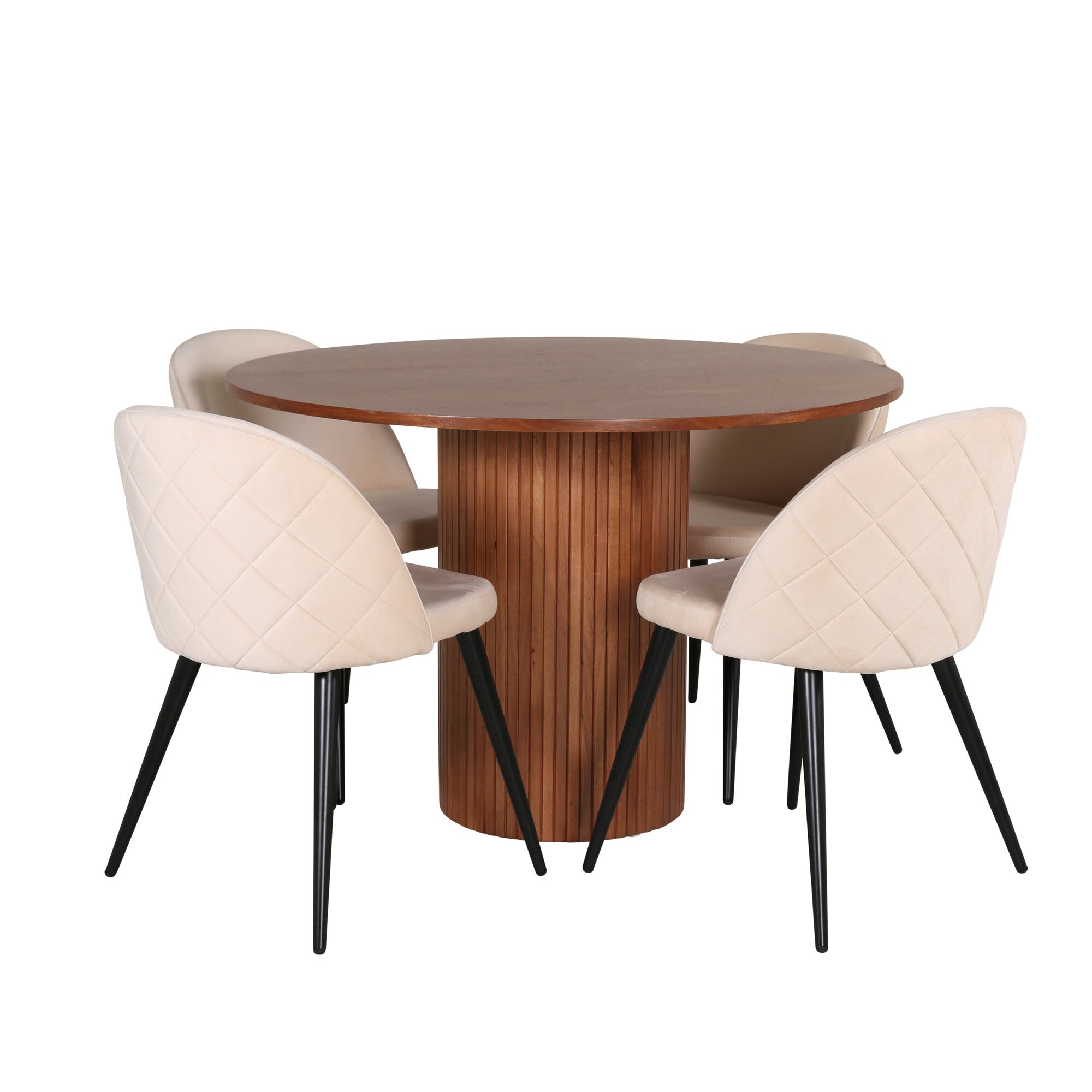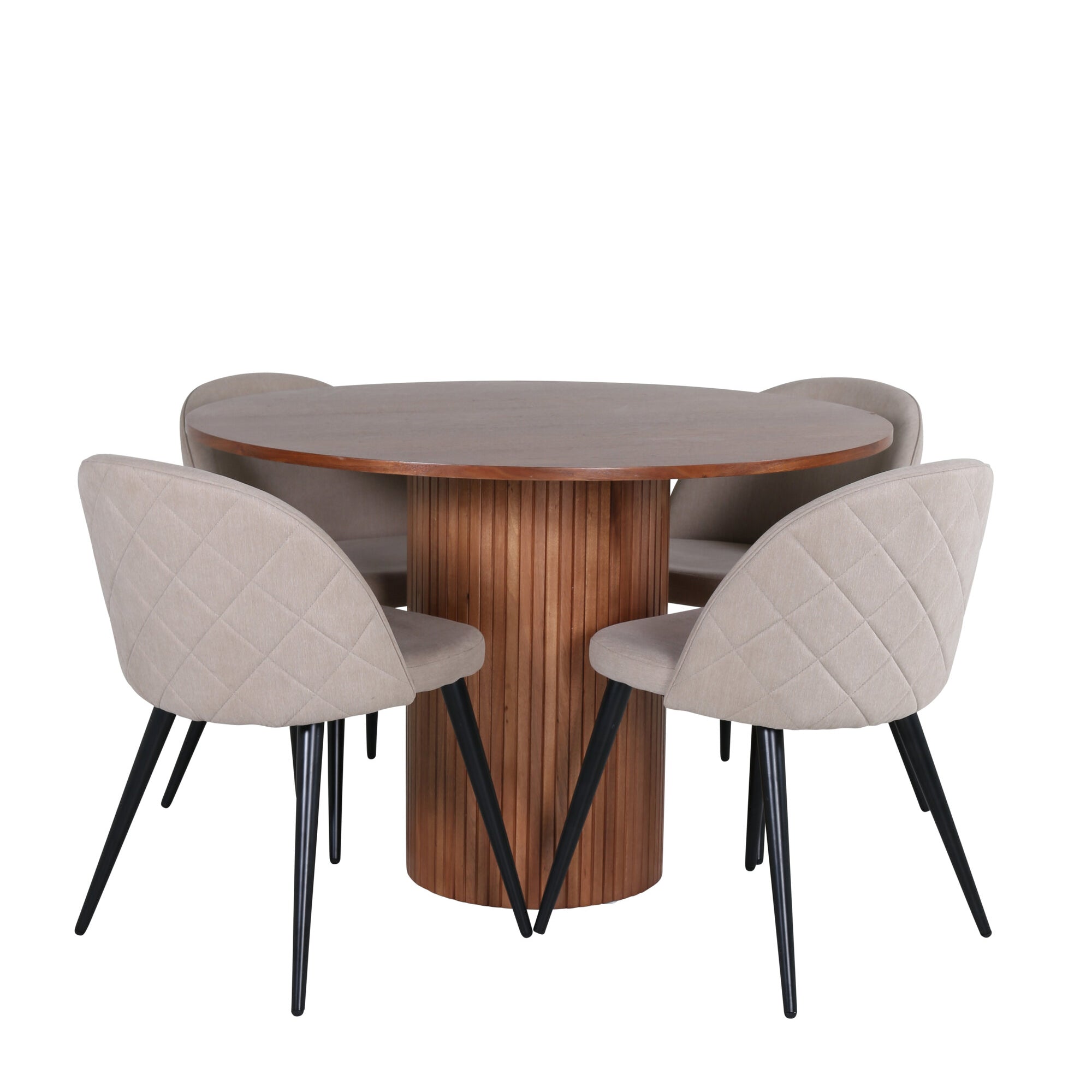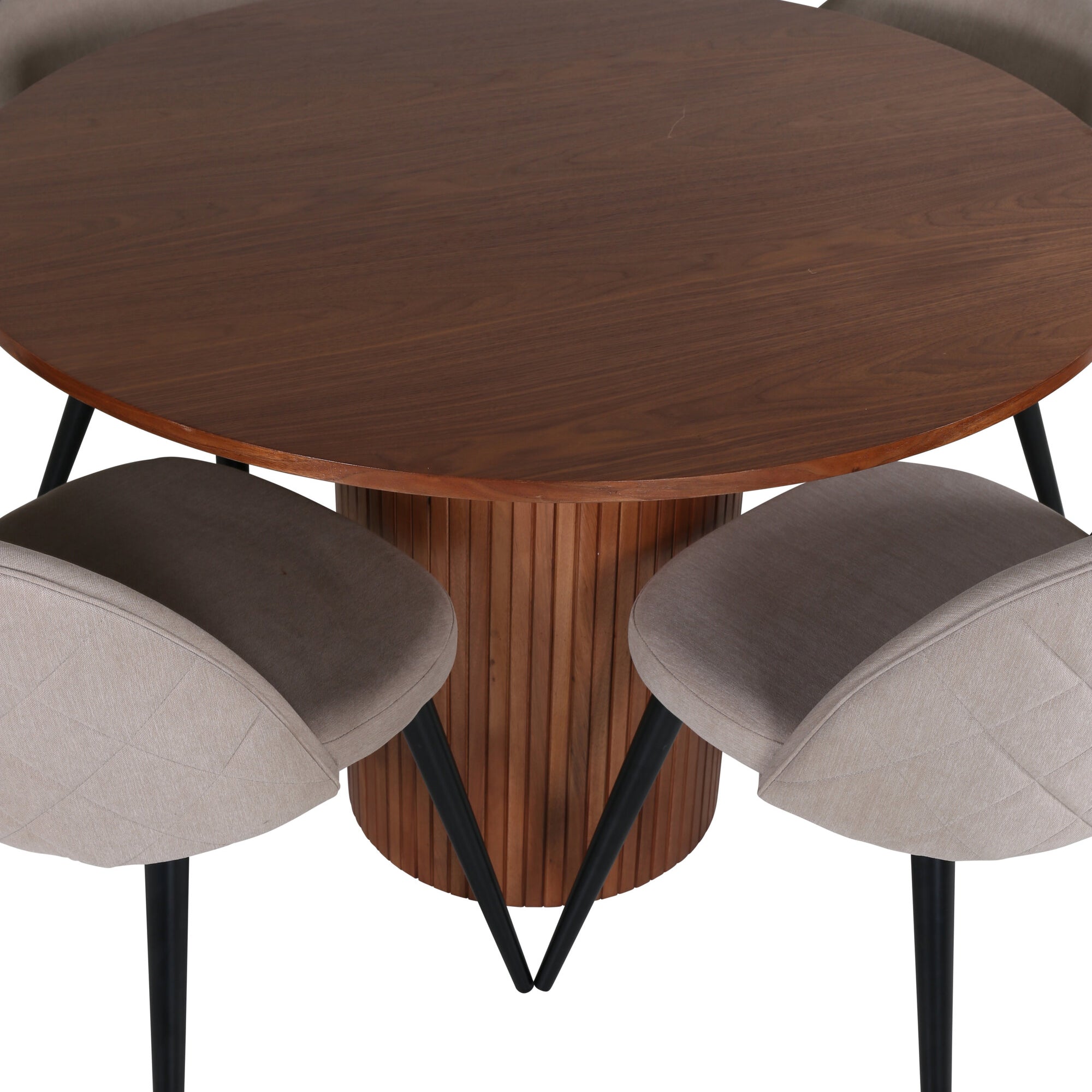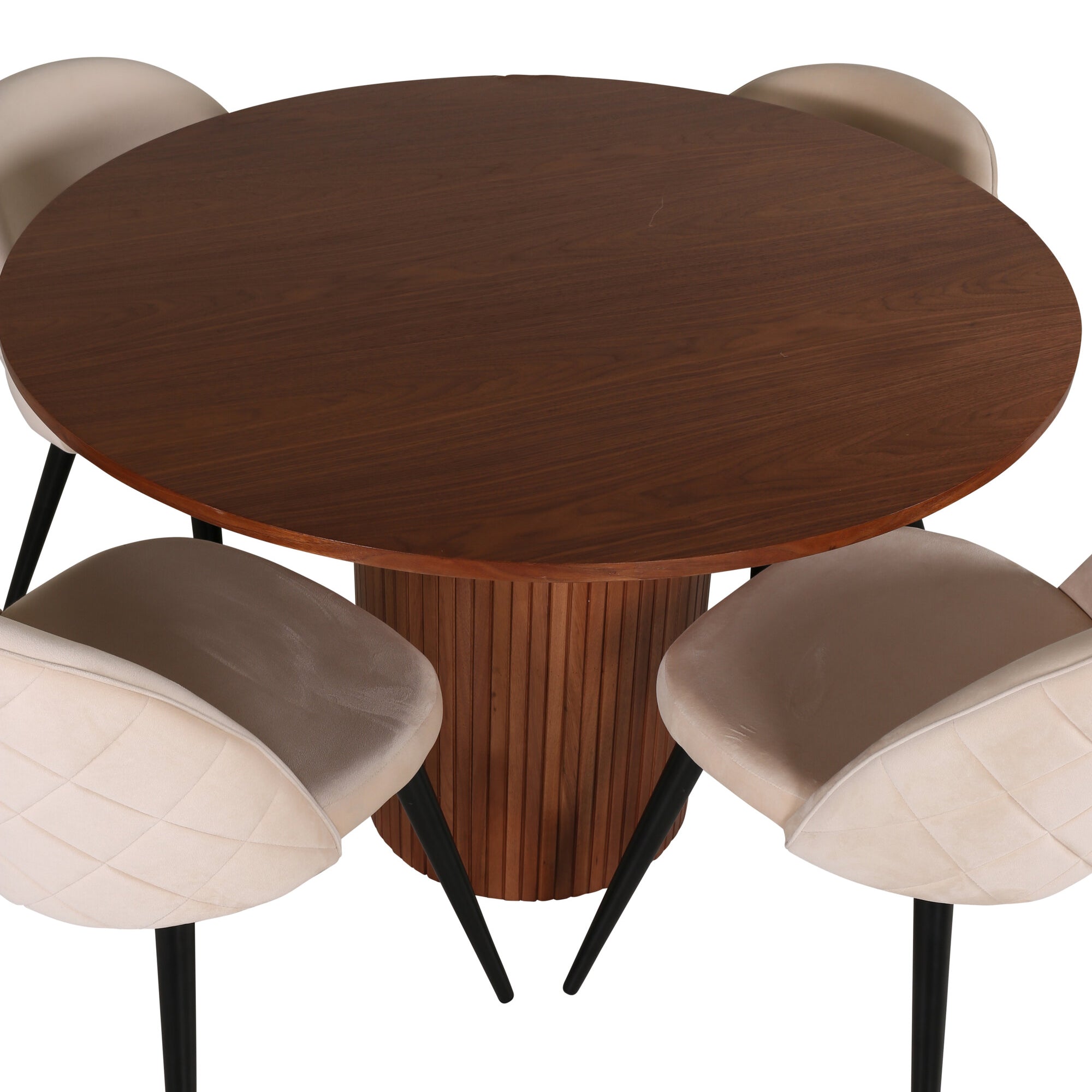 Bianca kulatý jídelní stůl – ořech / černá dýha + židle se sametovými stehy – černá / béžová látka (polyesterové prádlo)_4