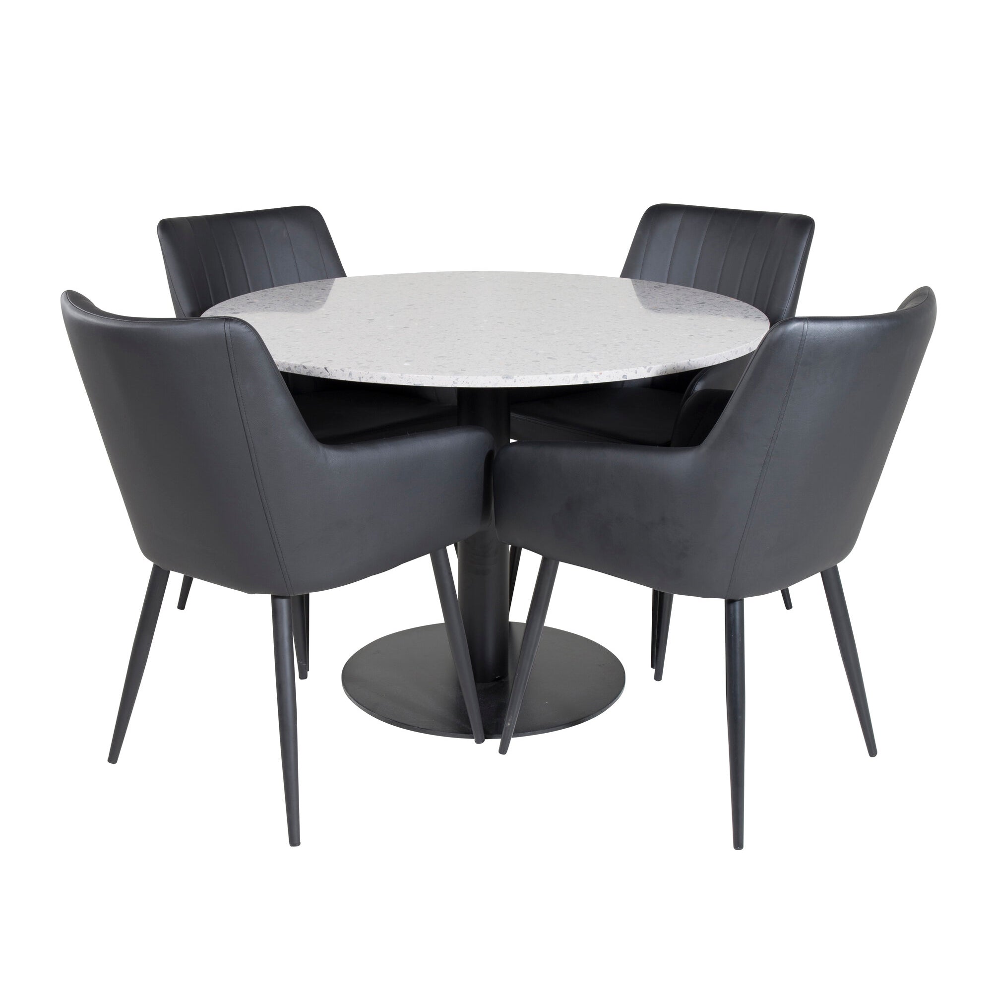 Estelle Jídelní stůl kulatý 106cm Bílý mramor / Černé nohy +Plaza - Jídelní židle - Černá/Tmavě šedá _4