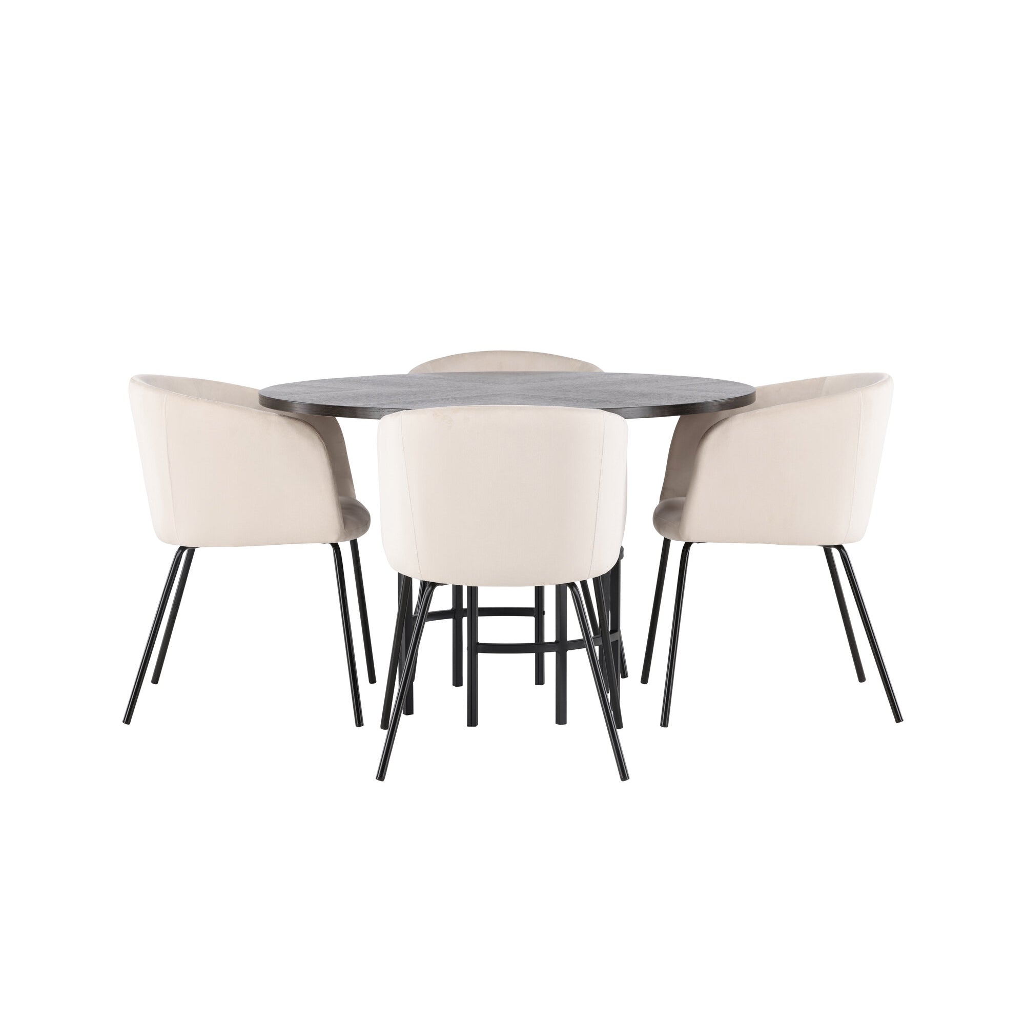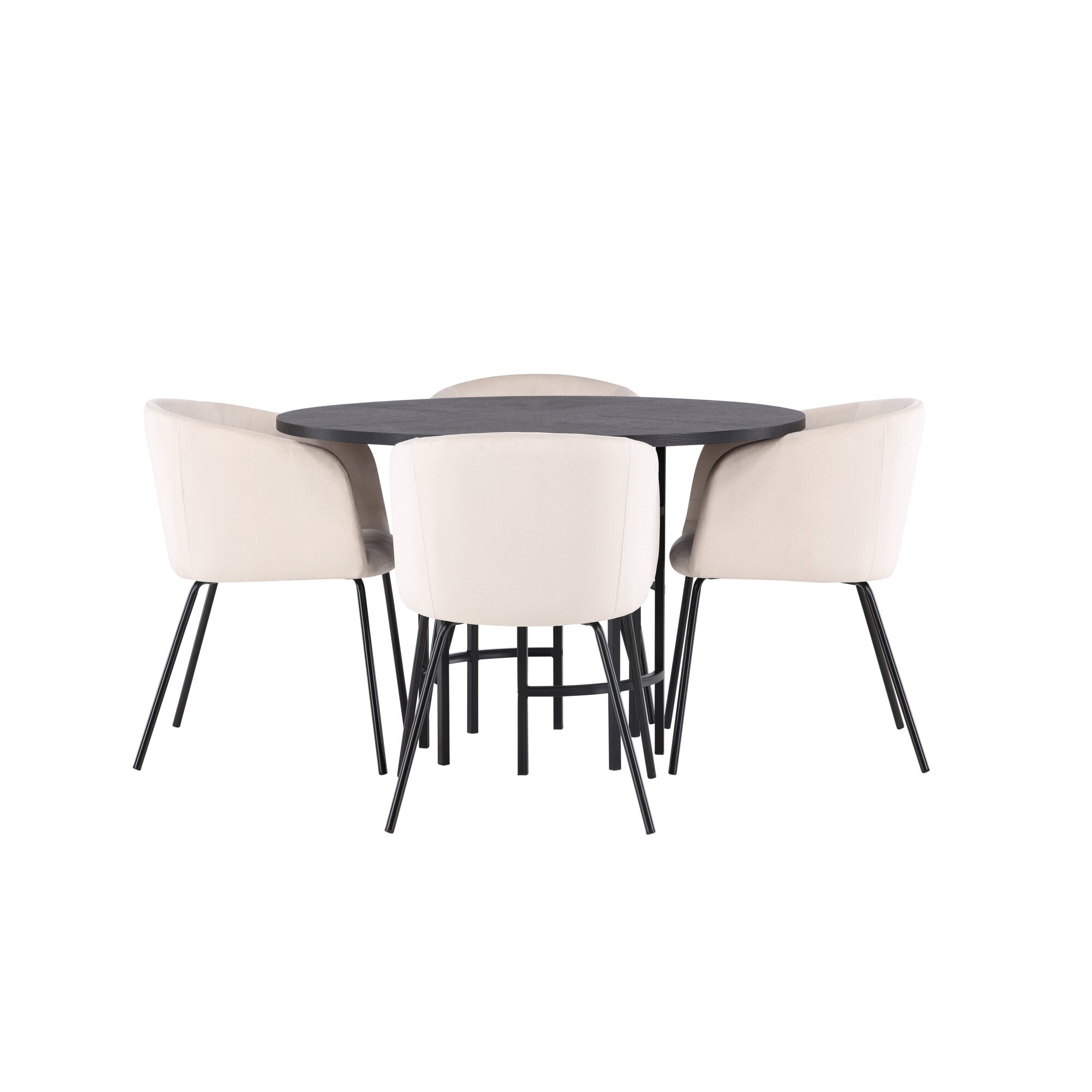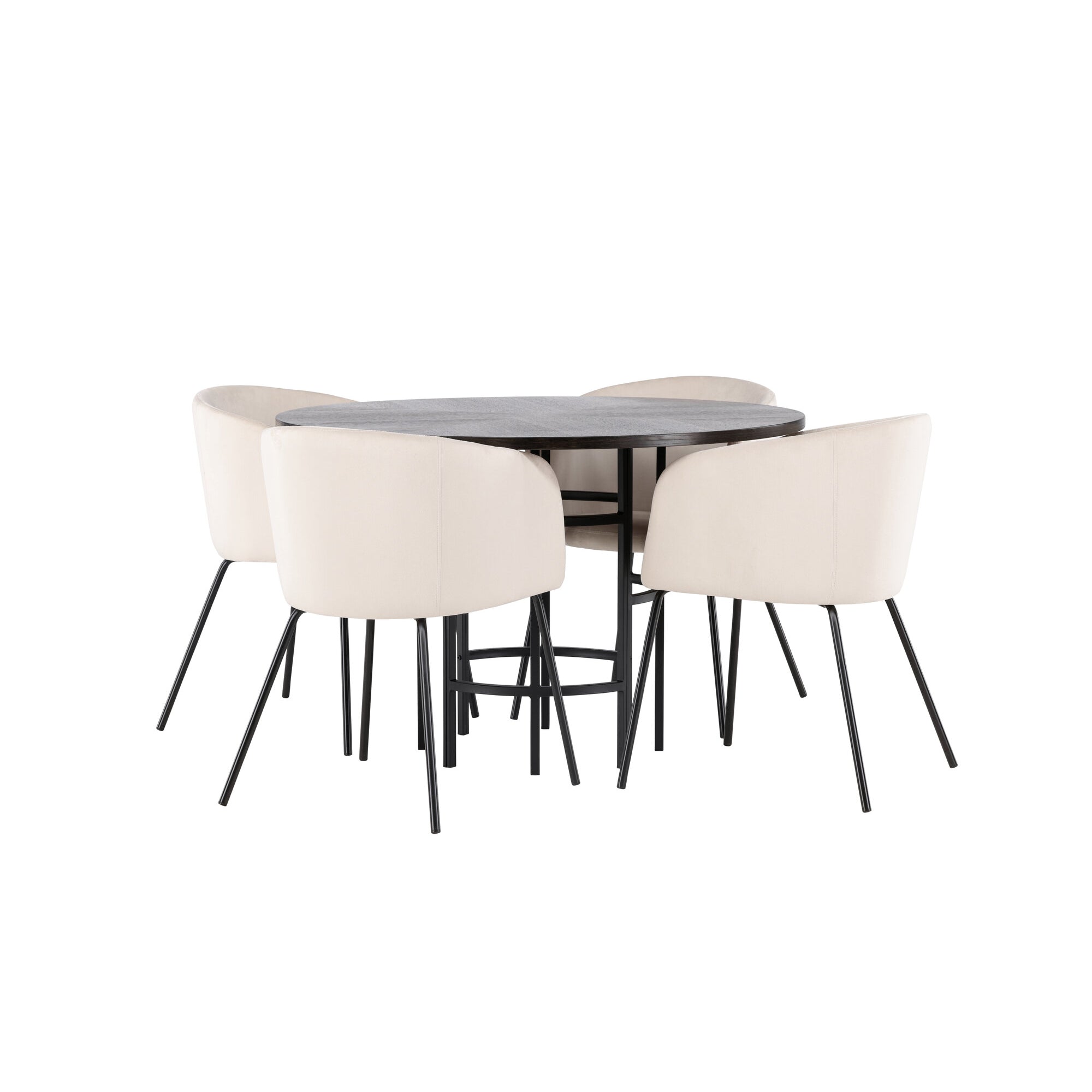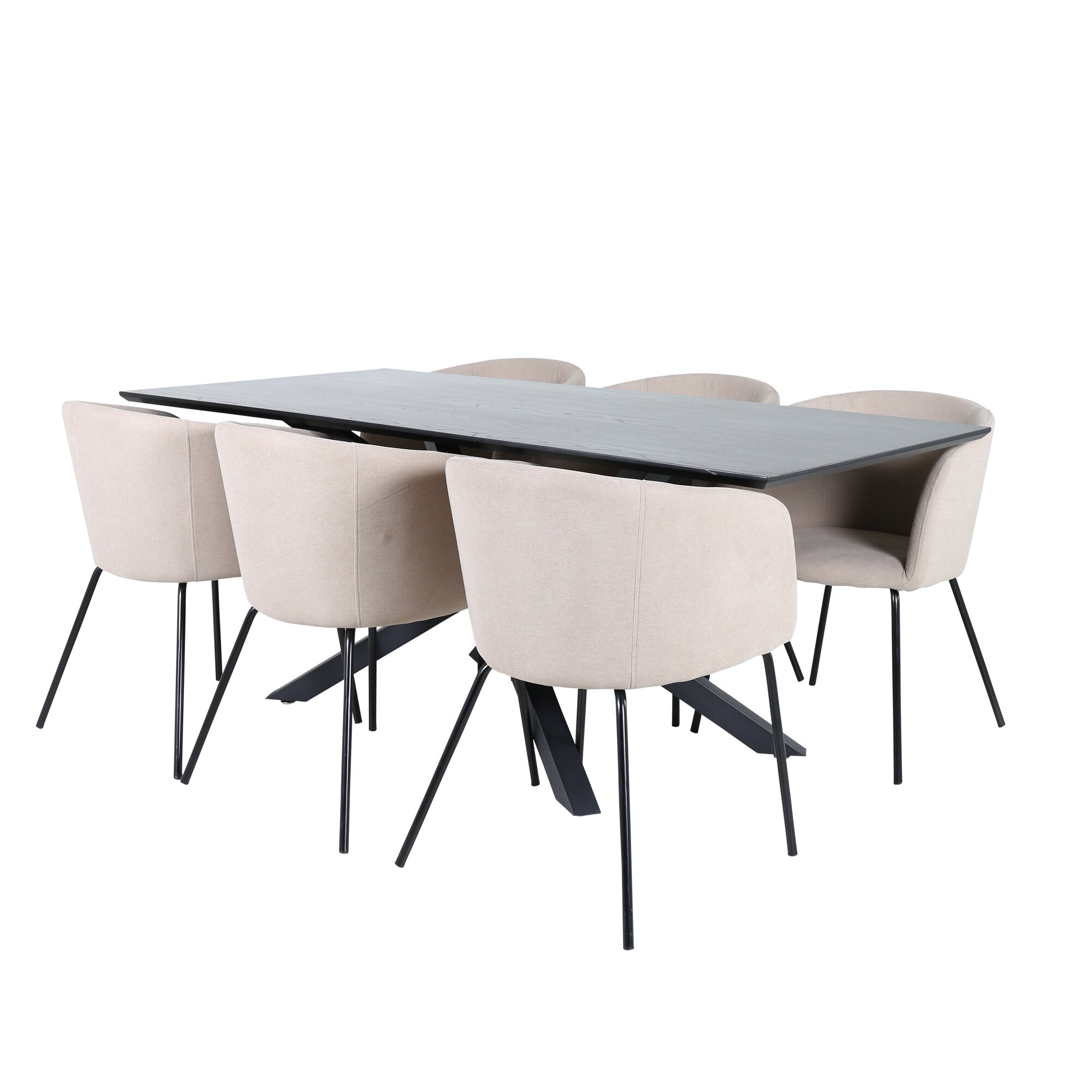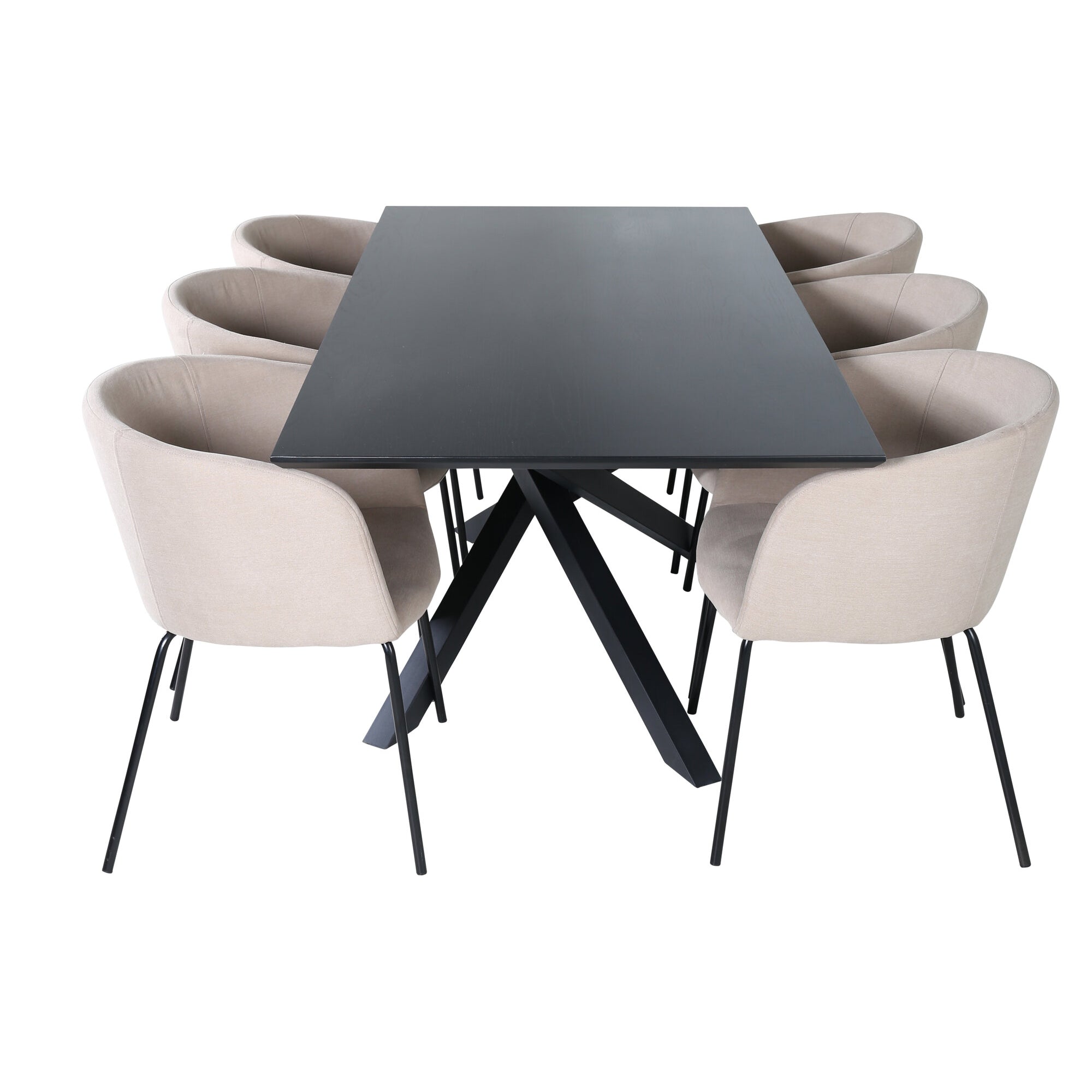 Stůl Narvik - béžový se 6 nočními židlemi - černá / béžová