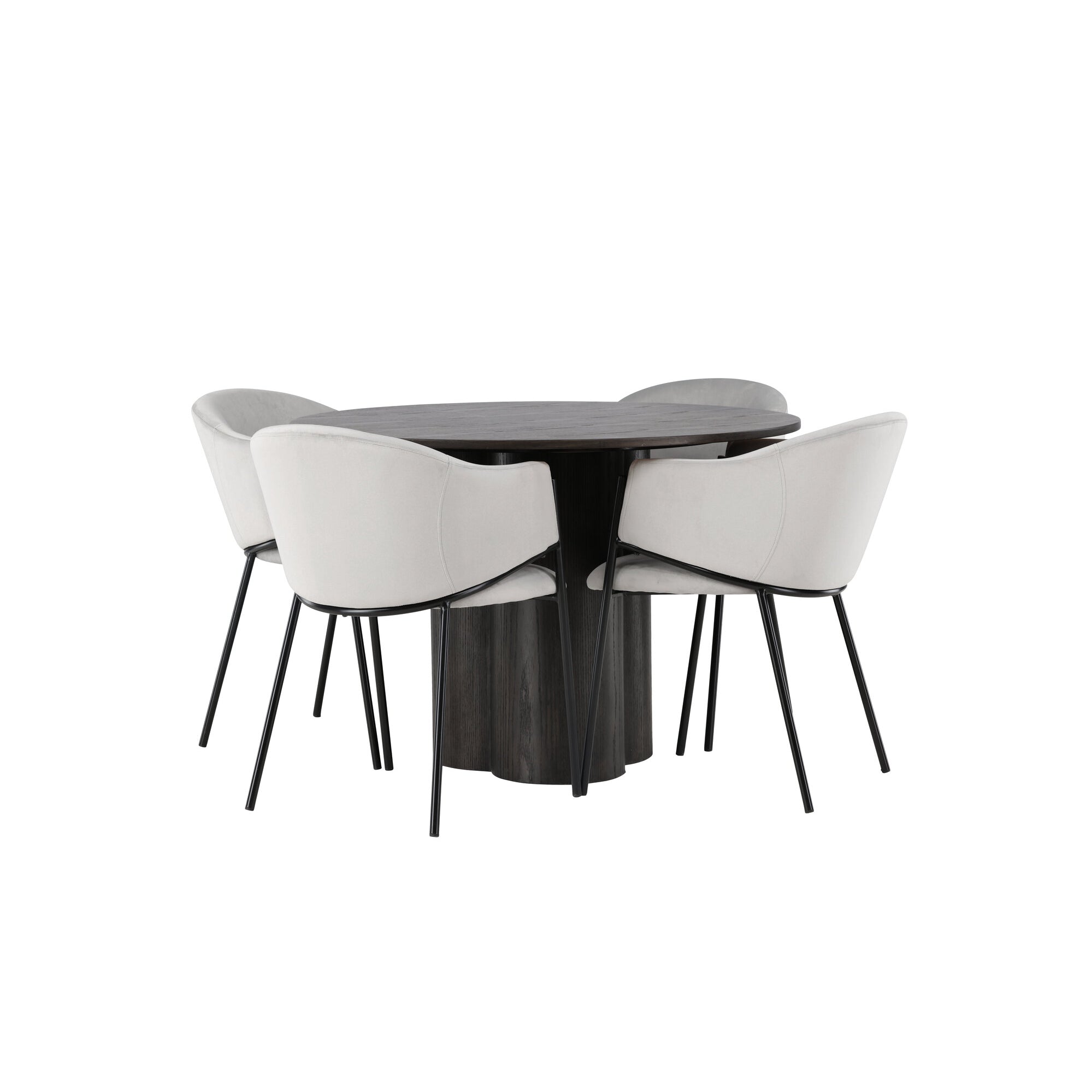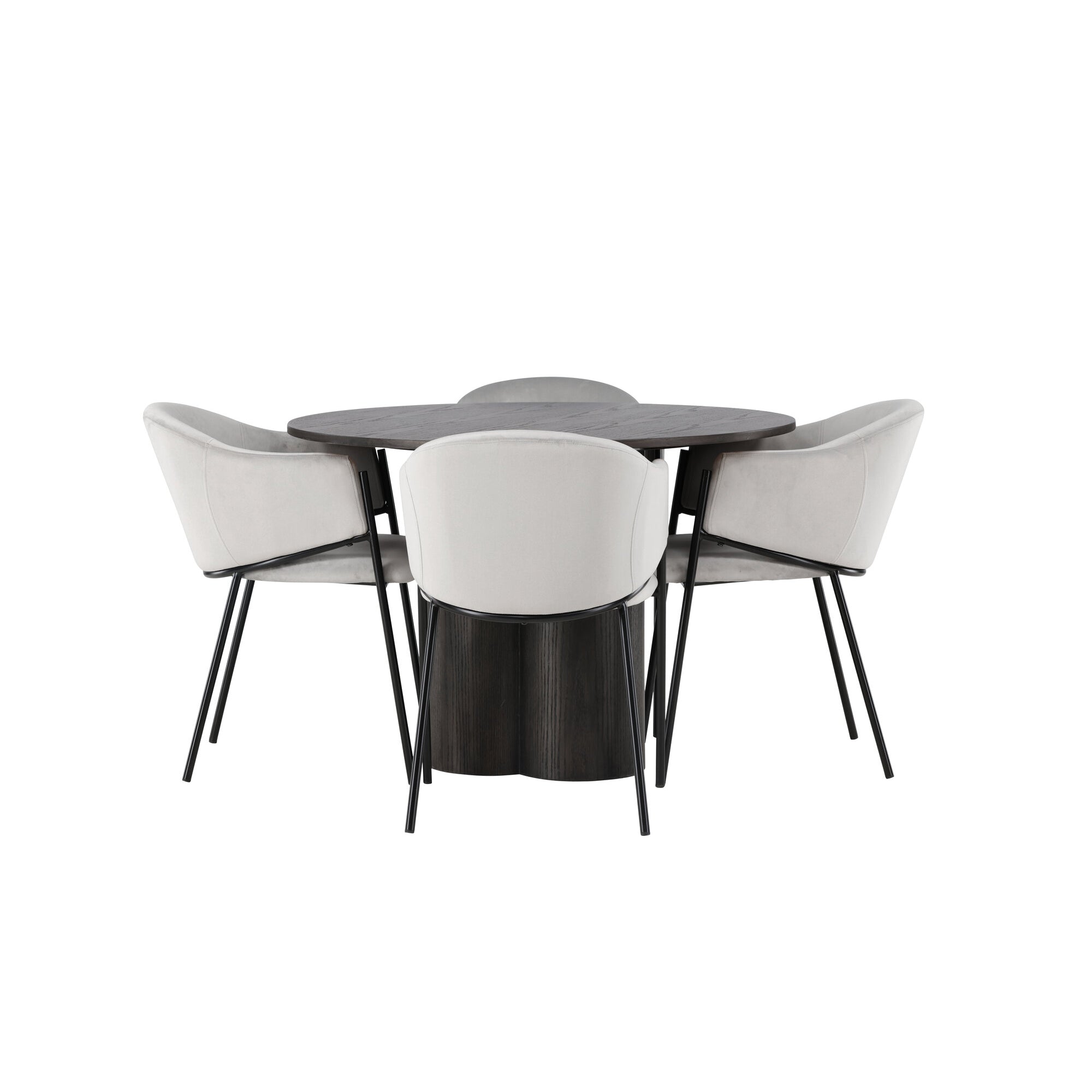 Jídelní stůl Olivia - Mocca / Mocca Dýha + Jídelní židle Evelina - Černá / Světle šedá Velvet _4