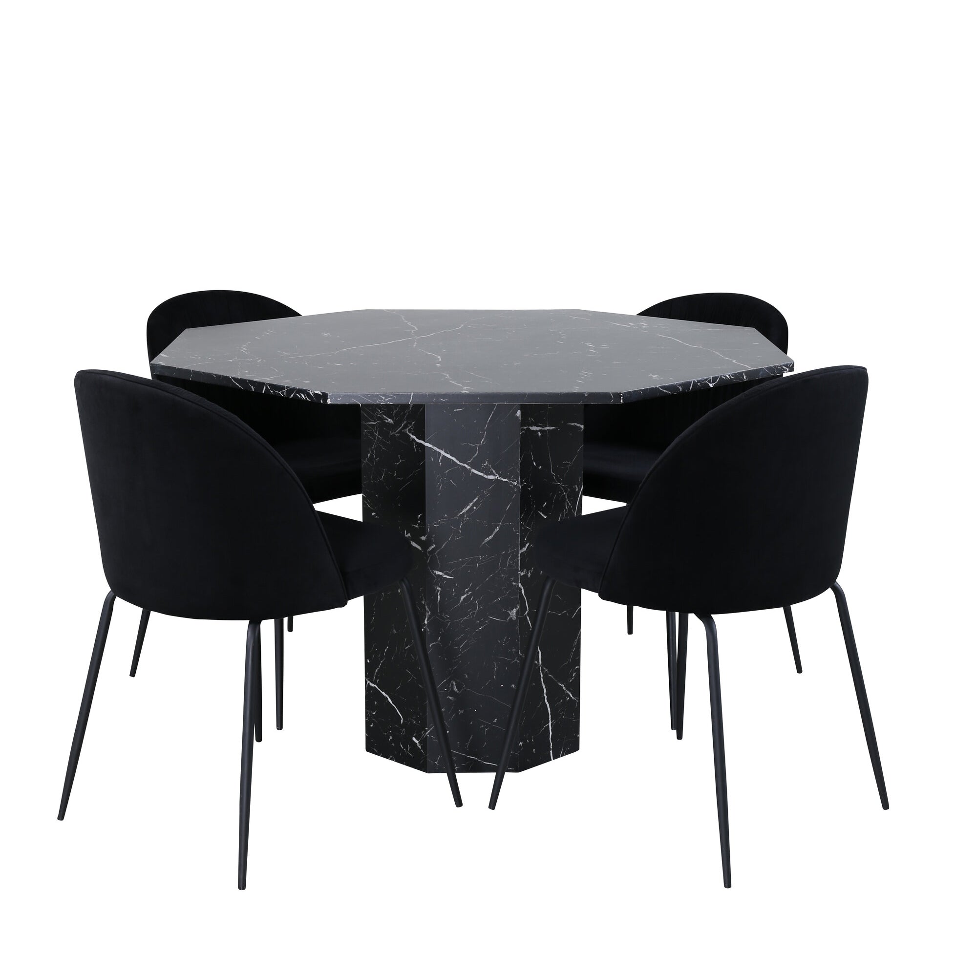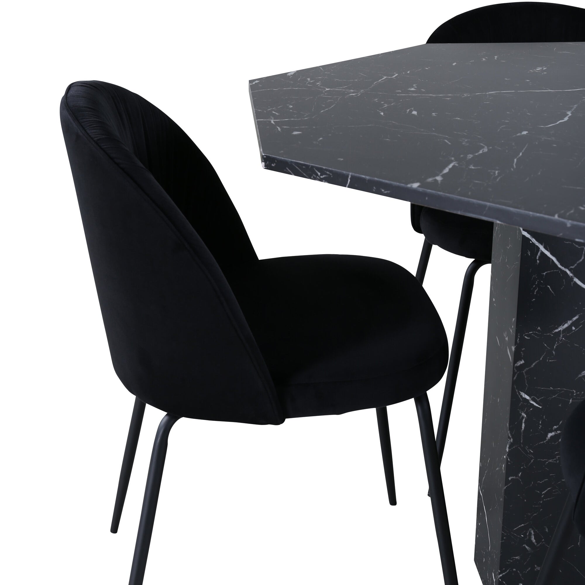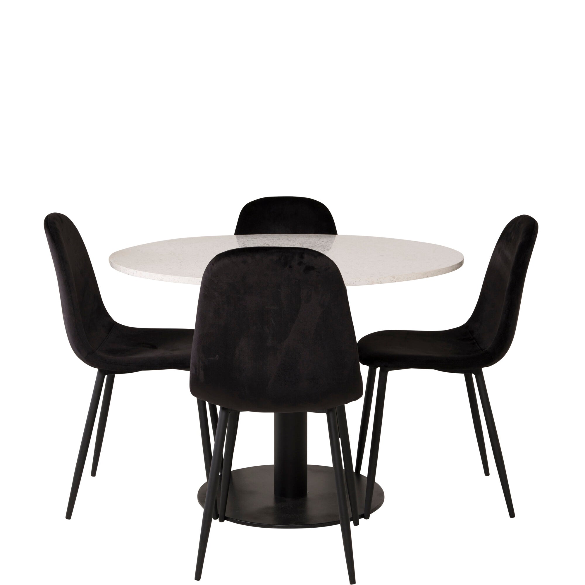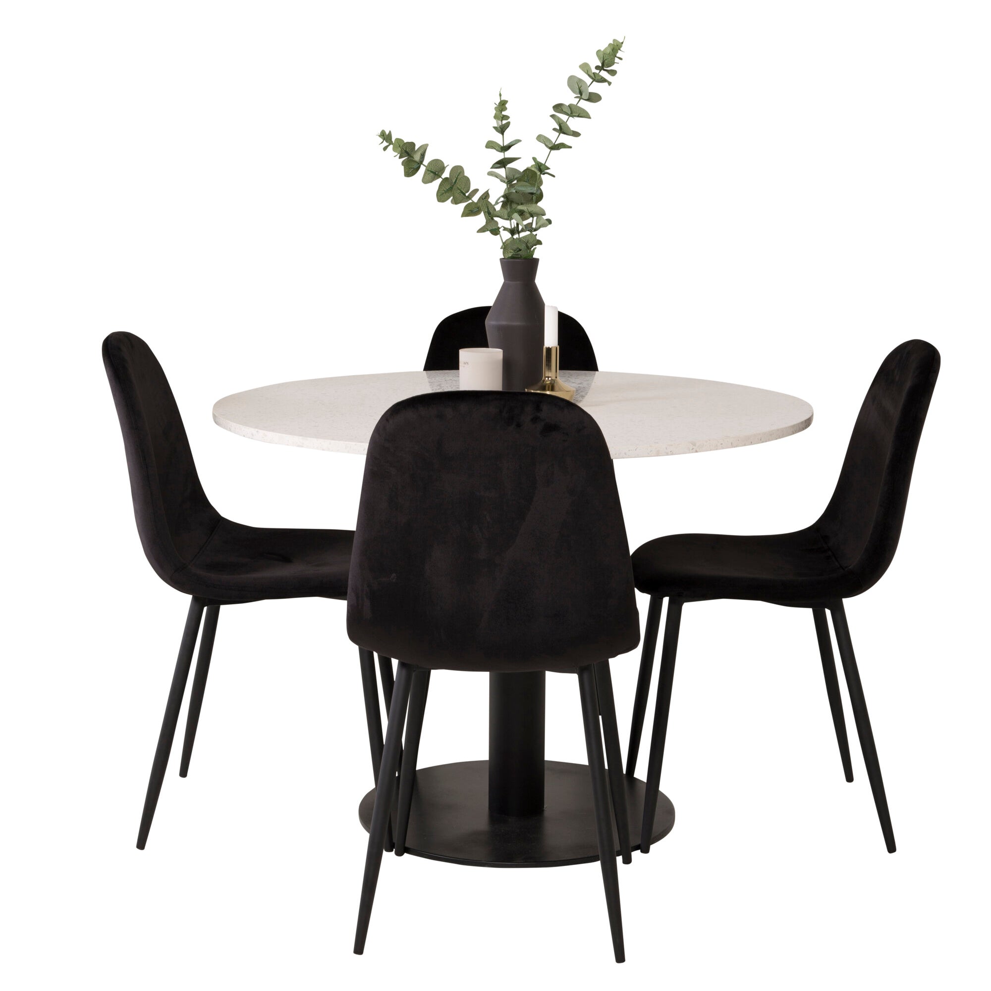 Jídelní stůl Razzia 106cm - Bílý Terazzo / Jídelní židle Black+Polar - Černé nohy / Black Velvet_4