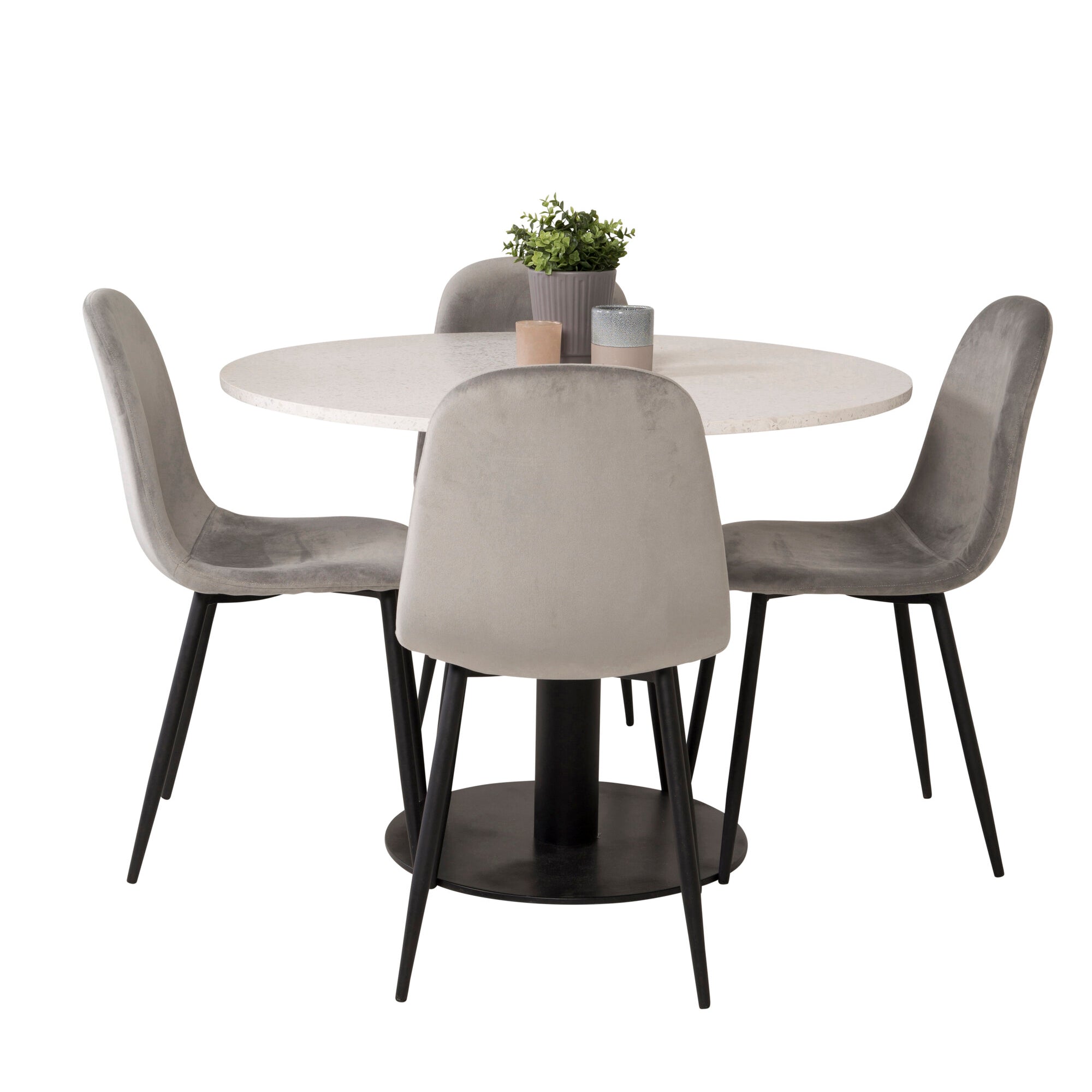 Jídelní stůl Razzia 106 cm - Bílá Terazzo / Jídelní židle Black+Polar - Černé nohy / Světle šedá Velvet_4