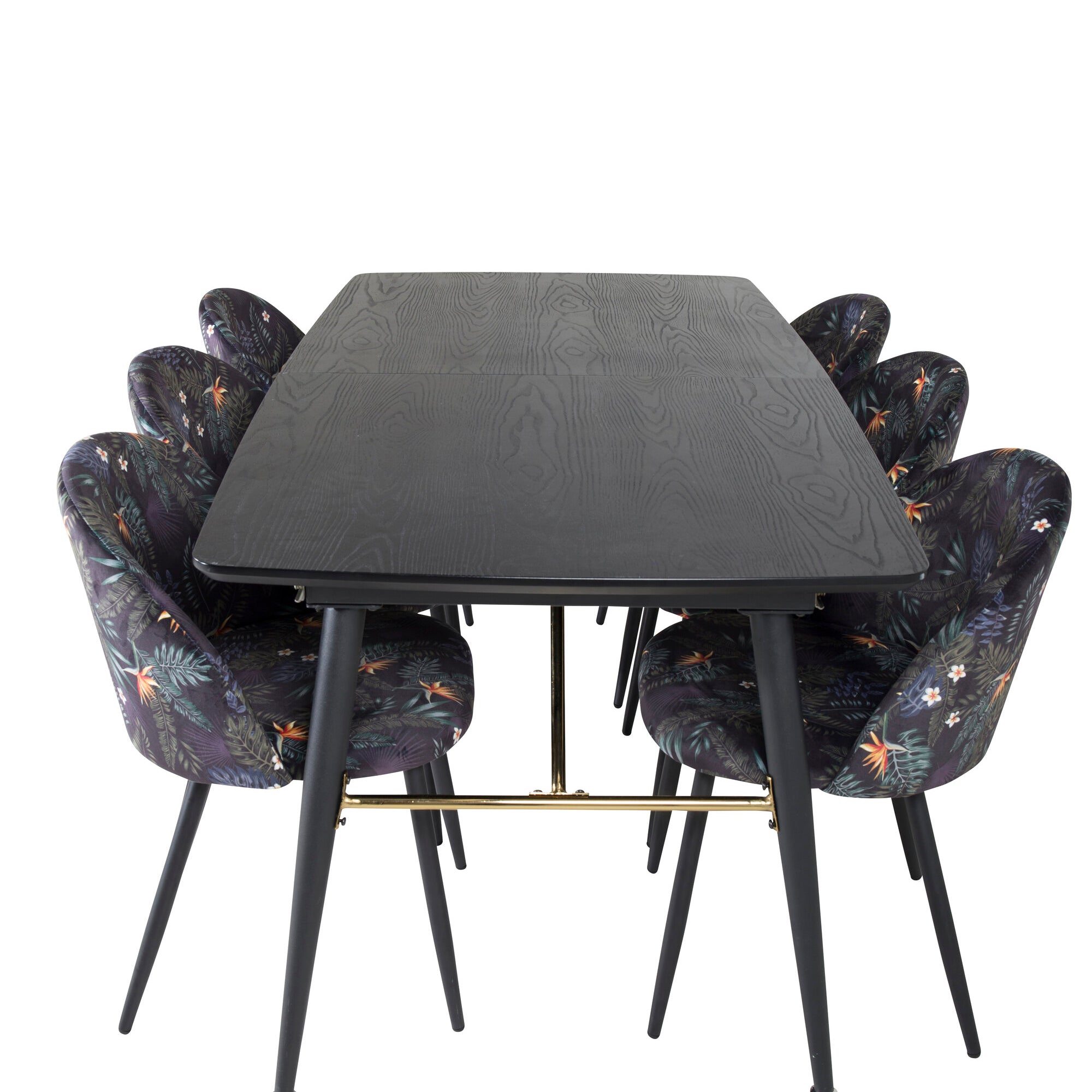 Zlatý rozkládací stůl - 180/220*85*H76 Černá dýha - Černé nohy - Mosazné detaily+Sametová jídelní židle - Černá Flower fabric_6